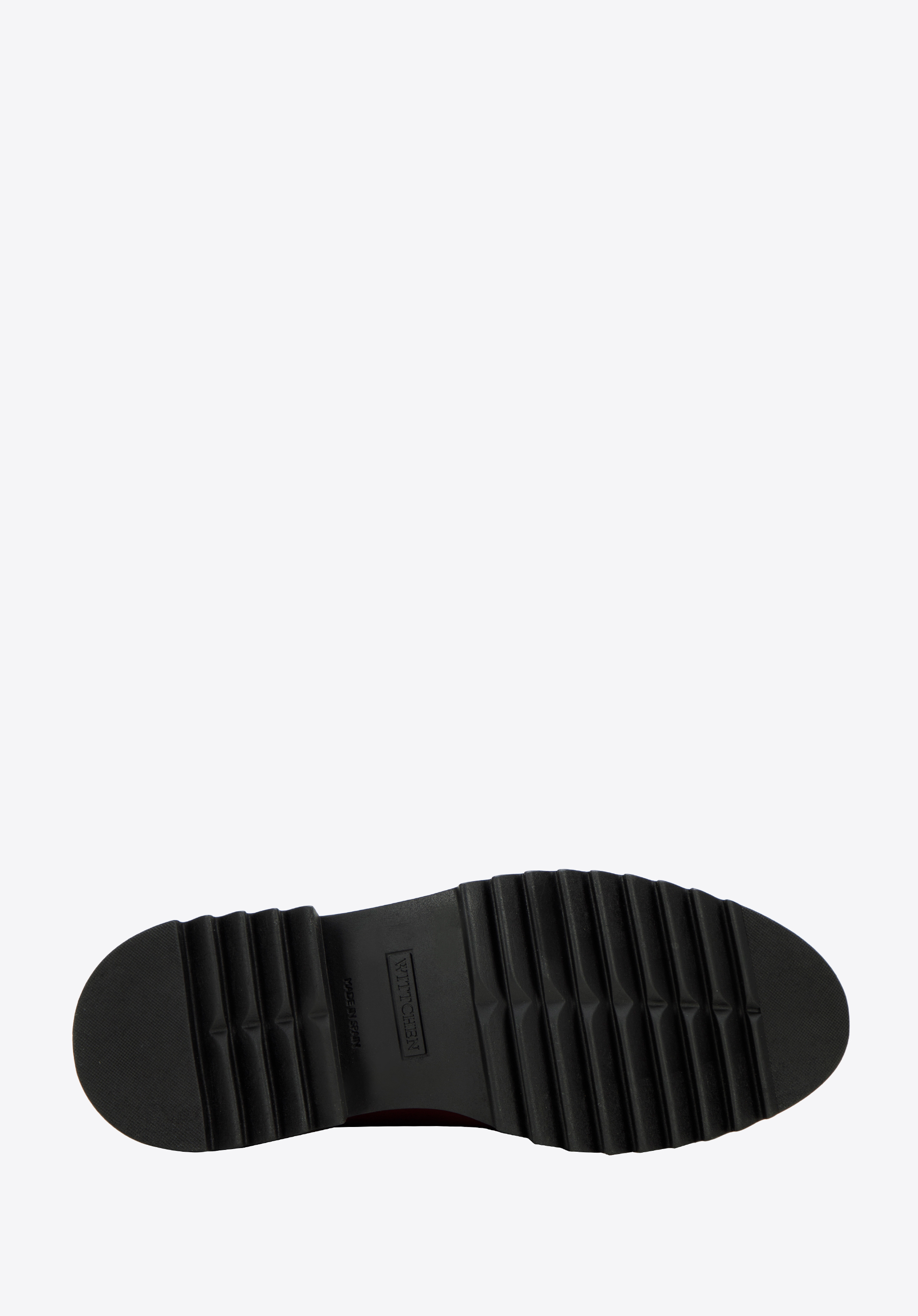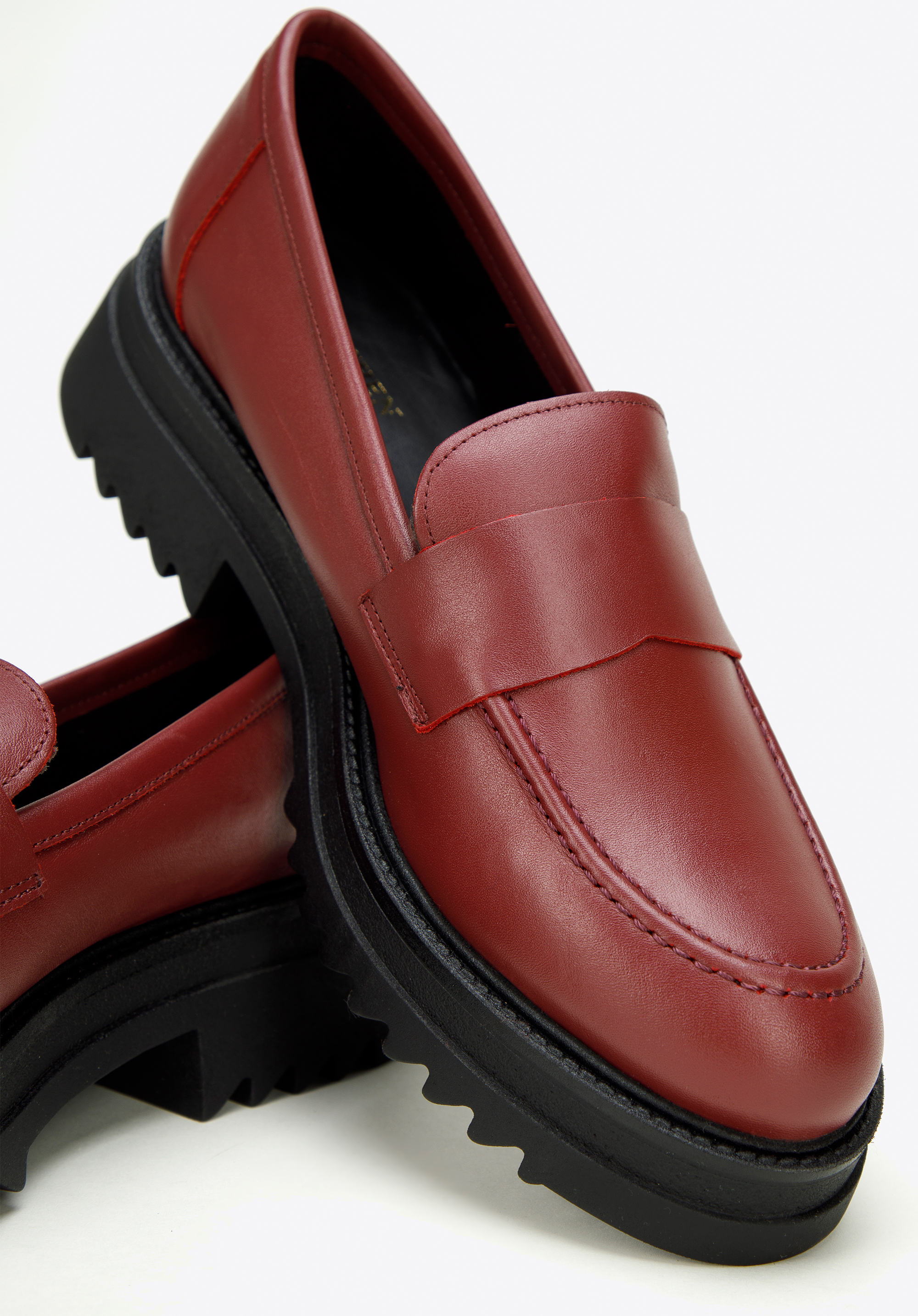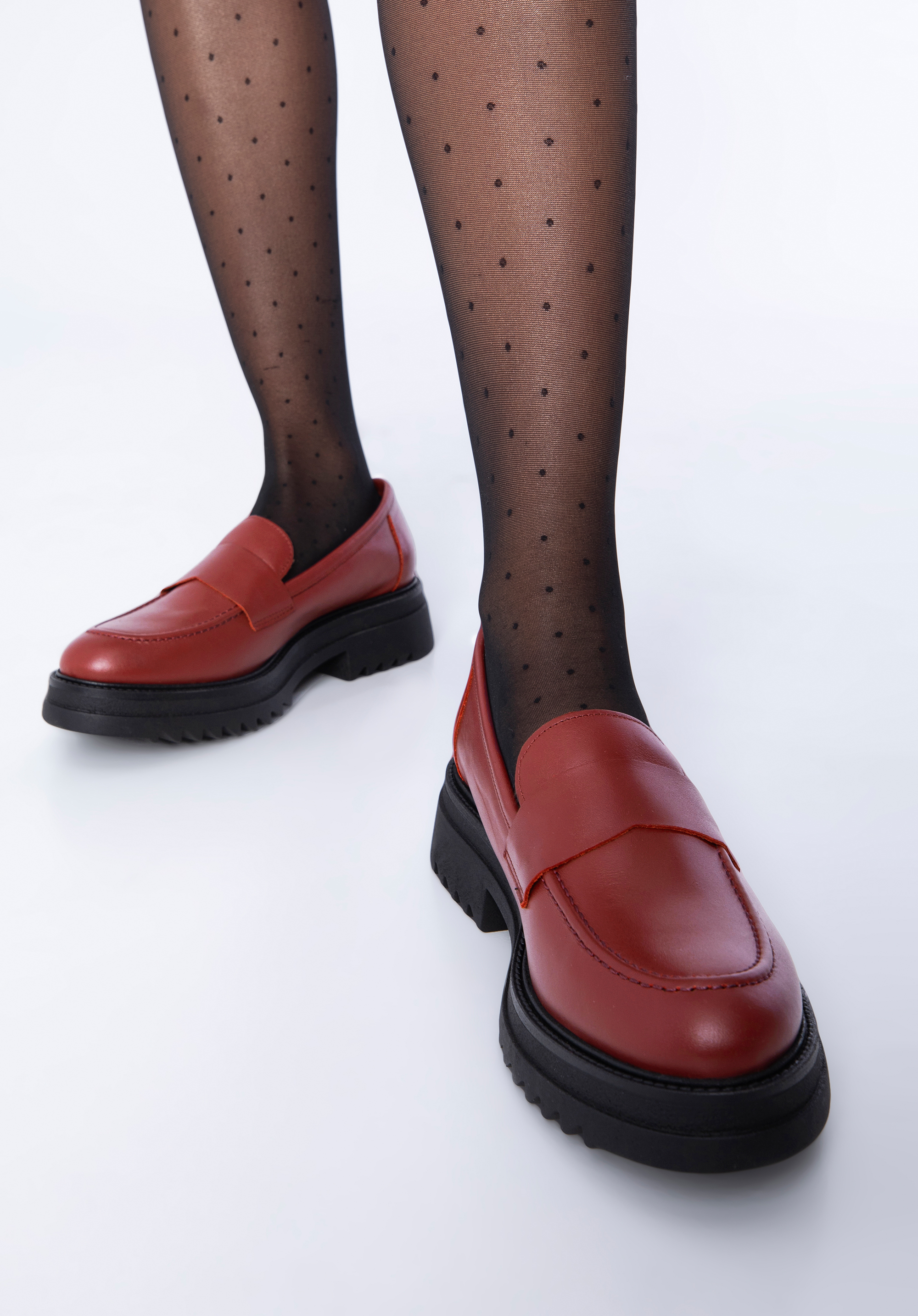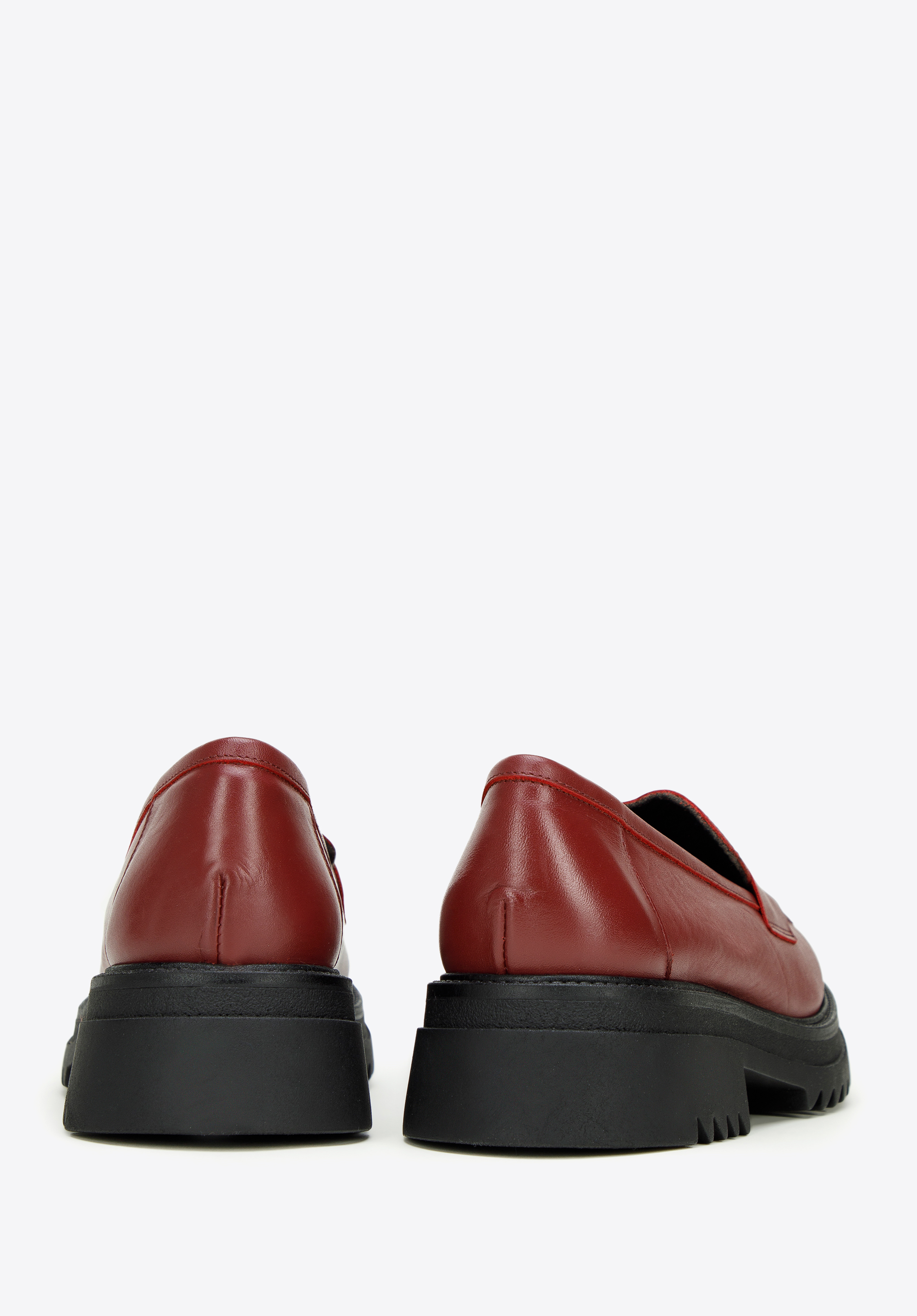 Ви будете носити це модне взуття протягом багатьох сезонів. Вони виготовлені в Іспанії з високоякісної натуральної шкіри. Вони мають обробку на носку та декоративний вирізний ремінець. Товста підошва на платформі додасть кілька сантиметрів до росту і забезпечить хороше зчеплення щодня. Носіть їх зі шкарпетками і улюбленим міні-сукнею або чінос і сорочкою - ви будете виглядати стильно в будь-якій ситуації. Жіночі шкіряні мокасини на платформі - відмінний вибір для любительок незмінних і стильних аксесуарів.