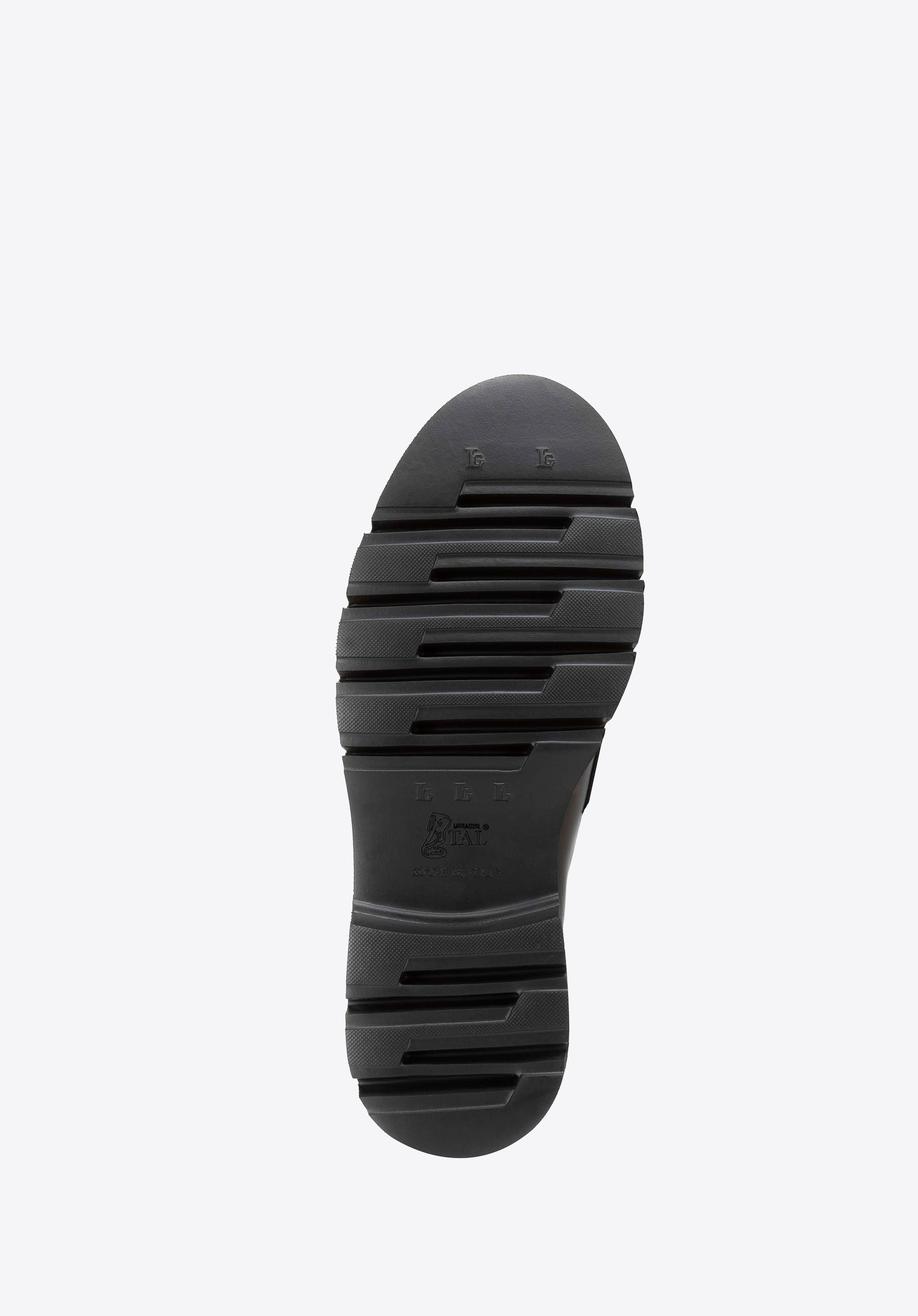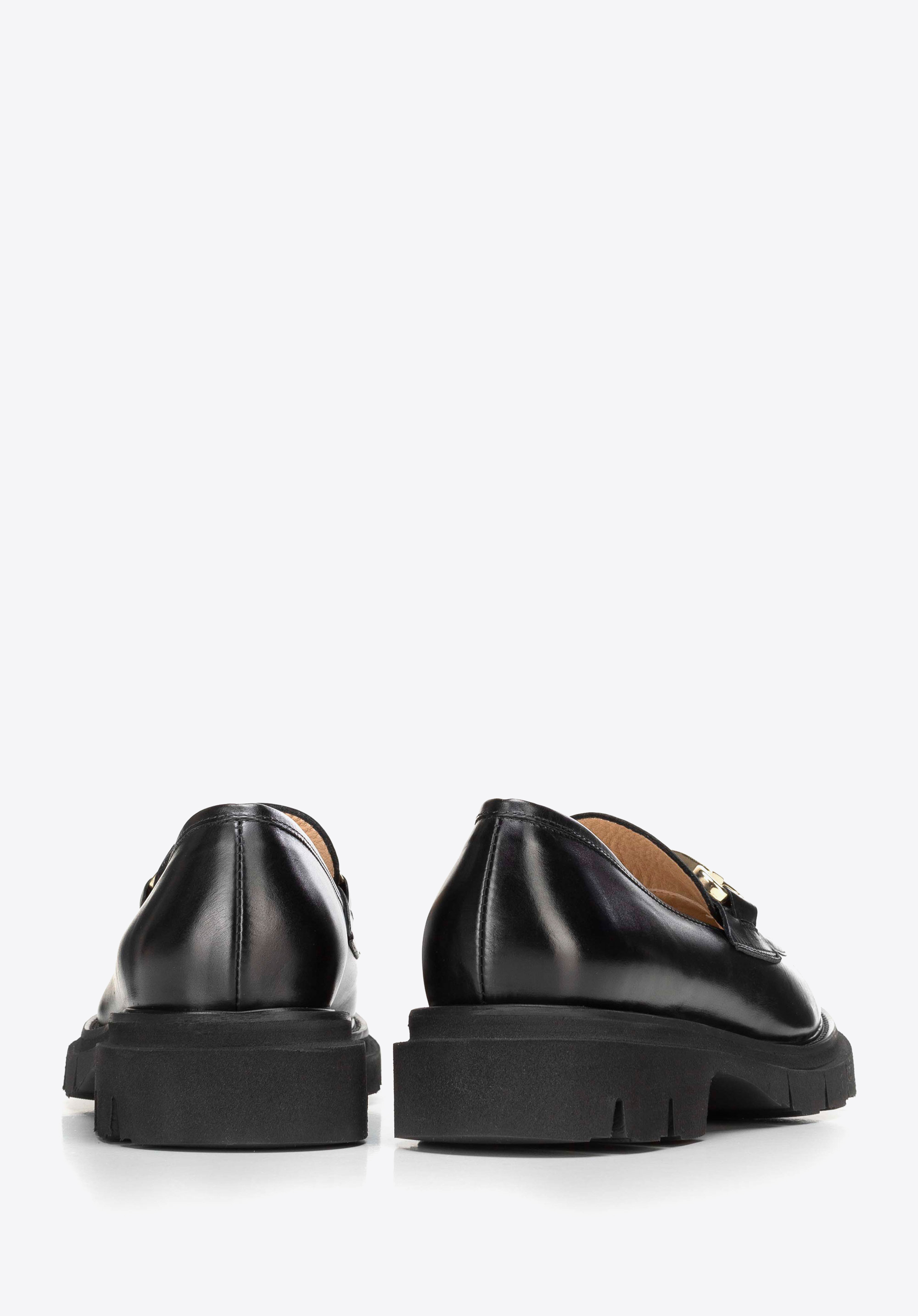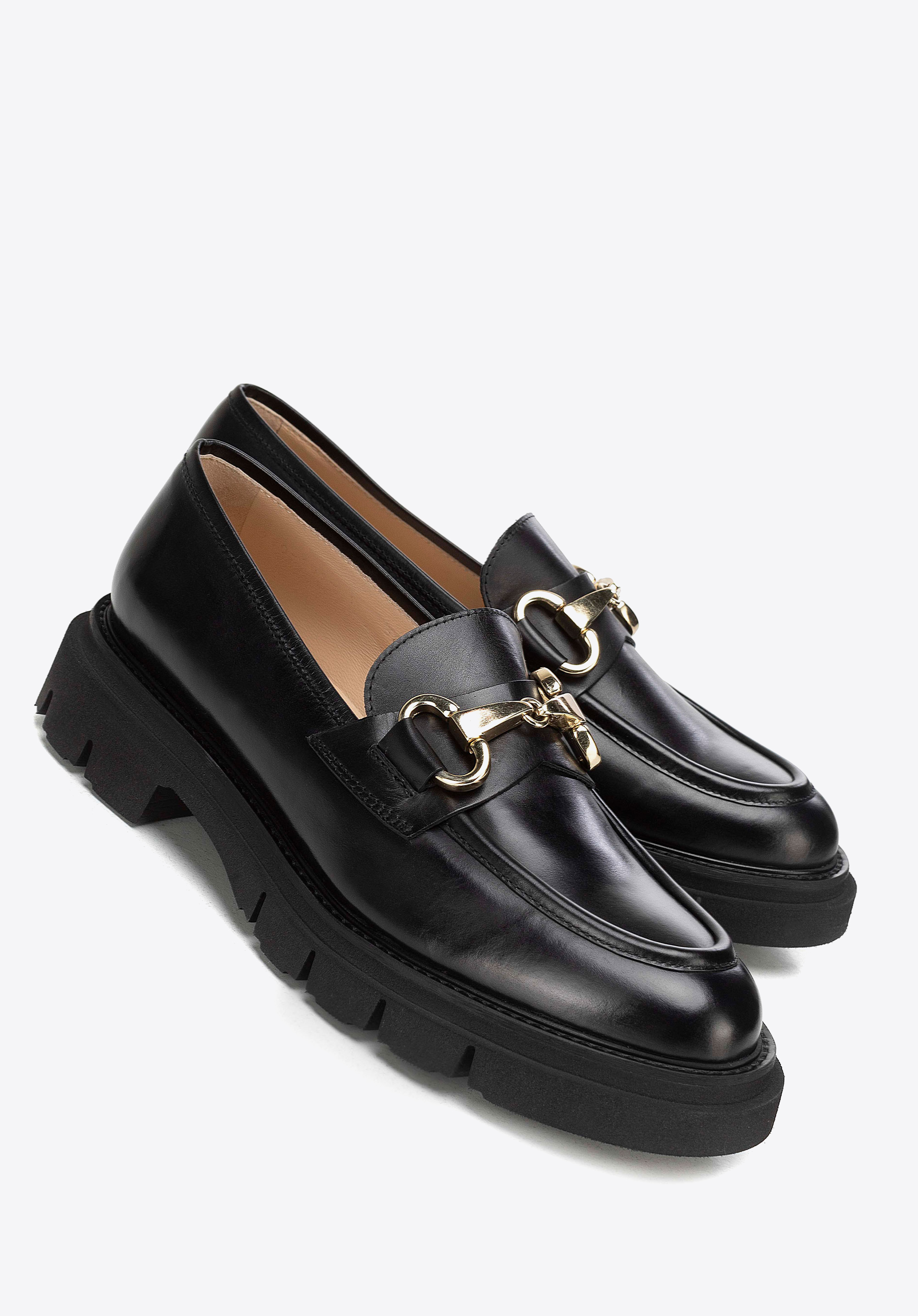 Жіночі шкіряні мокасини з декоративною пряжкою та рифленою платформою Колір: чорний