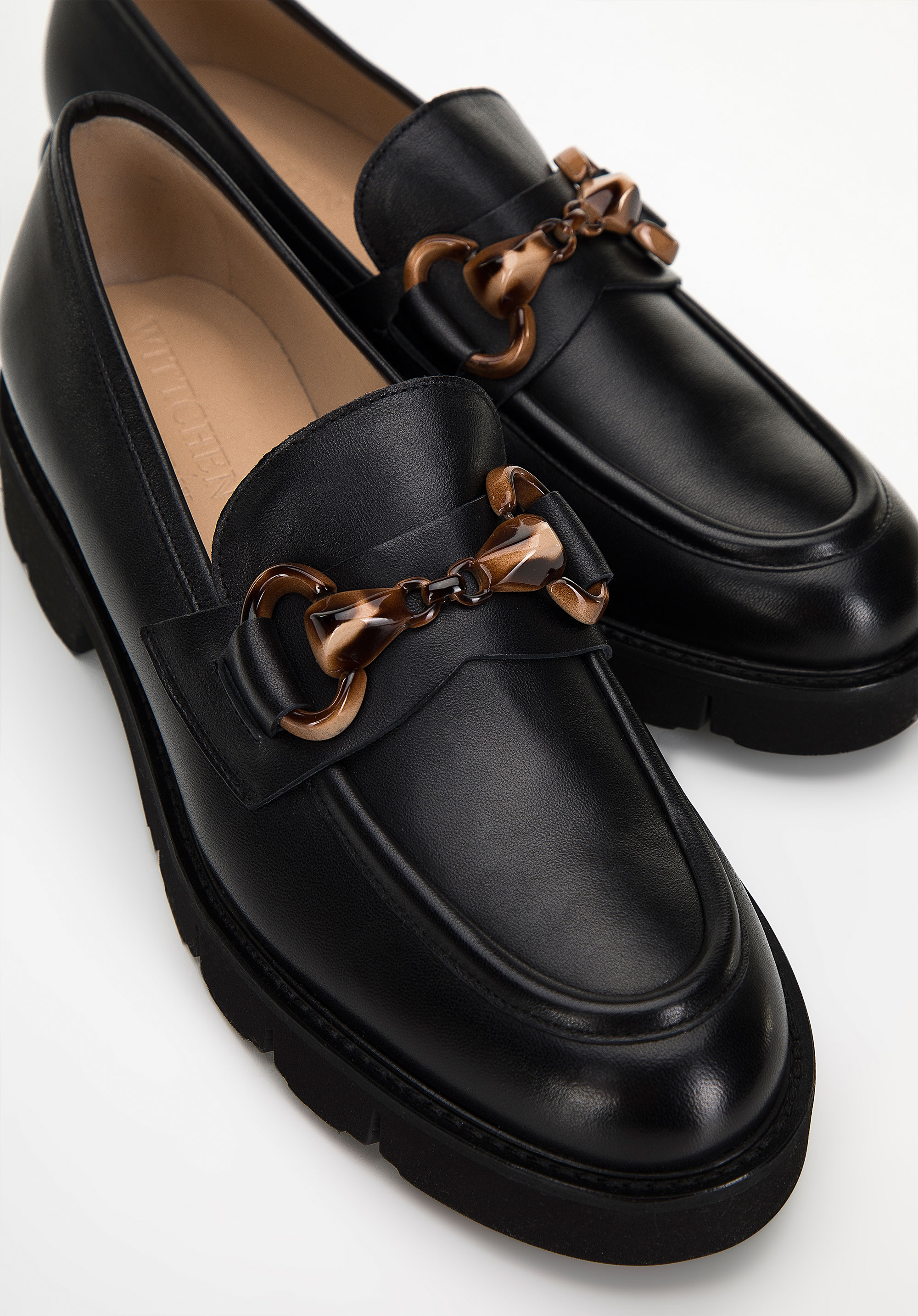 Жіночі шкіряні мокасини з пряжкою на платформі Колір: чорний