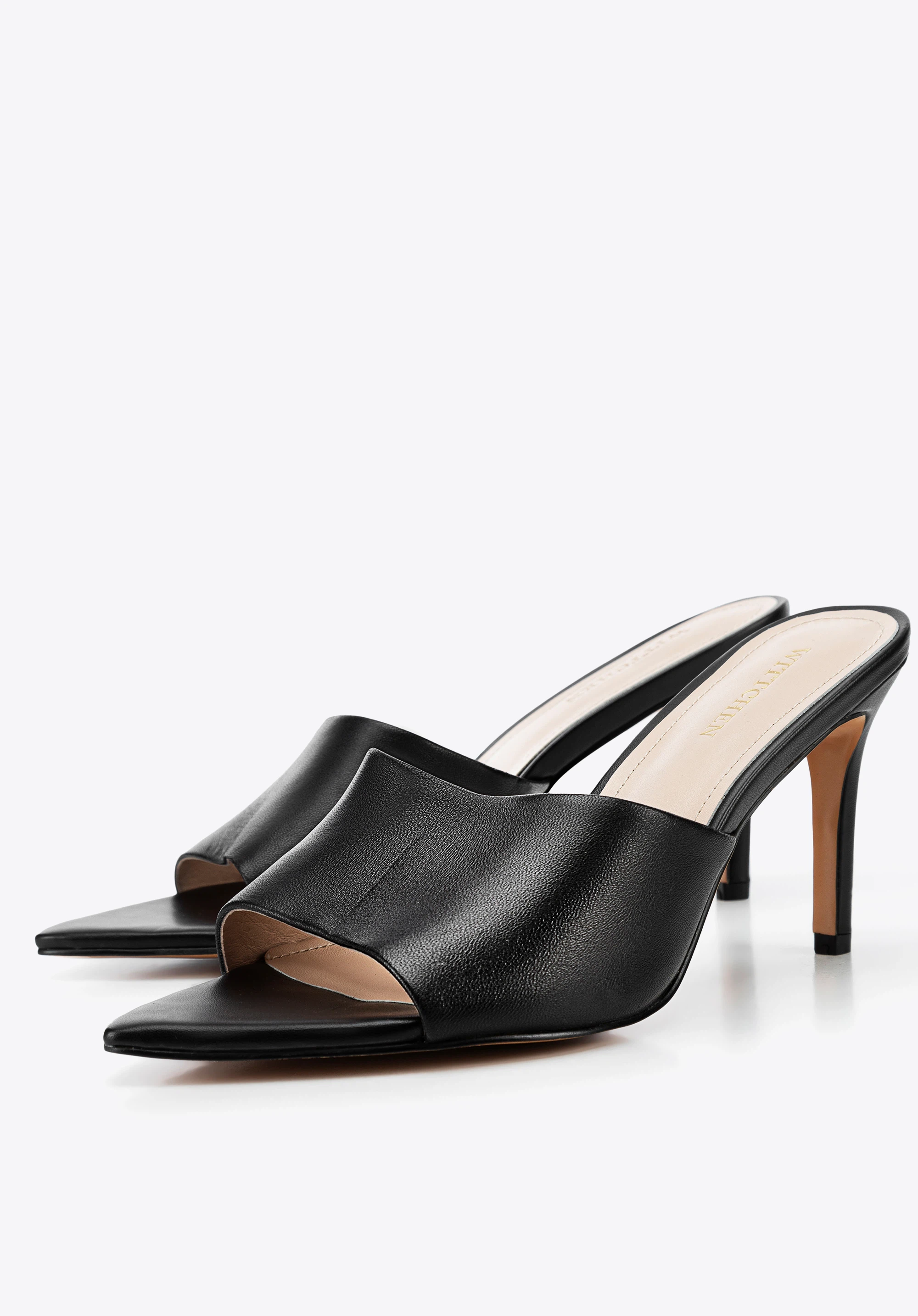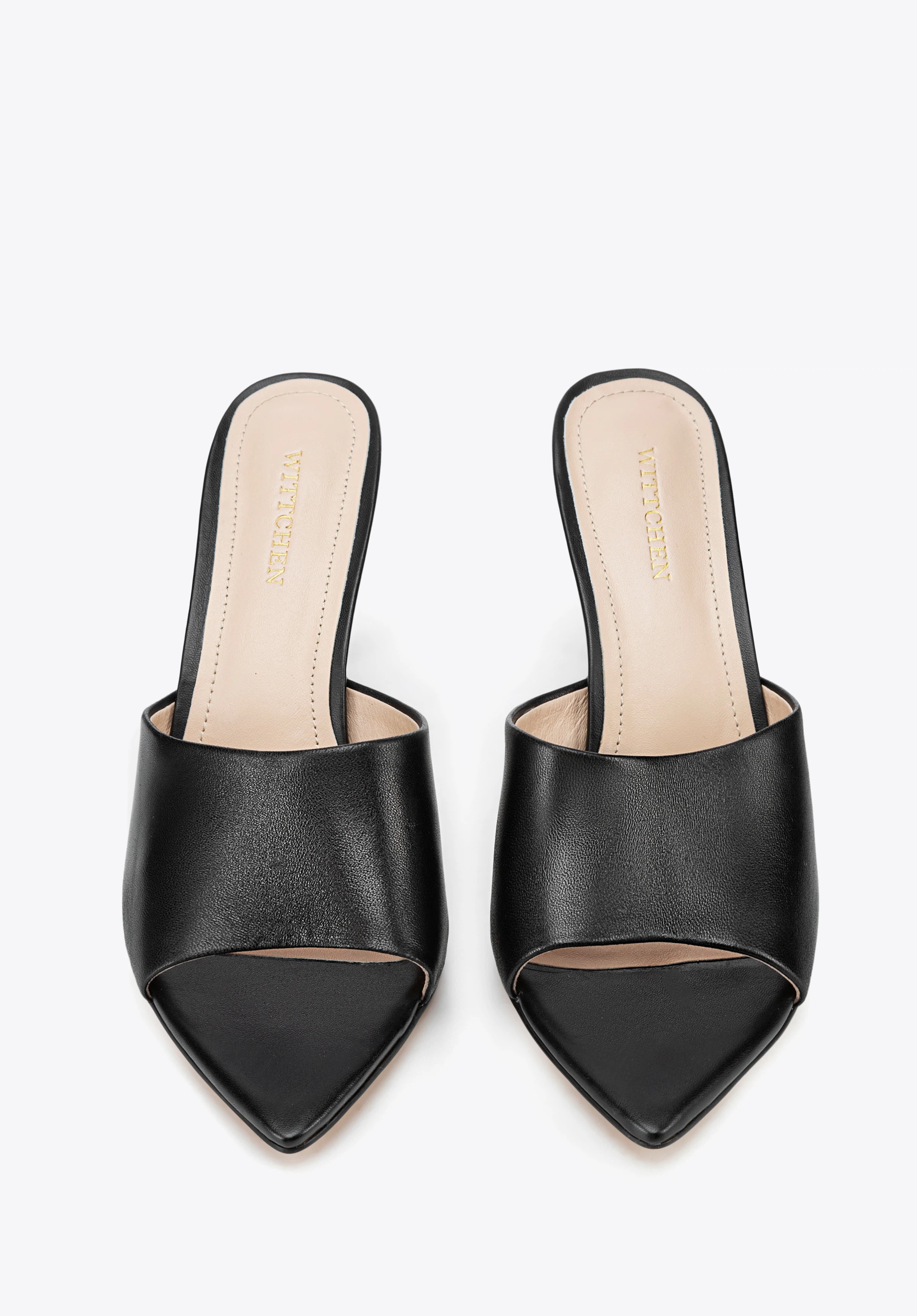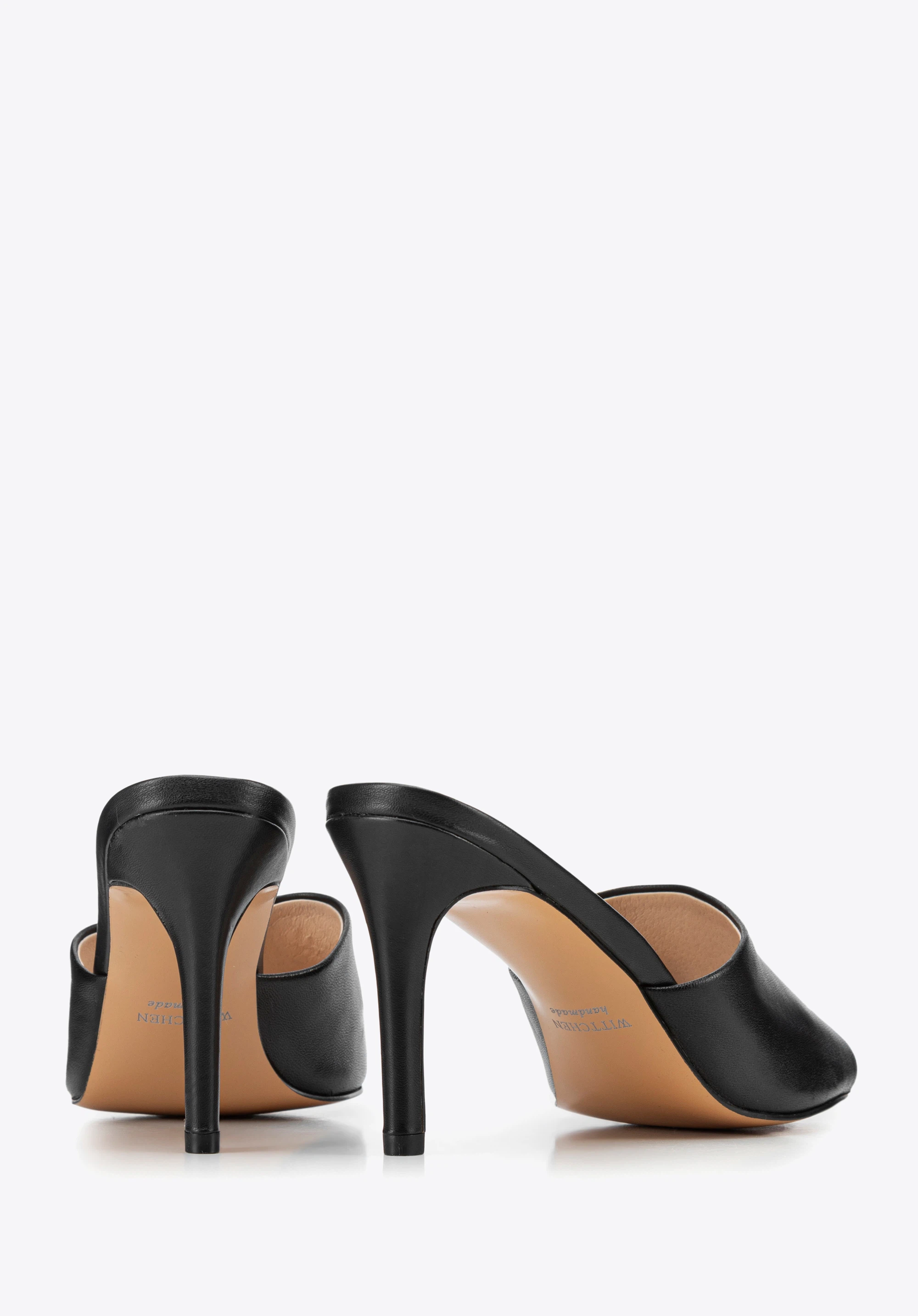 Жіночі шкіряні мюлі на підборах Колір: чорний