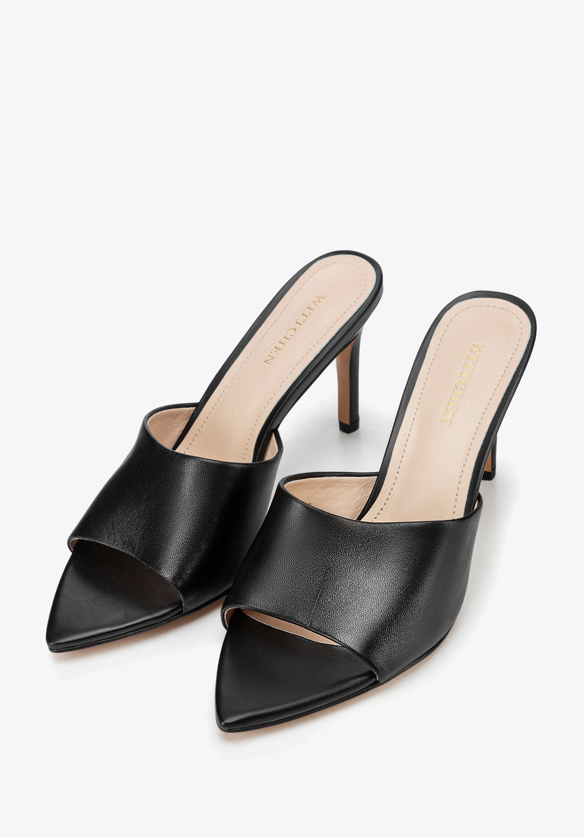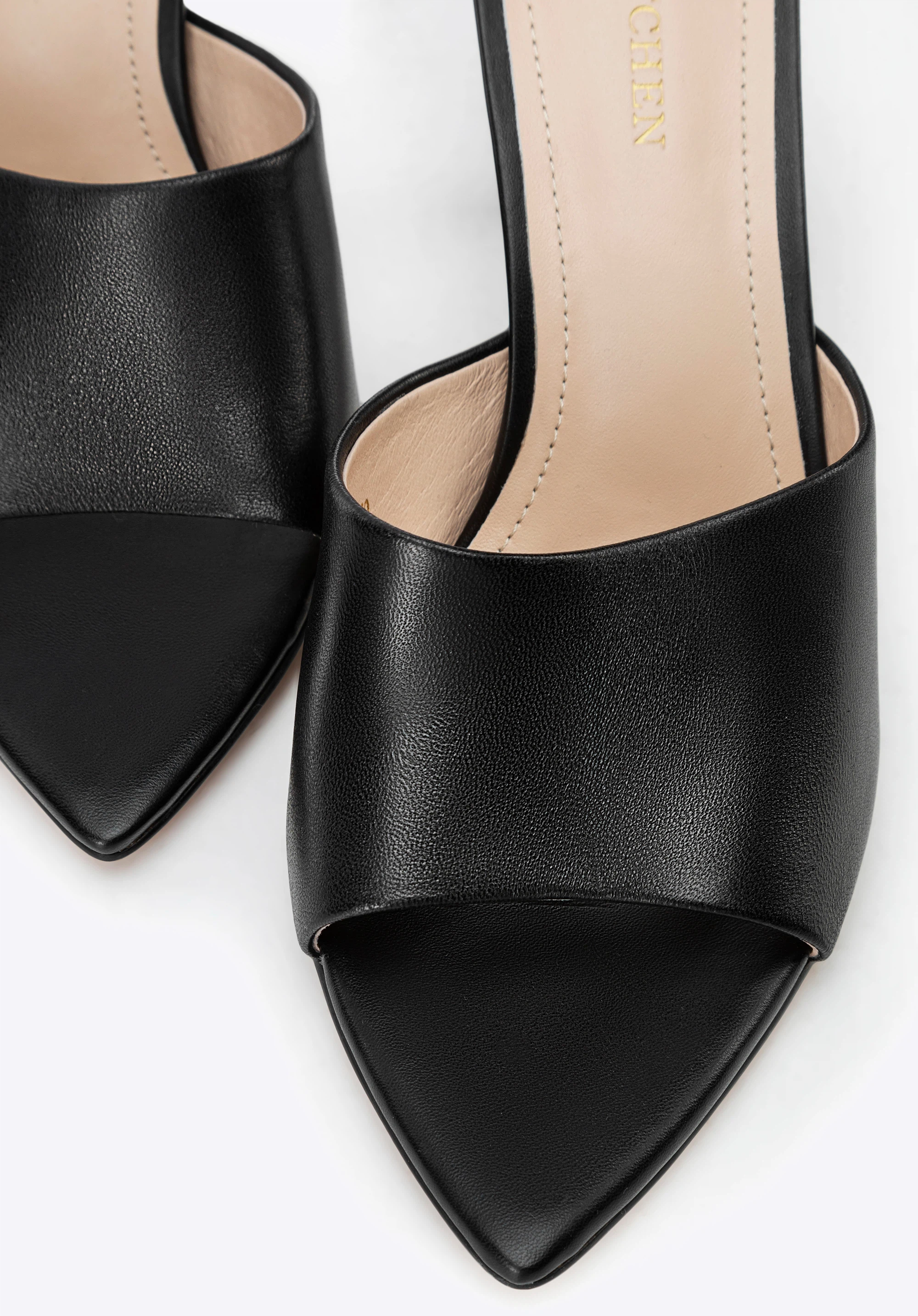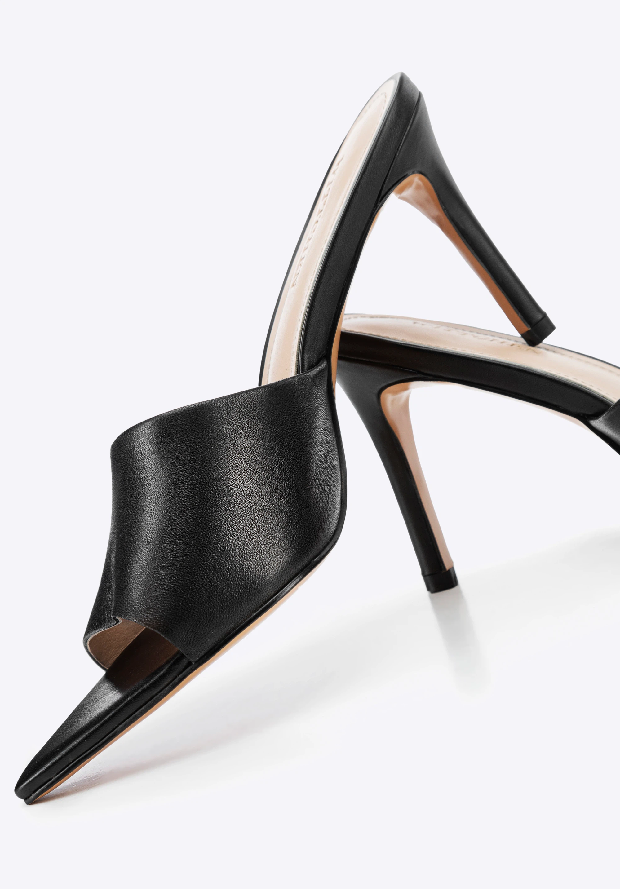 Жіночі шкіряні мюлі на підборах Колір: чорний