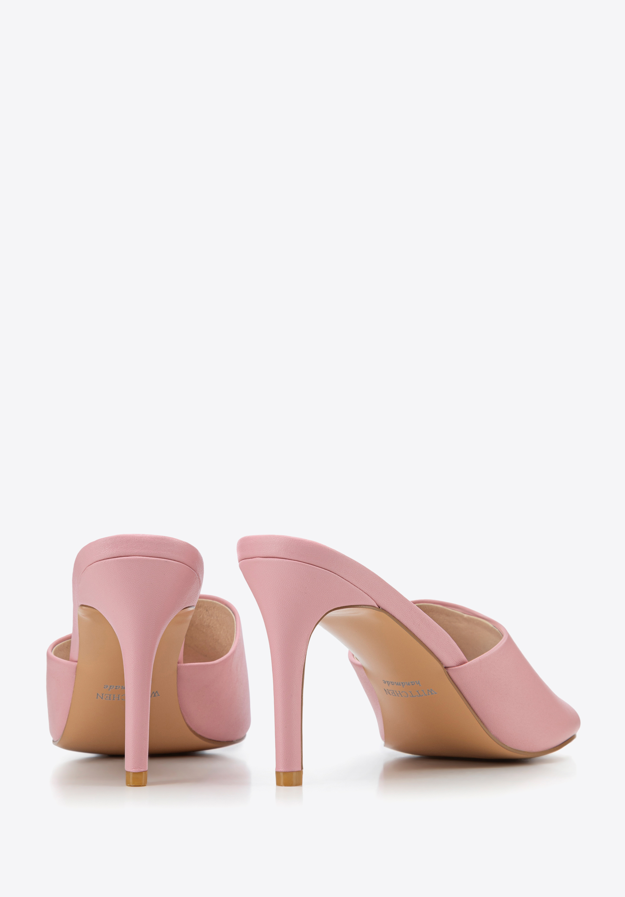 Зробіть крок у винятковий стиль! Ці жіночі мюлі на високих підборах поєднують мінімалістичну елегантність із ноткою літньої легкості. Виготовлені з м'якої шкіри з гострим носком , вони ідеально підходять для сучасних жінок, які хочуть виглядати шикарно та почуватися комфортно.