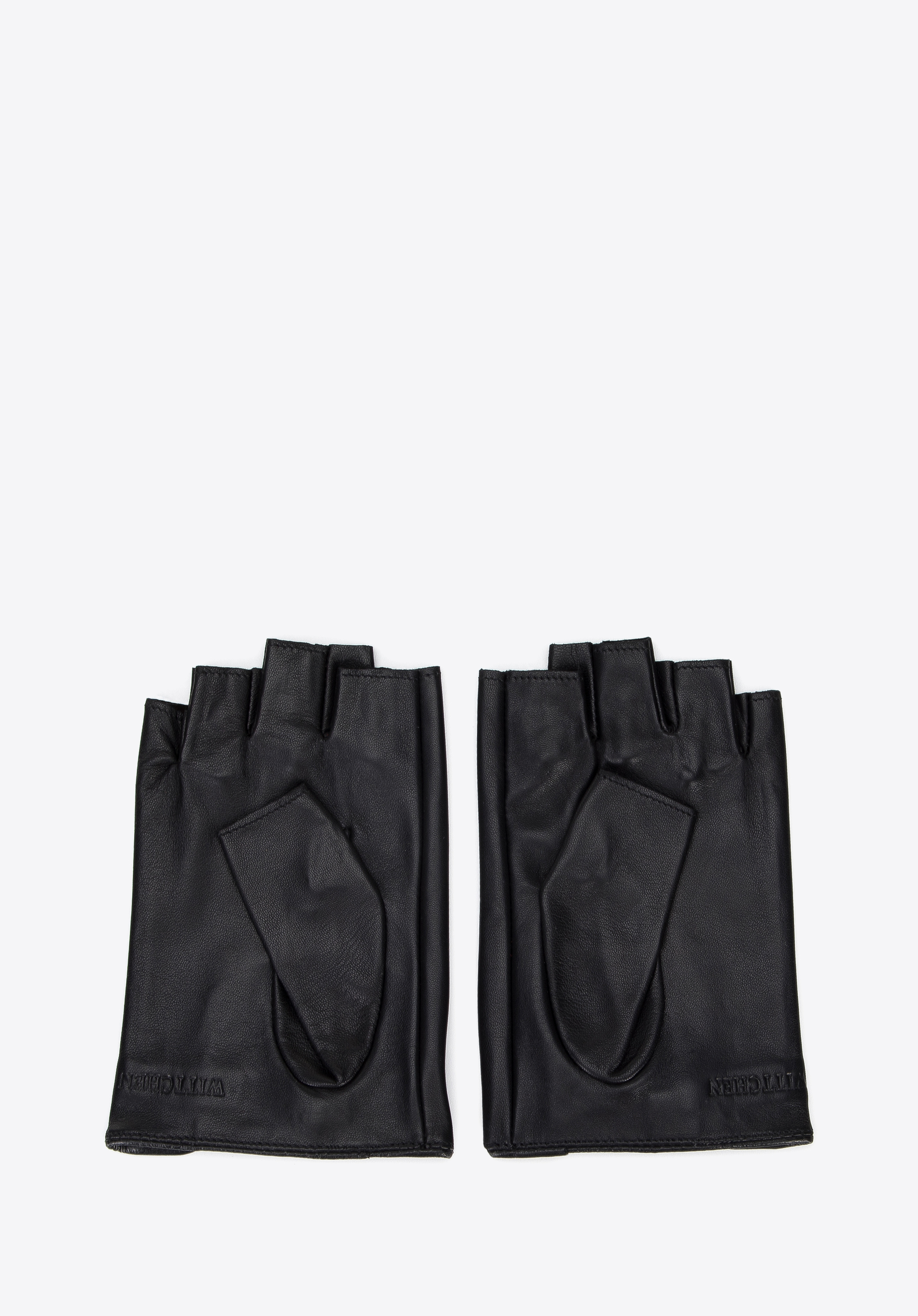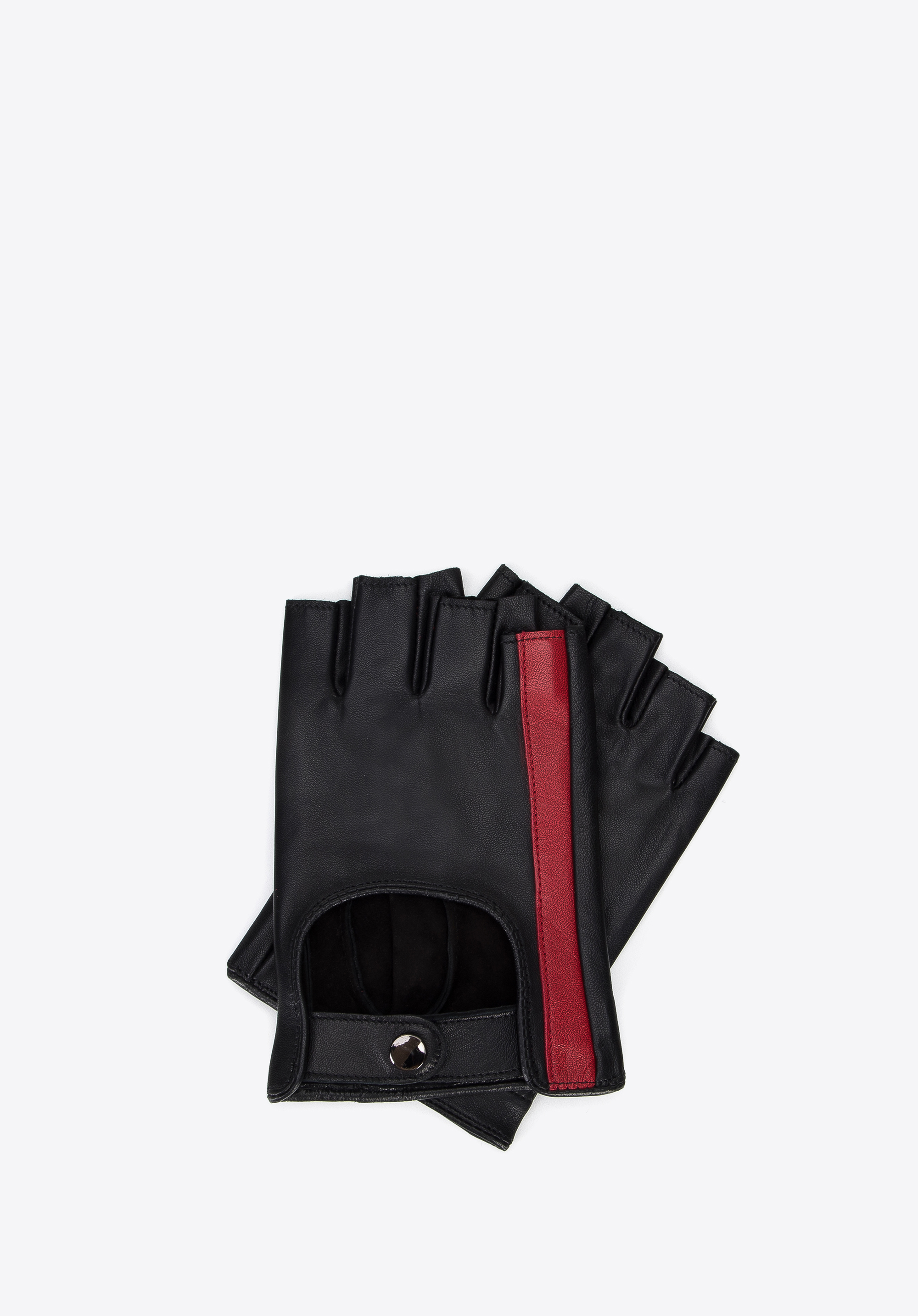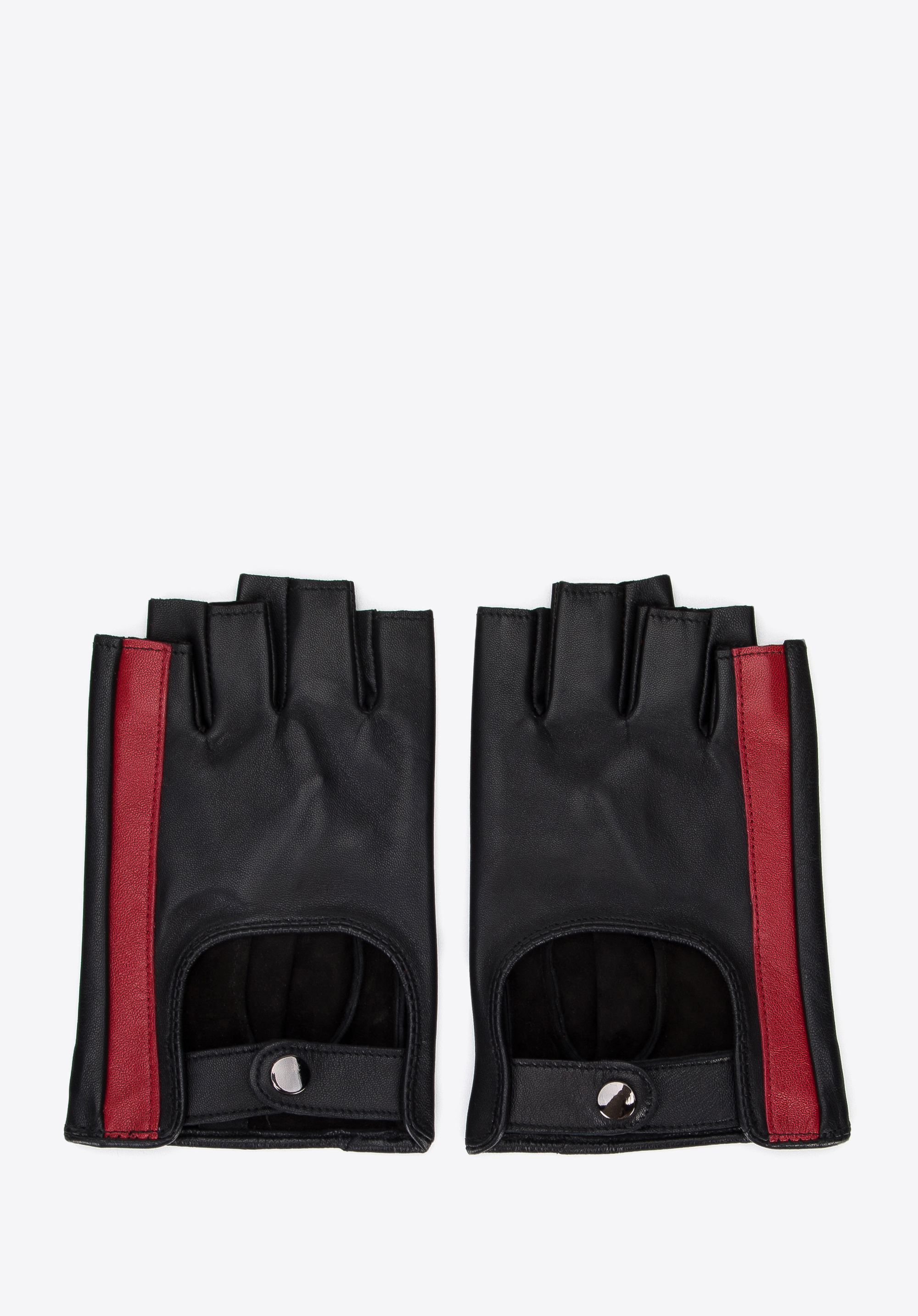 Жіночі шкіряні рукавички без пальців з декоративним ремінцем Колір: чорно-червоний