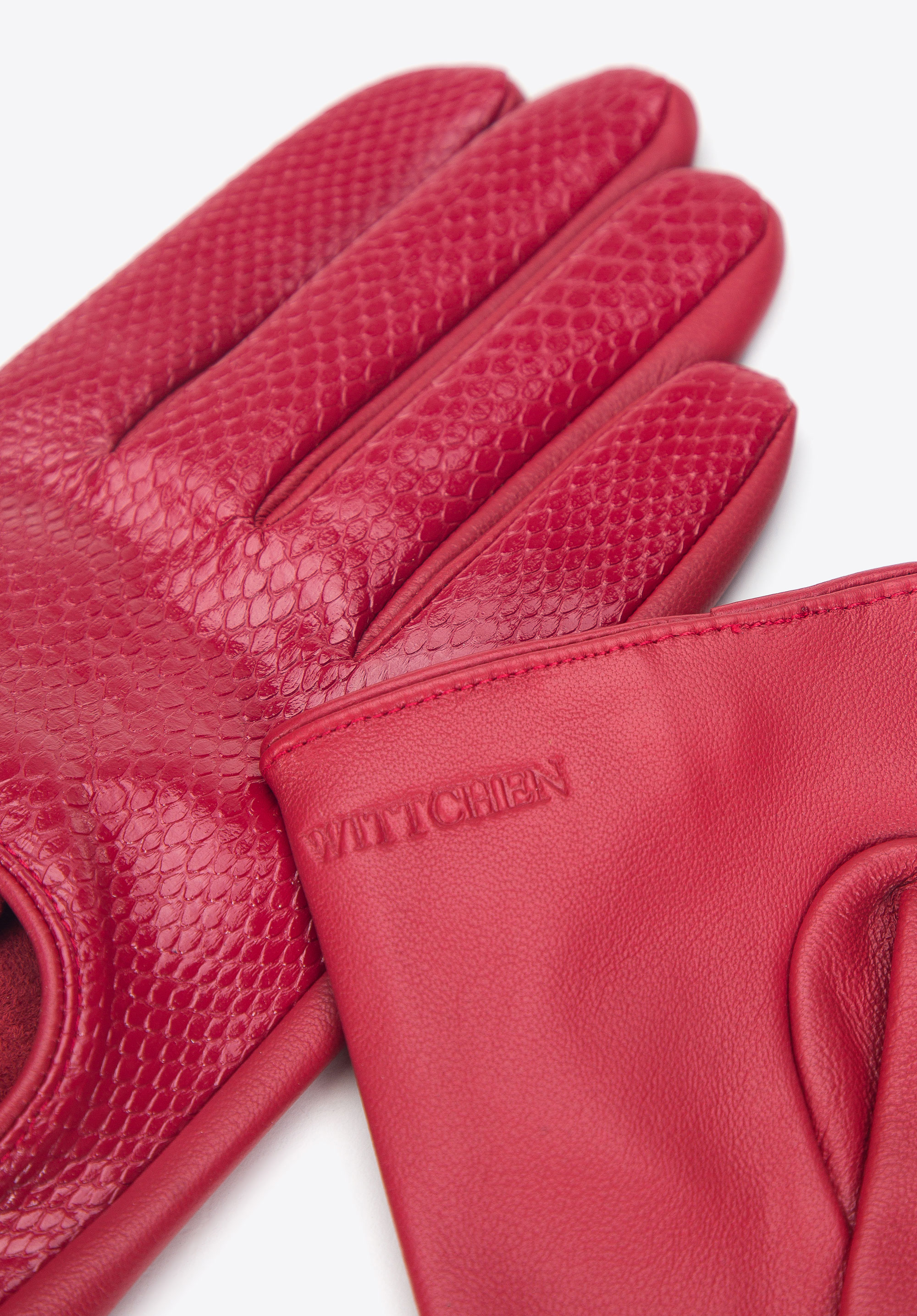 Жіночі шкіряні рукавички для водіння з ефектом тварин Колір: червоний