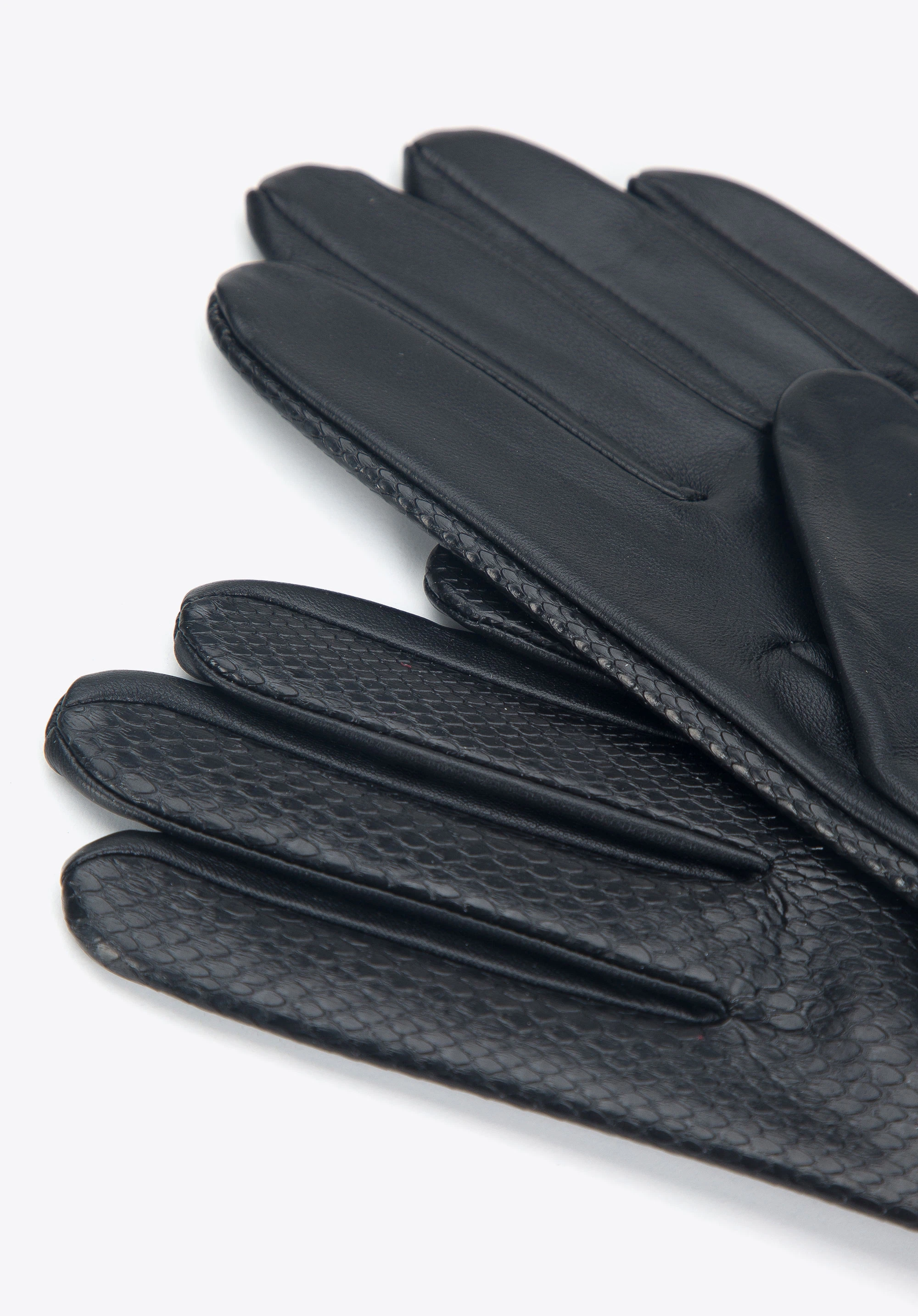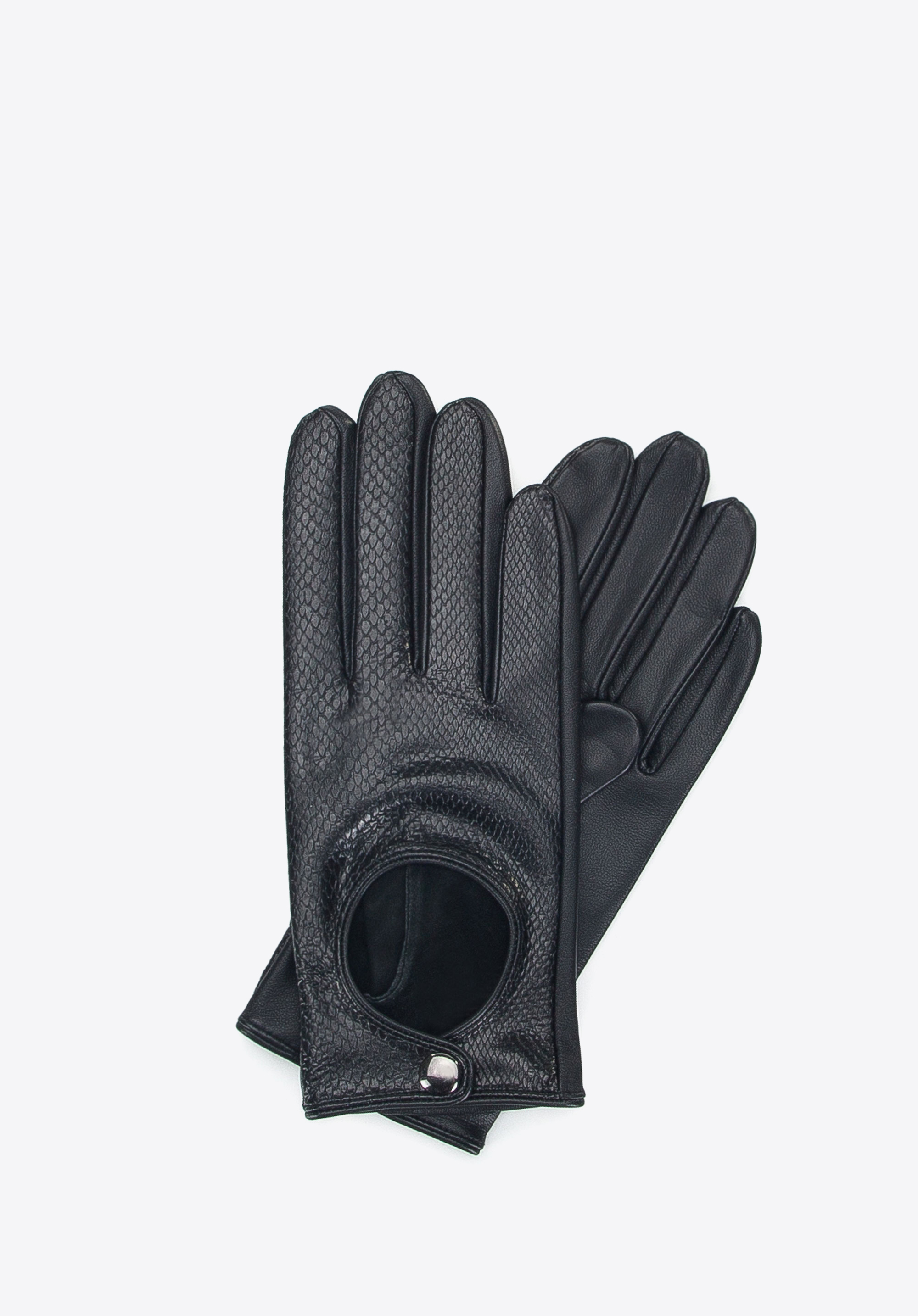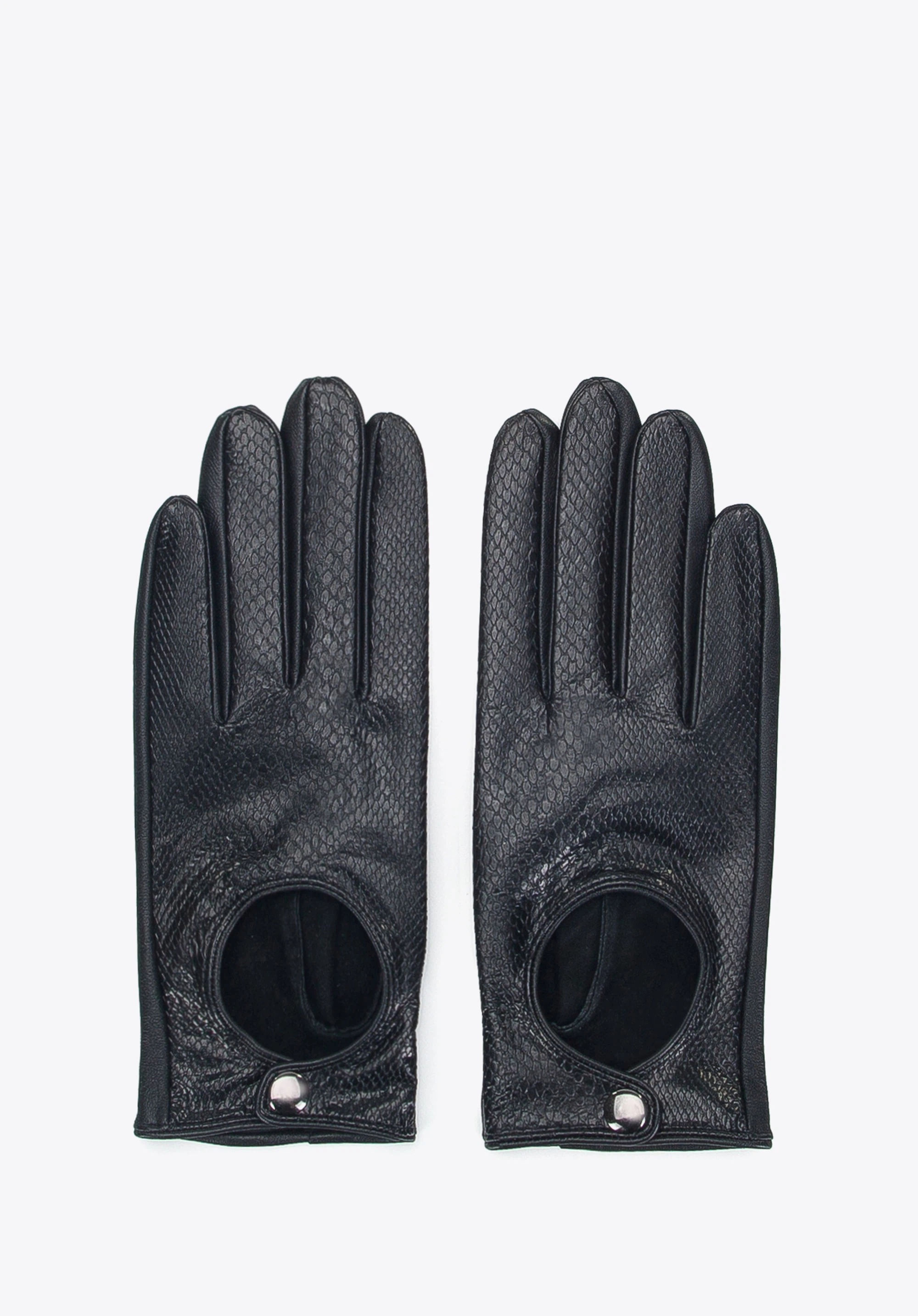 рукавички для водіння з отвором для ключа спереду виготовлені з високоякісної натуральної шкіри з тисненням у вигляді ящірки. Ці рукавички для водіння прикрашені