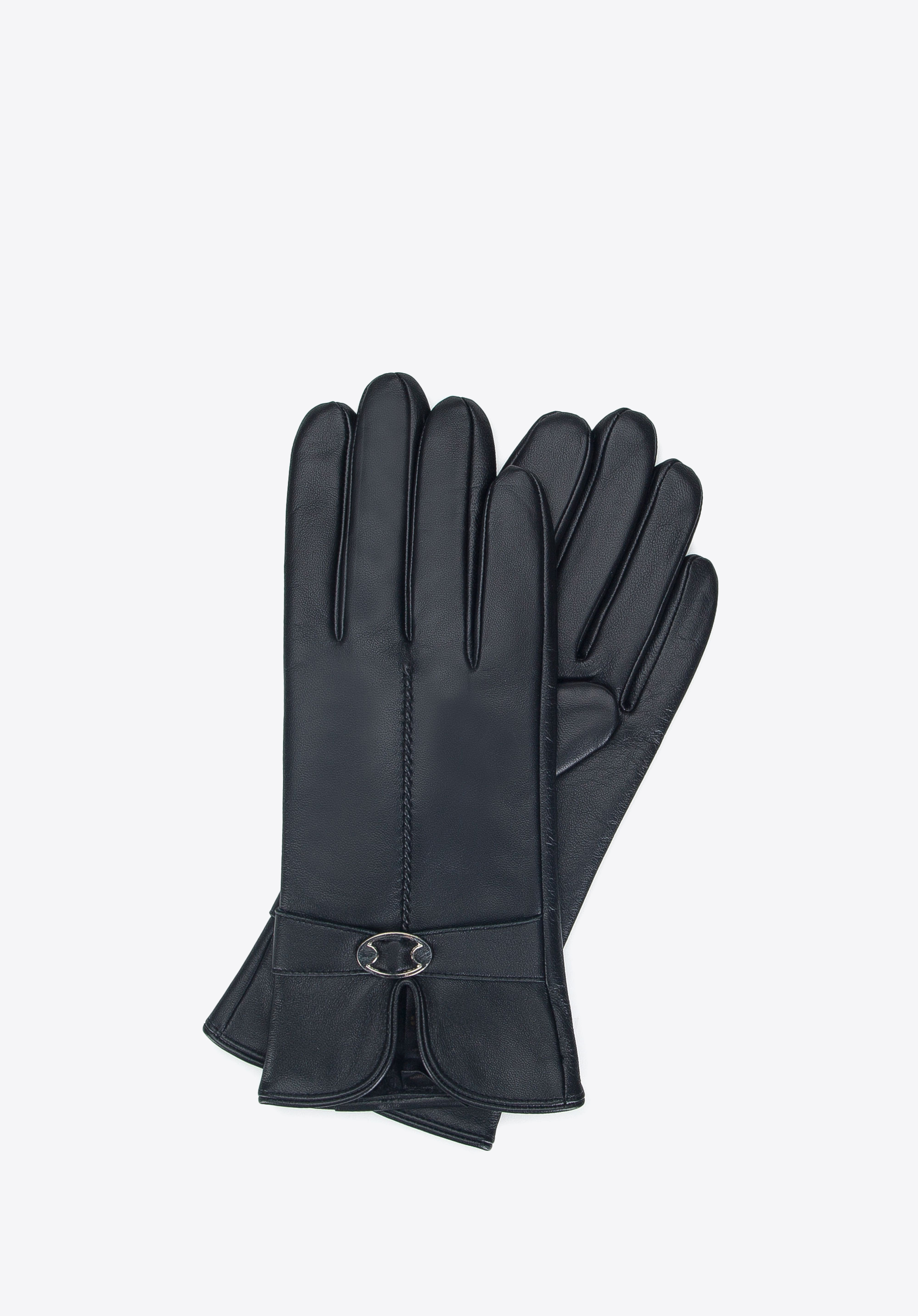 Жіночі шкіряні рукавички з пряжкою Колір: чорний