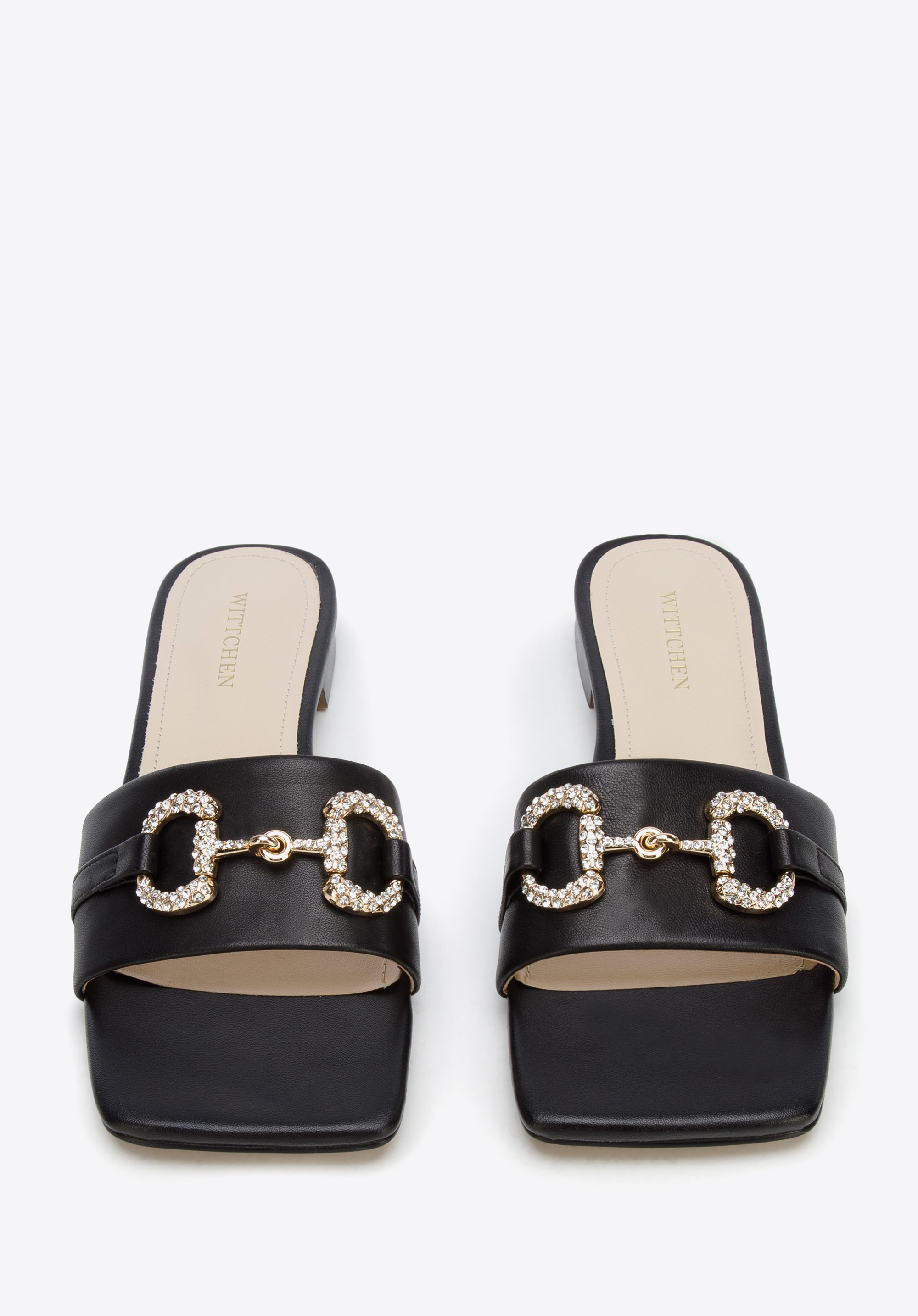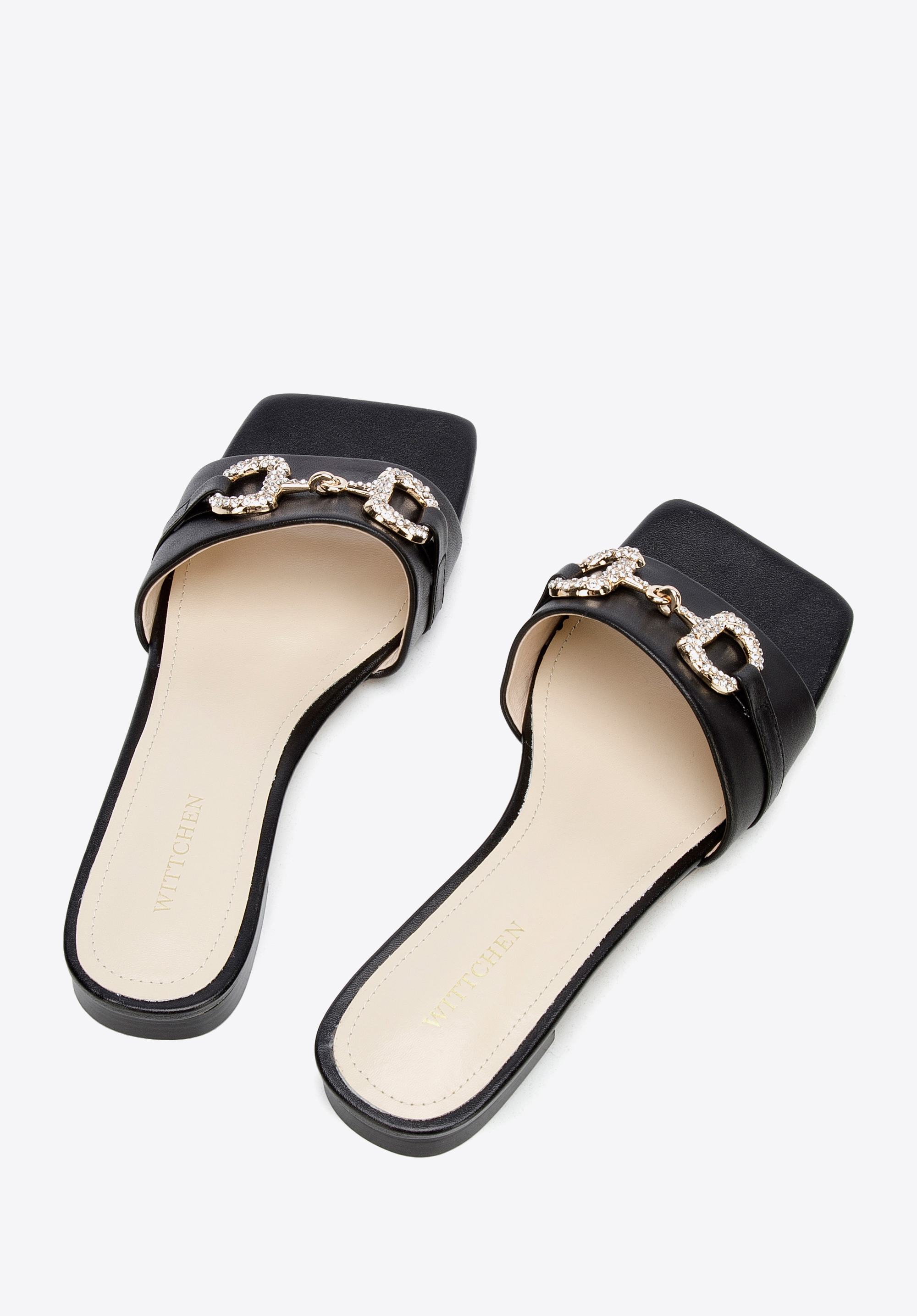 Жіночі шкіряні шльопанці з блискучою пряжкою чорні