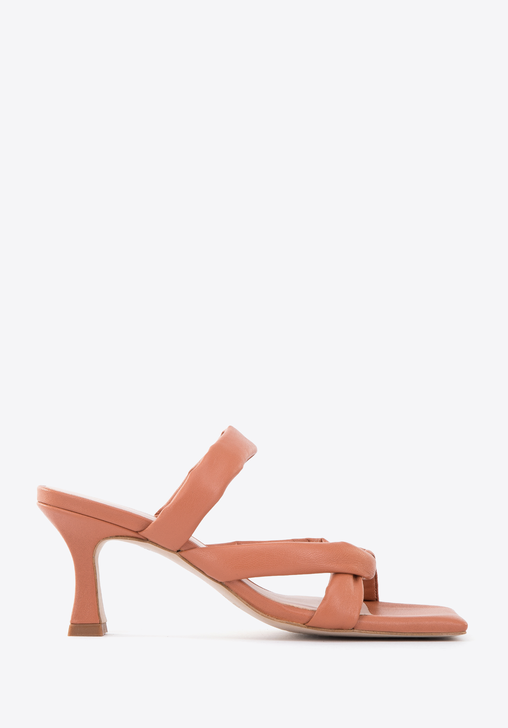 Ці жіночі шльопанці - чудовий вибір для теплих днів. Виготовлені в Іспанії з високоякісної натуральної шкіри. М''які ремінці м''яко огортають ногу і міцно її утримують. Квадратний носок підкреслює неповторний характер цього взуття. Злегка розширений донизу каблук досить стійкий, завдяки чому в них буде зручно ходити. Носіть їх з довгою сукнею або короткими шортами - ви будете виглядати стильно в будь-якій ситуації. Жіночі шкіряні шльопанці з м''якими ремінцями модно доповнять ваш літній гардероб.