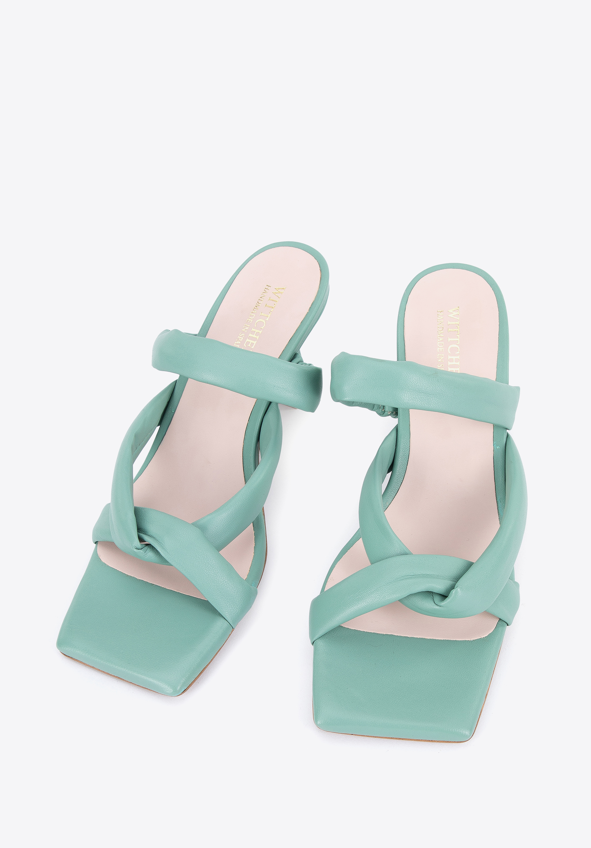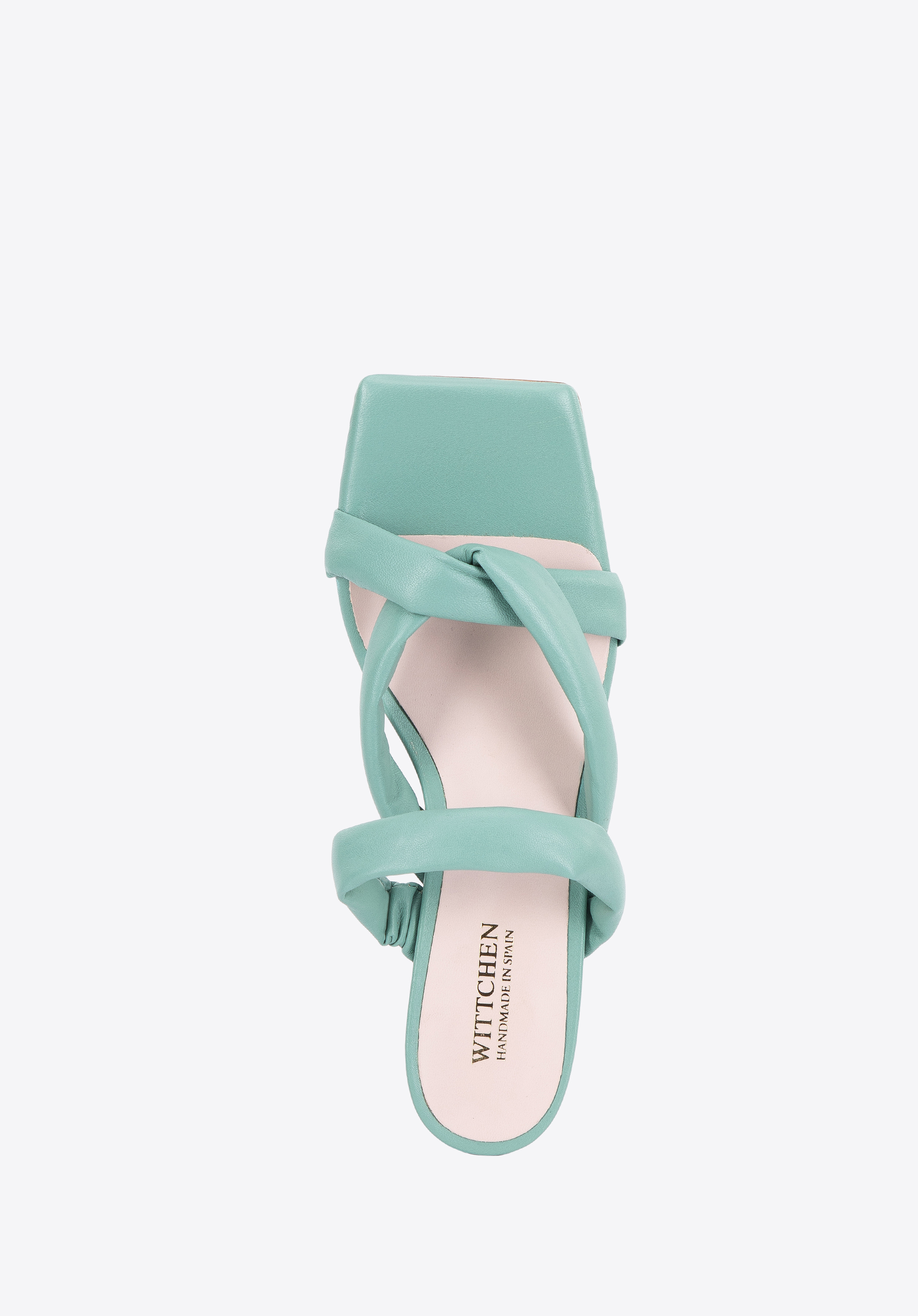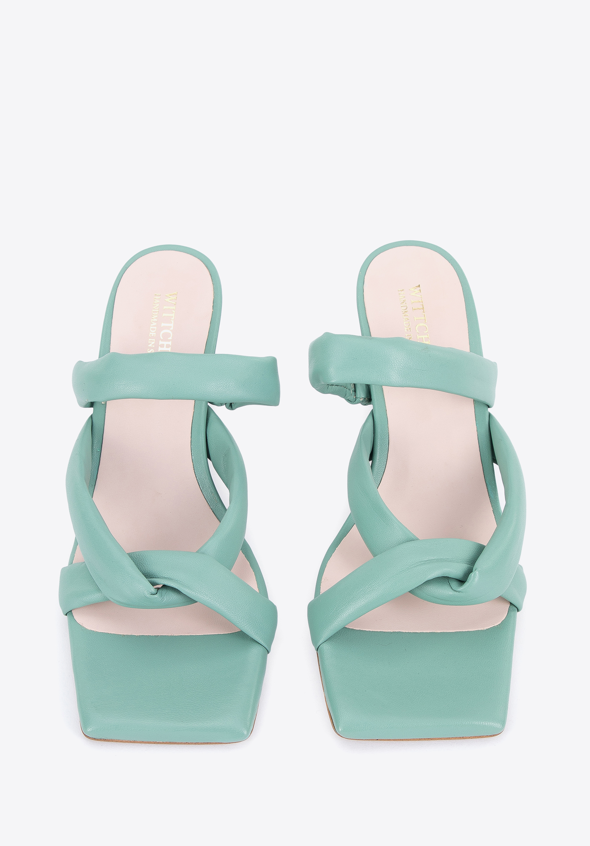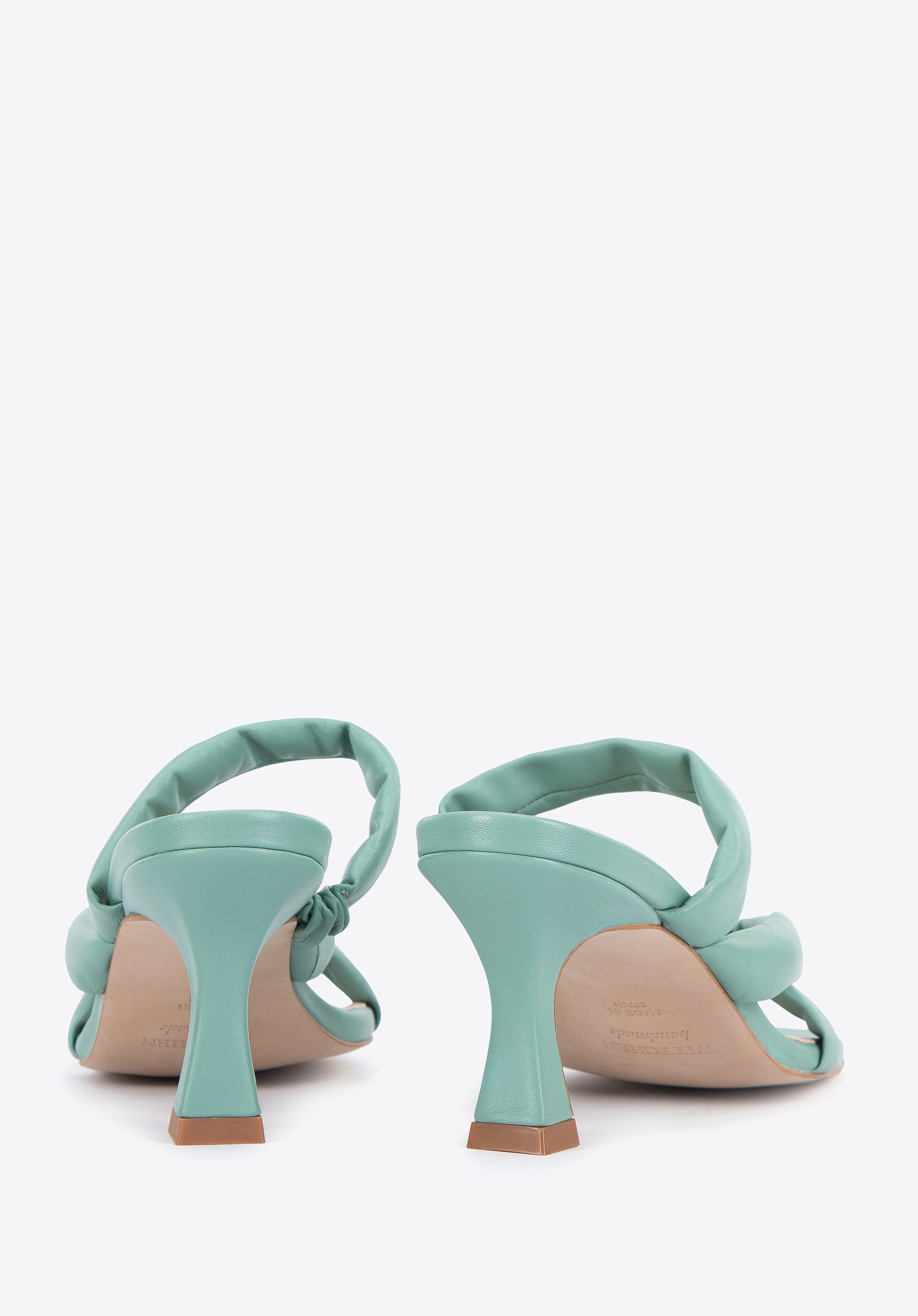 Жіночі шкіряні шльопанці з м''якими ремінцями м''ятні