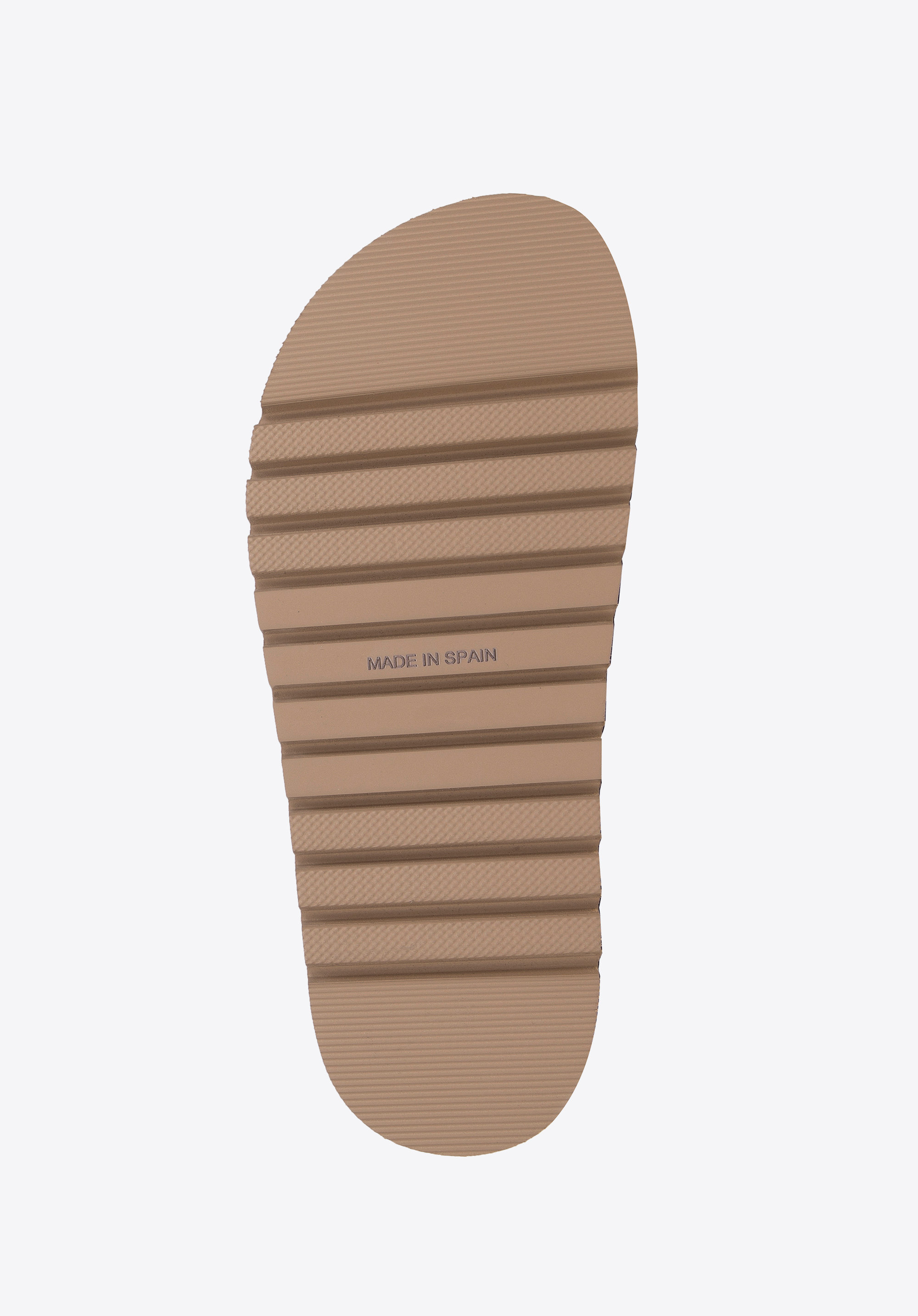 У цьому стильному взутті ви зможете комфортно провести теплі місяці. Вони виготовлені в Іспанії з високоякісної натуральної шкіри. Прикрашені дрібними заклепками, розподіленими по всій поверхні. Мають профільовану шкіряну устілку, яка забезпечить комфорт ваших ніг. Вони досить легкі, а ребриста підошва забезпечує хороше зчеплення в будь-яких умовах. Жіночі шкіряні шльопанці з невеликими заклепками на платформі – чудовий вибір для літа, який доповнить практично будь-який ваш стиль: струмуючу сукню, джинсові шорти та улюблену футболку.