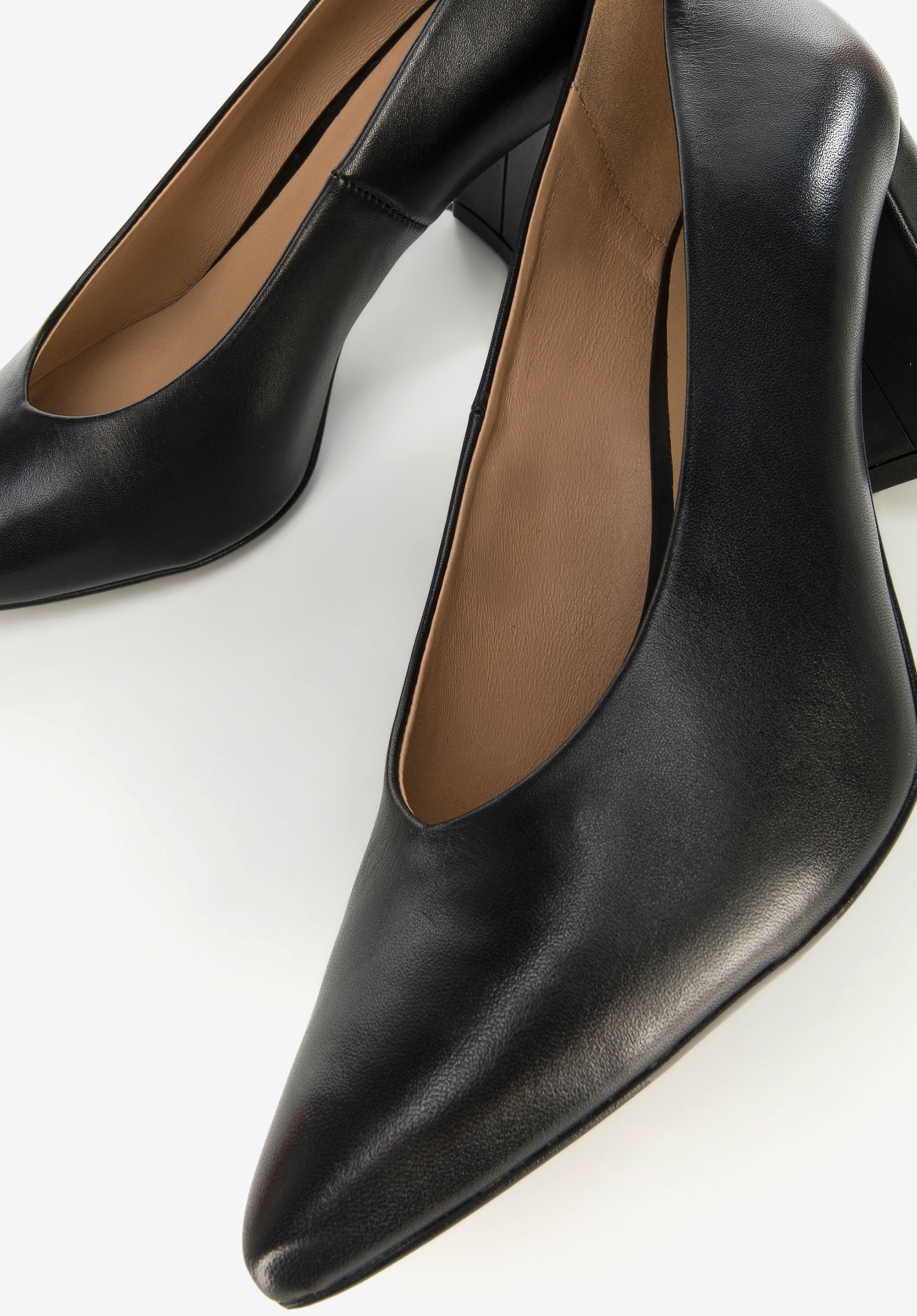 Ці фігурні туфлі на високих підборах стануть вашим улюбленим повсякденним взуттям. Вони виготовлені в Польщі з високоякісної натуральної шкіри, тому ви будете носити їх протягом багатьох сезонів. Акуратний ретро-дизайн і загострений носок підтягнуть фігуру. У них є шкіряна устілка, яка подбає про комфорт ваших ніг. Ці елегантні туфлі доповнять ваш наряд як на роботу, так і після роботи. Вони чудово виглядатимуть з маленьким чорним платтям, також можна додати стилю до джинсів і сорочках оверсайз. Жіночі шкіряні туфлі-човники на підборах – це вічна модель, яка принесе вам масу задоволення.