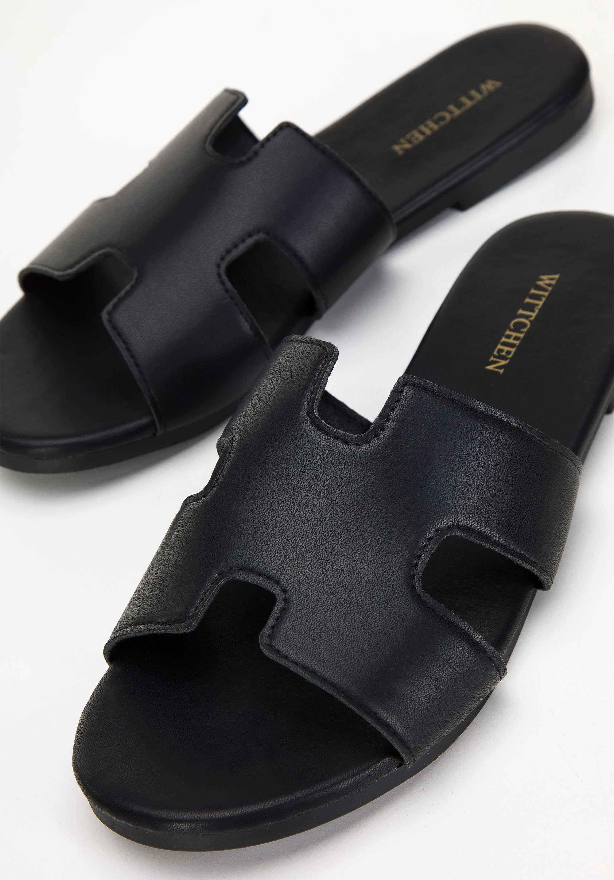 Жіночі шльопанці з геометрично вирізаною передньою частиною Колір: чорний