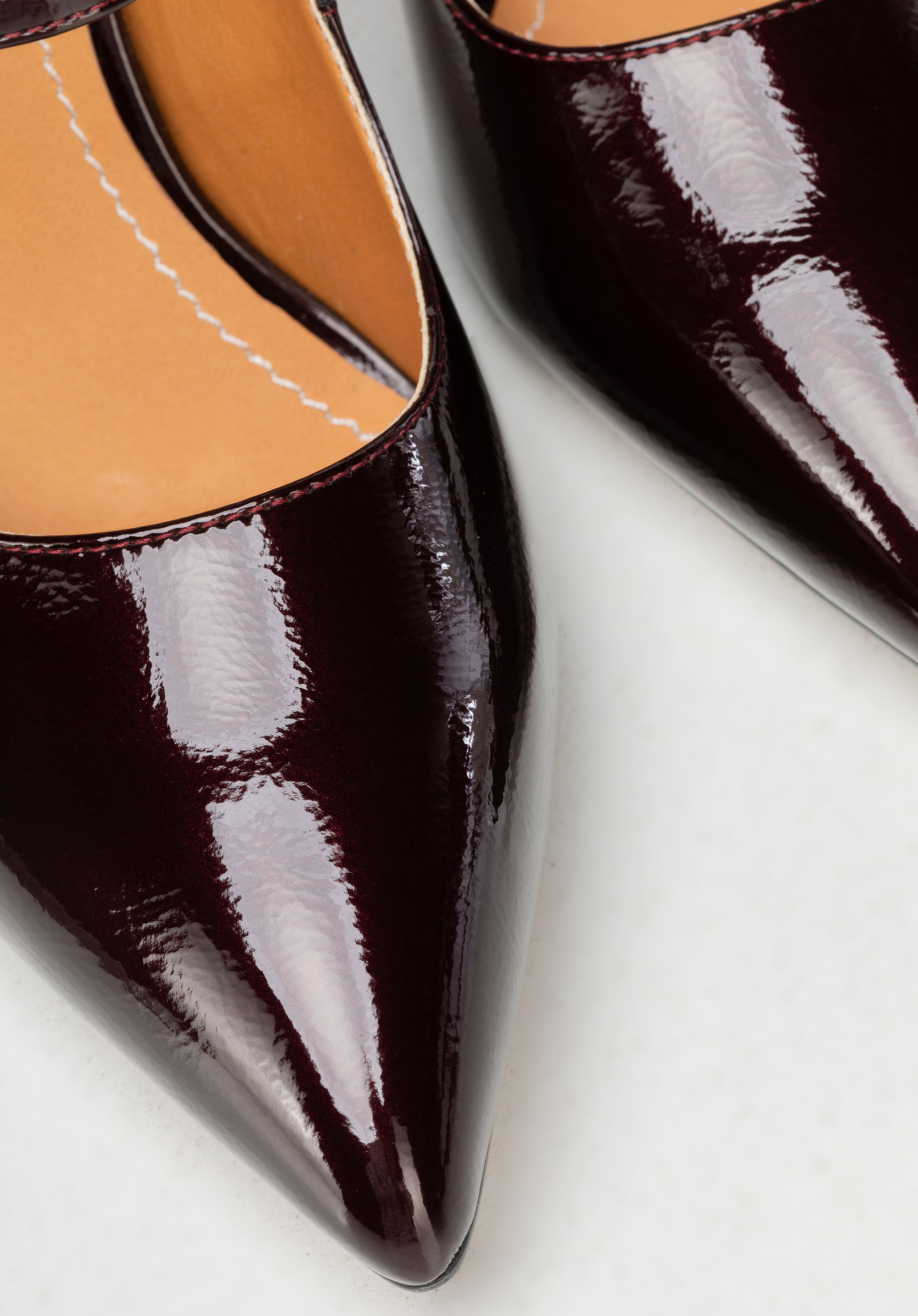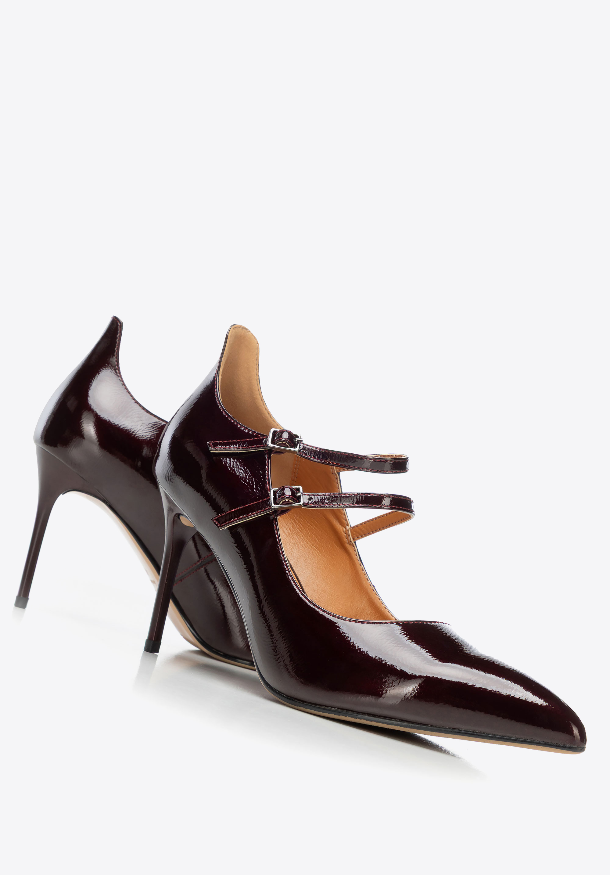 Відкрийте для себе туфлі на шпильці , які ідеально поєднують позачасову елегантність із повсякденним комфортом. Виготовлені з високоякісної лакованої шкіри , вони відрізняються ніжним блиском та винятковою міцністю, що гарантує, що вони виглядатимуть як нові протягом багатьох років. Тонкий каблук-шпилька додає витонченості вашому силуету, а загострений носок візуально видовжує ноги, підкреслюючи жіночну лінію. Регульовані тонкі ремінці облягають стопу для стабільності та ідеальної посадки.