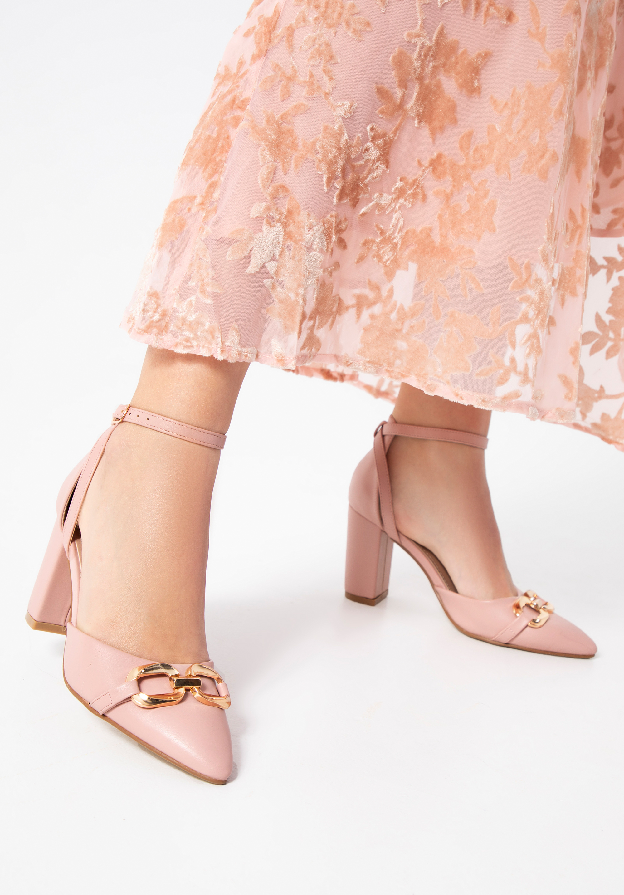 Це елегантне взуття додасть характеру багатьом стилям. Формальний, високий і досить стійкий каблук додасть вам кілька сантиметрів зросту. Загострений носок з декоративною широкою пряжкою зробить ногу стрункішою. Взуття застібається за допомогою пряжки, розміщеної на тонкому ремінці на щиколотці. Ви можете носити їх щодня на роботу в поєднанні з жіночним костюмом або доповнити коктейльну сукню для вишуканих випадків. Жіночі туфлі-човники з пряжкою на каблуці - це позачасовий аксесуар, який можна носити багато сезонів.