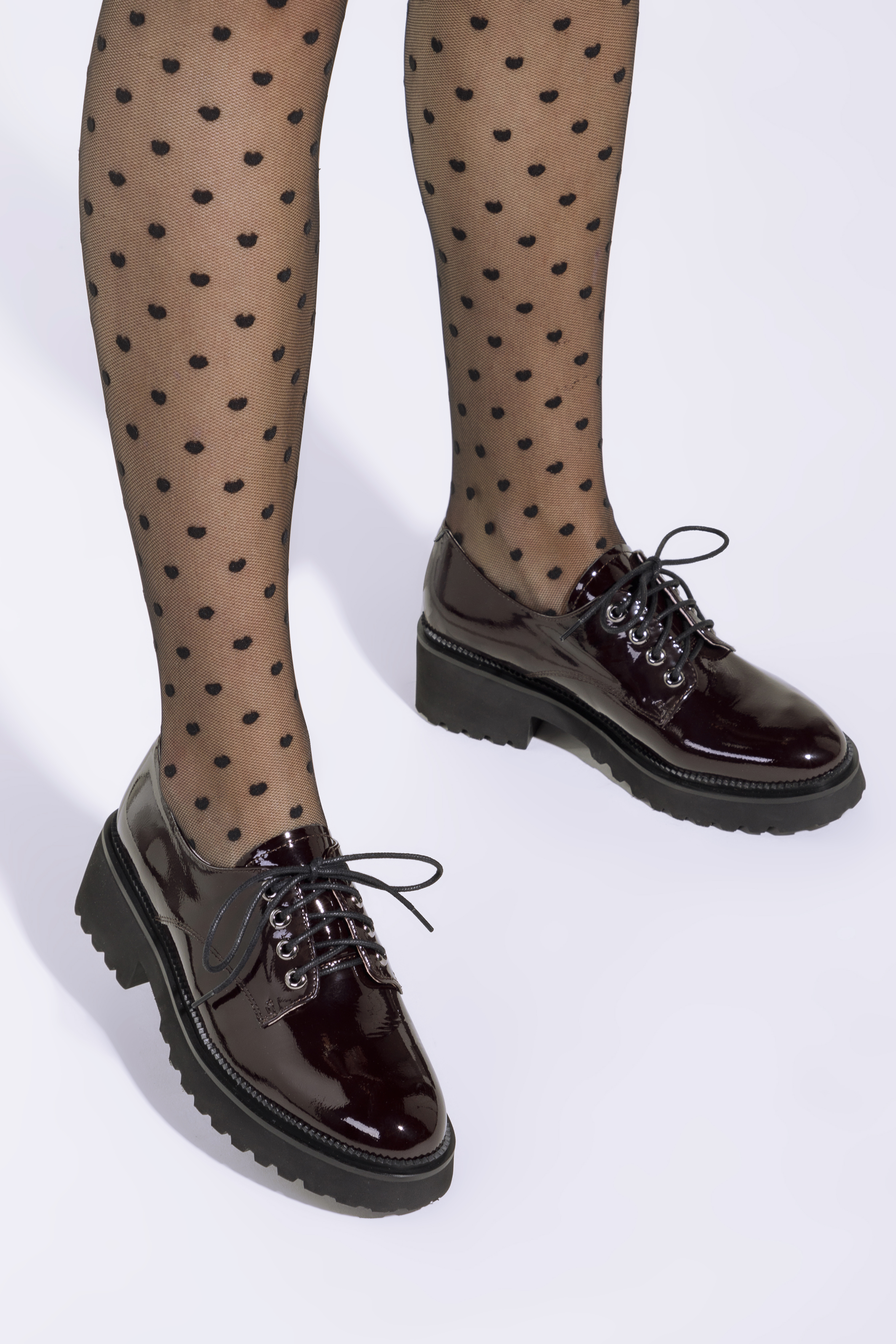 У цьому елегантному взутті можна ходити на роботу і після роботи. Лакова шкіра додає їм стилю, а шкіряна устілка з підкладкою подбає про комфорт ваших ніг. Вони мають товстий каблук і рифлену платформу, тому в них можна комфортно ходити навіть цілий день. Носіть їх з улюбленою міні-сукнею або брюками - ви будете виглядати особливо в будь-якій ситуації. Жіночі туфлі на шнурівці з лакованої шкіри елегантно урізноманітнюють ваш повсякденний образ.