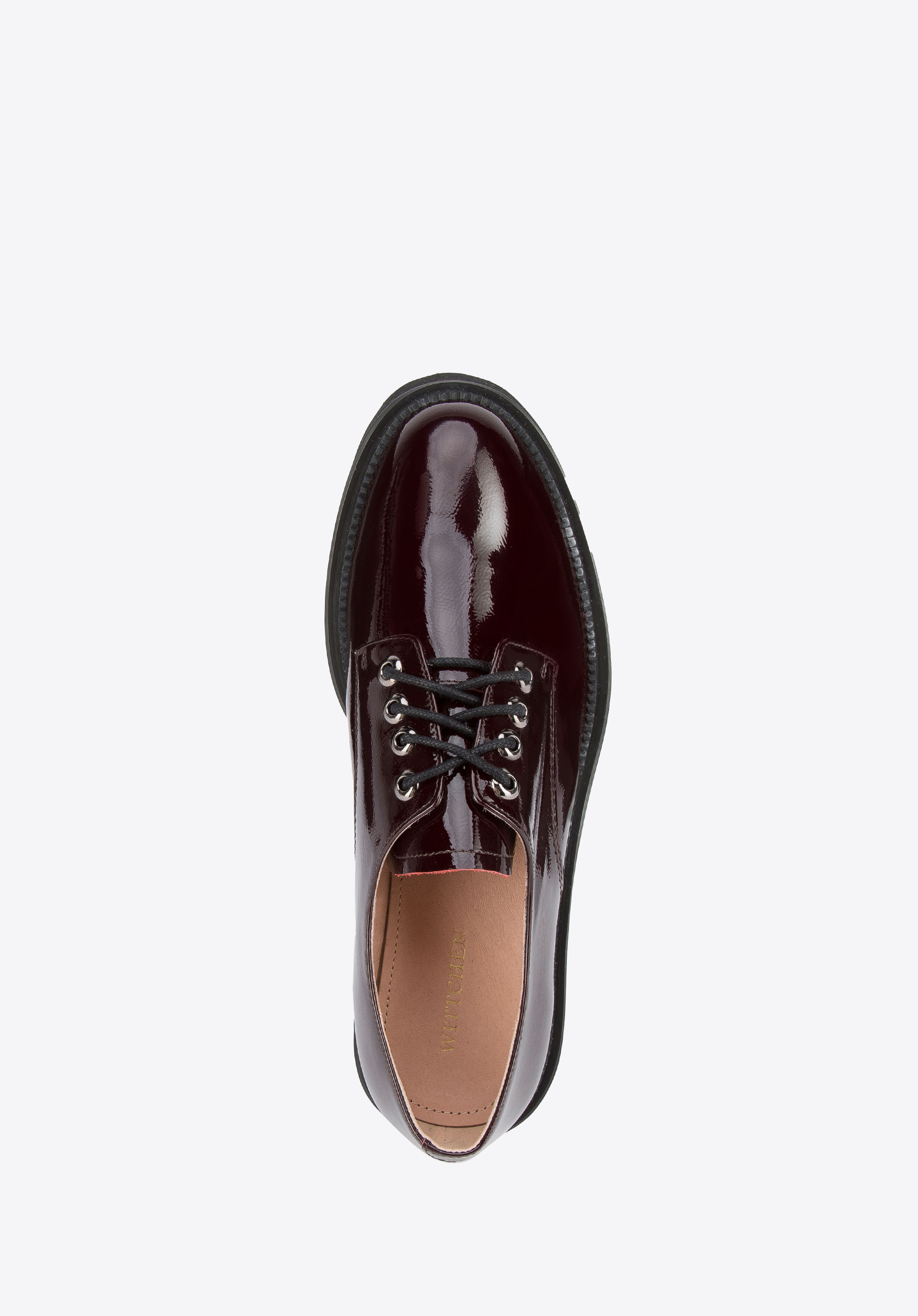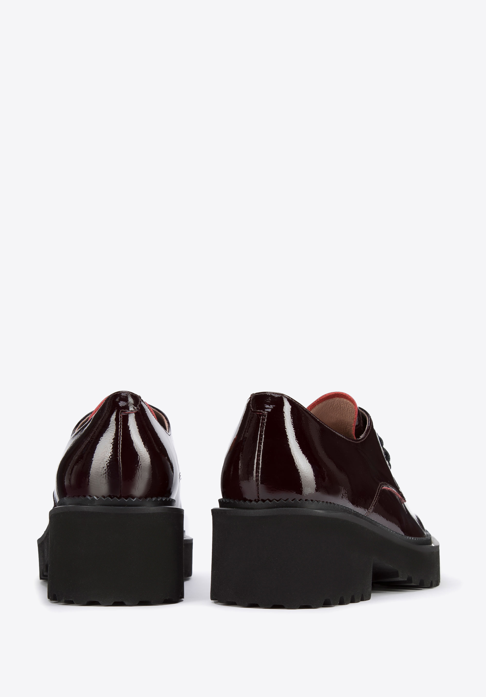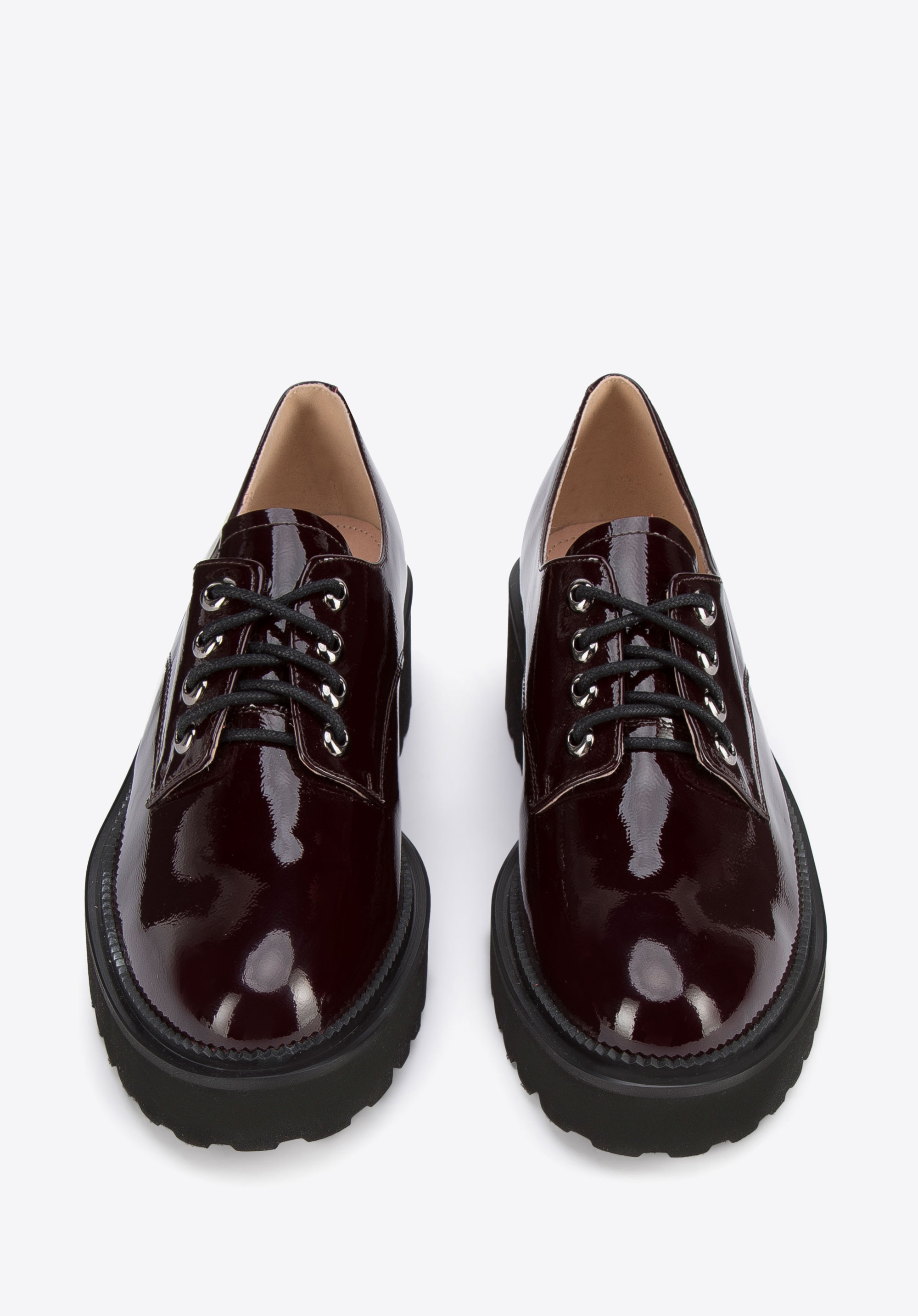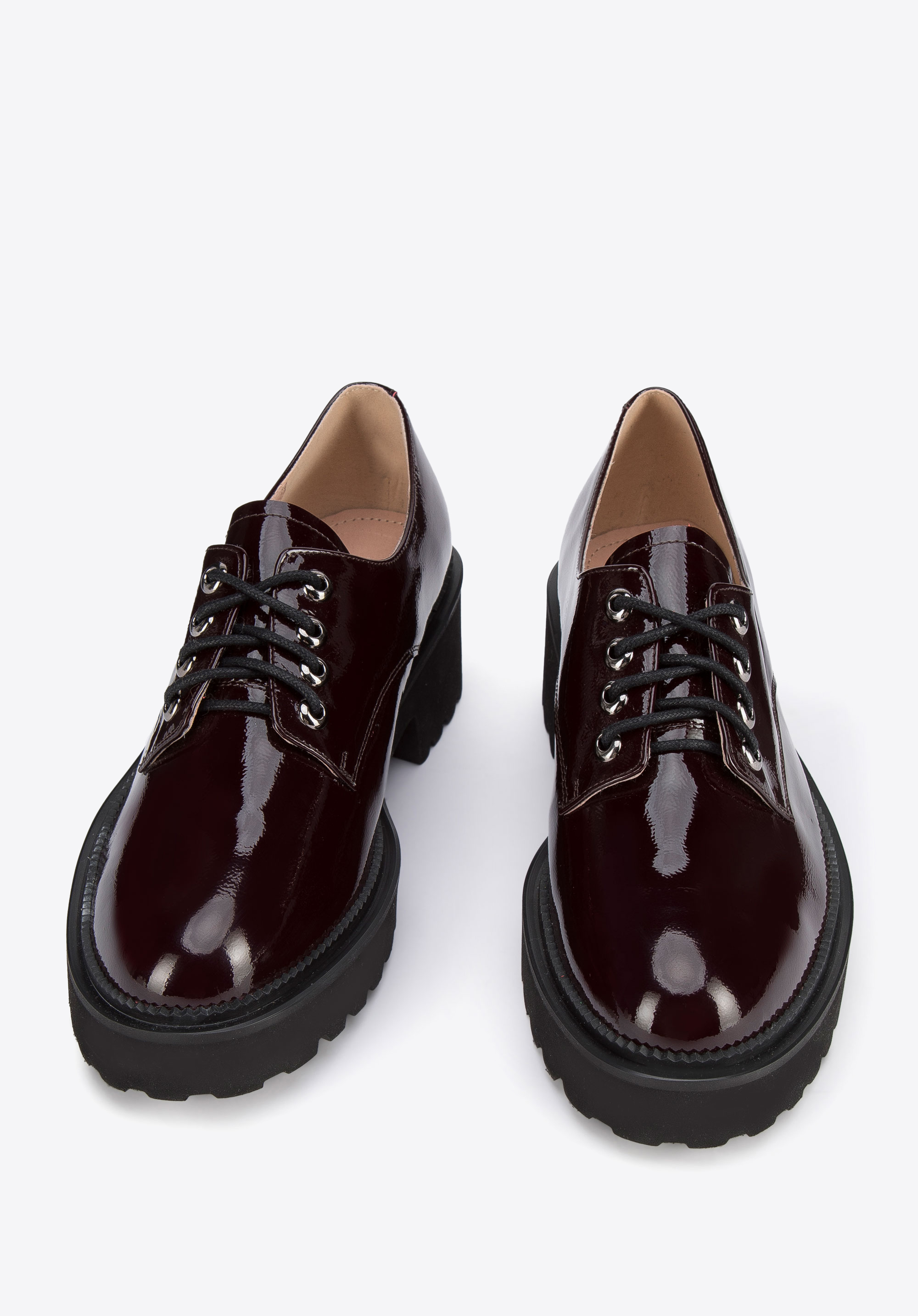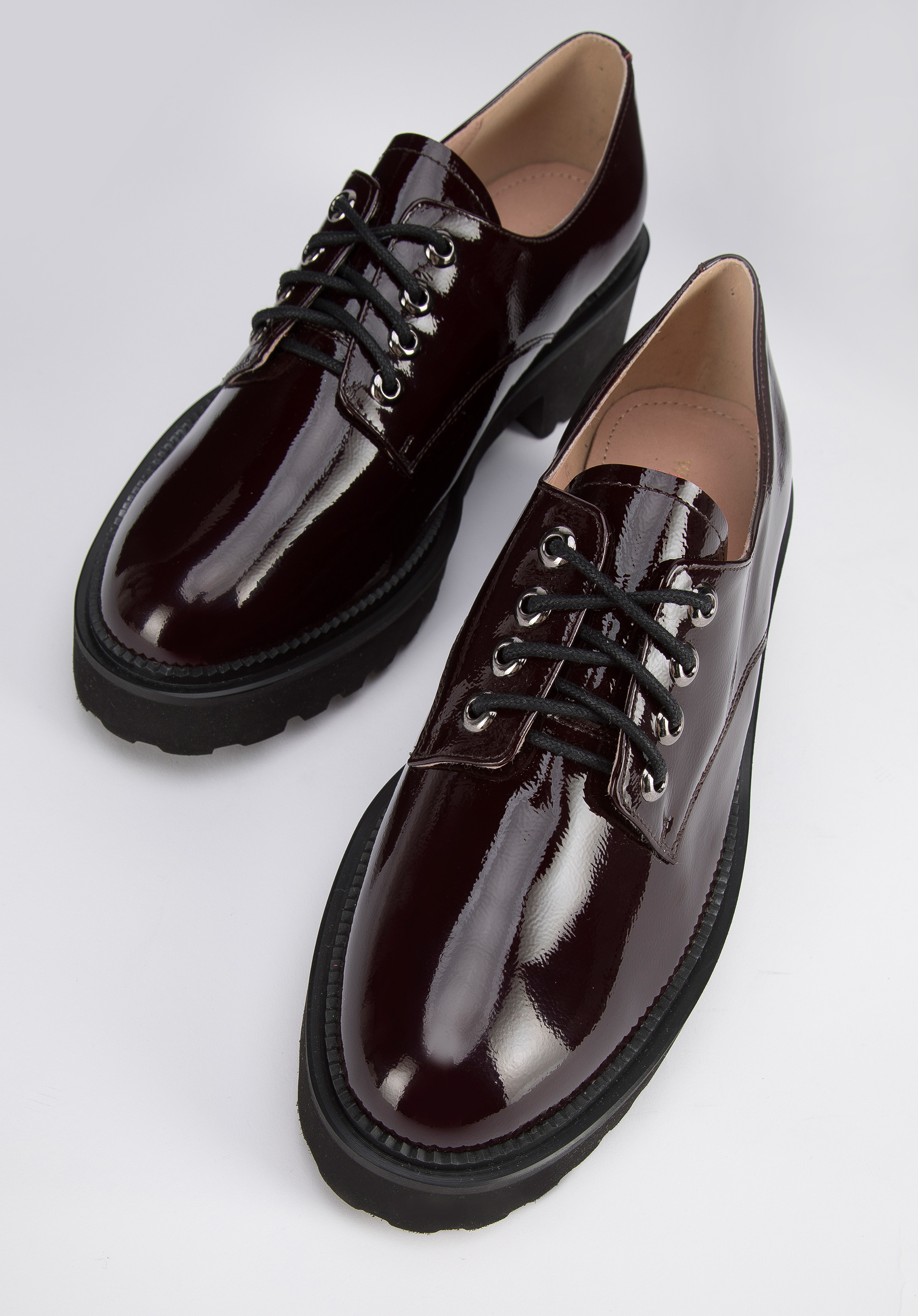 Жіночі туфлі на шнурівці з лакованої шкіри бордові