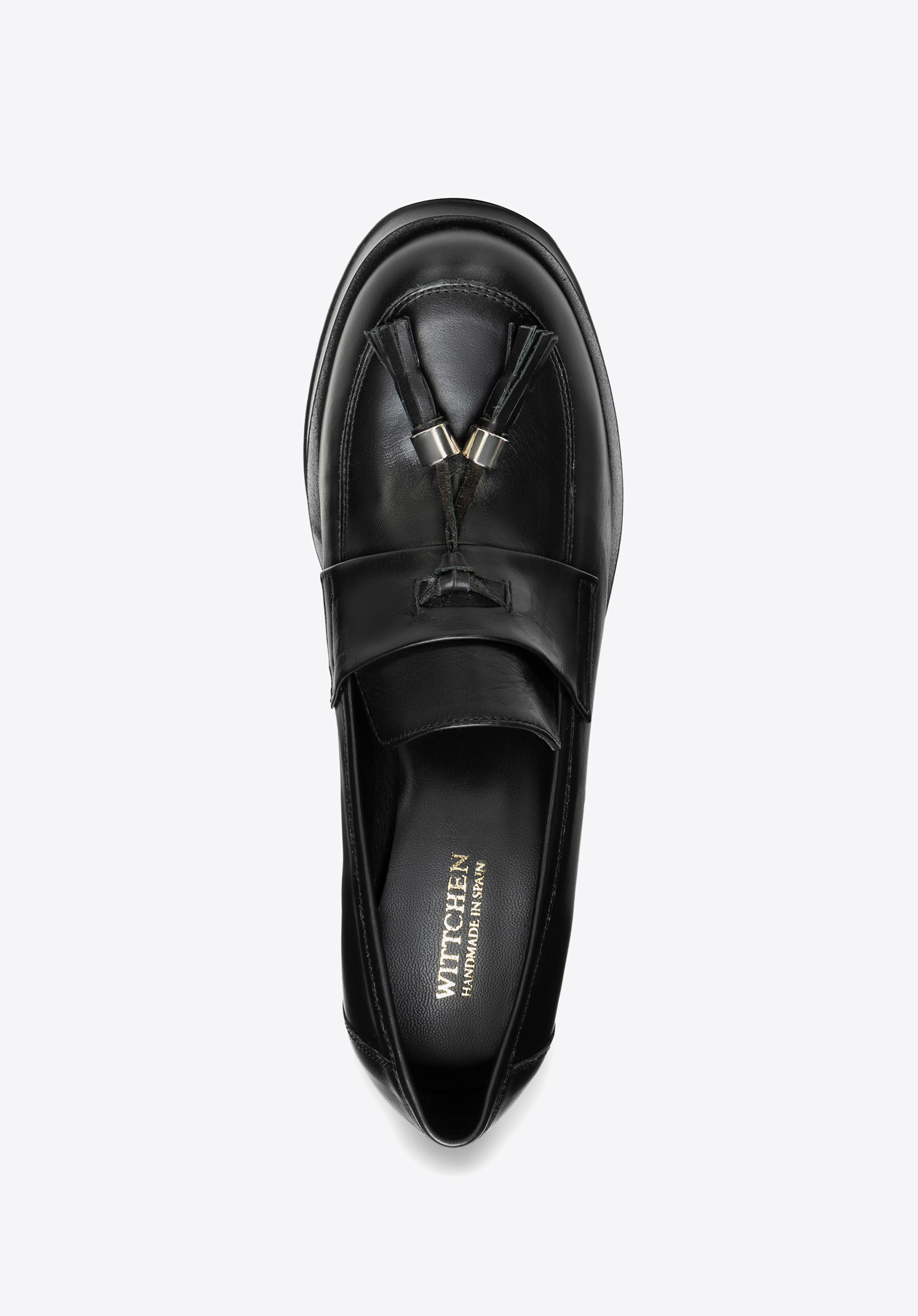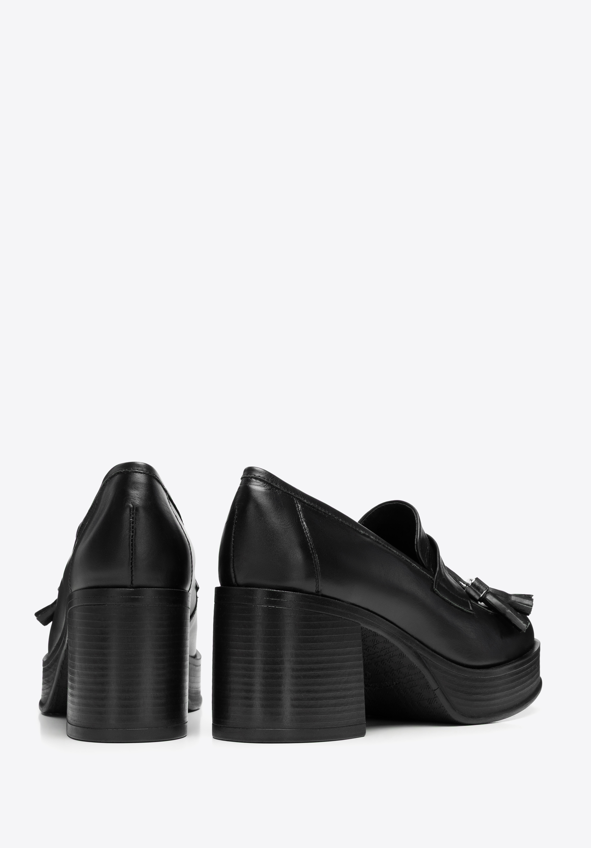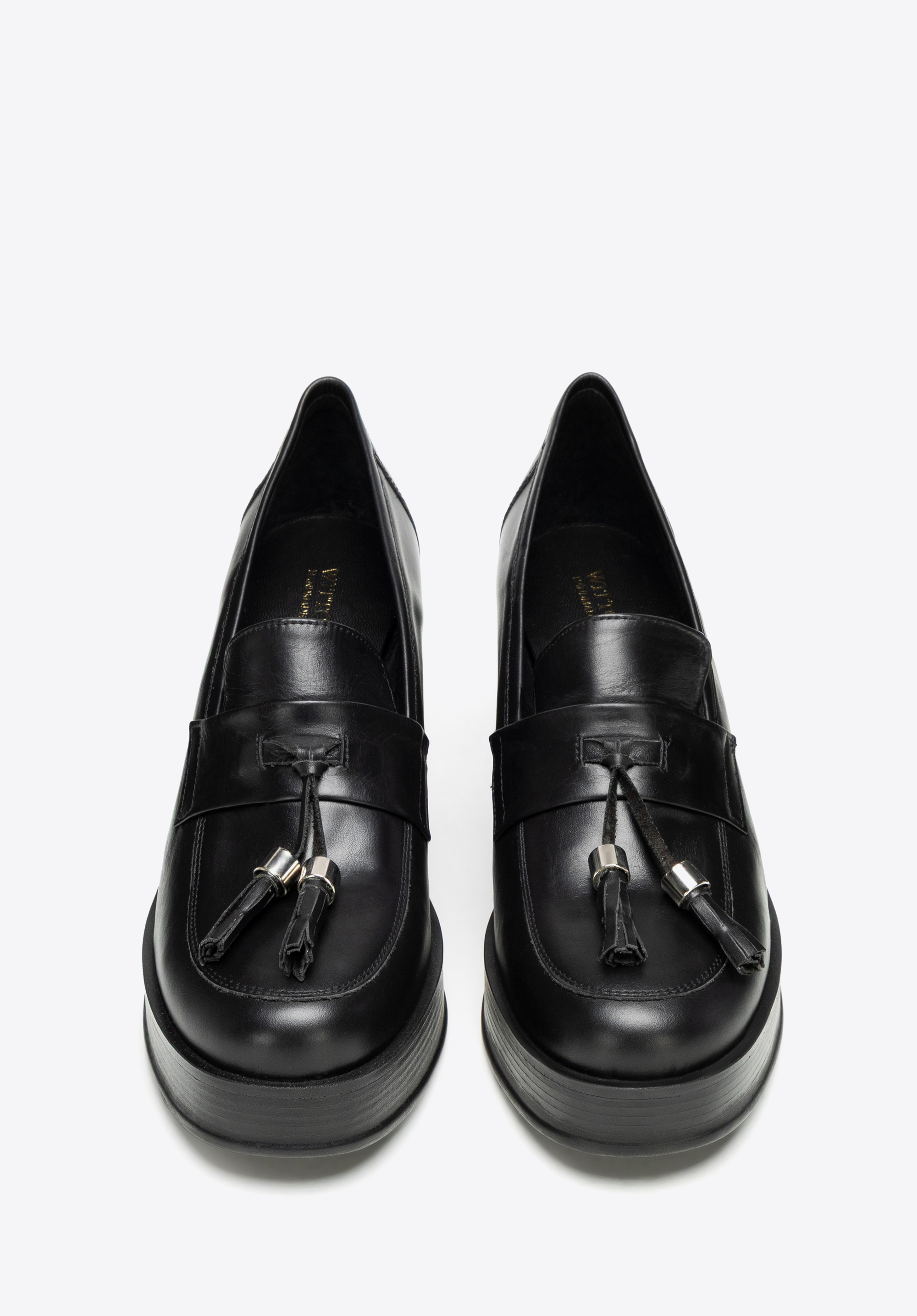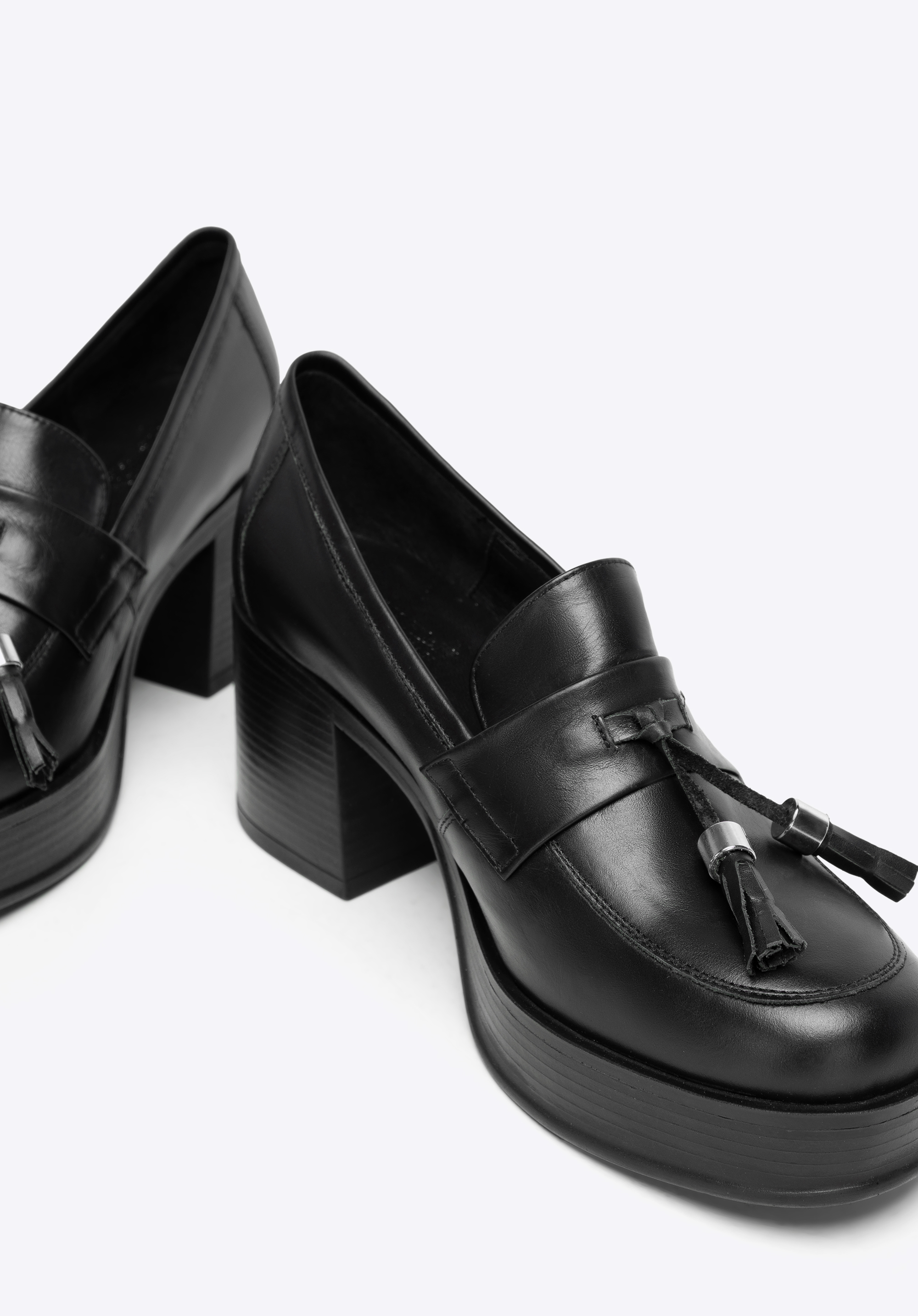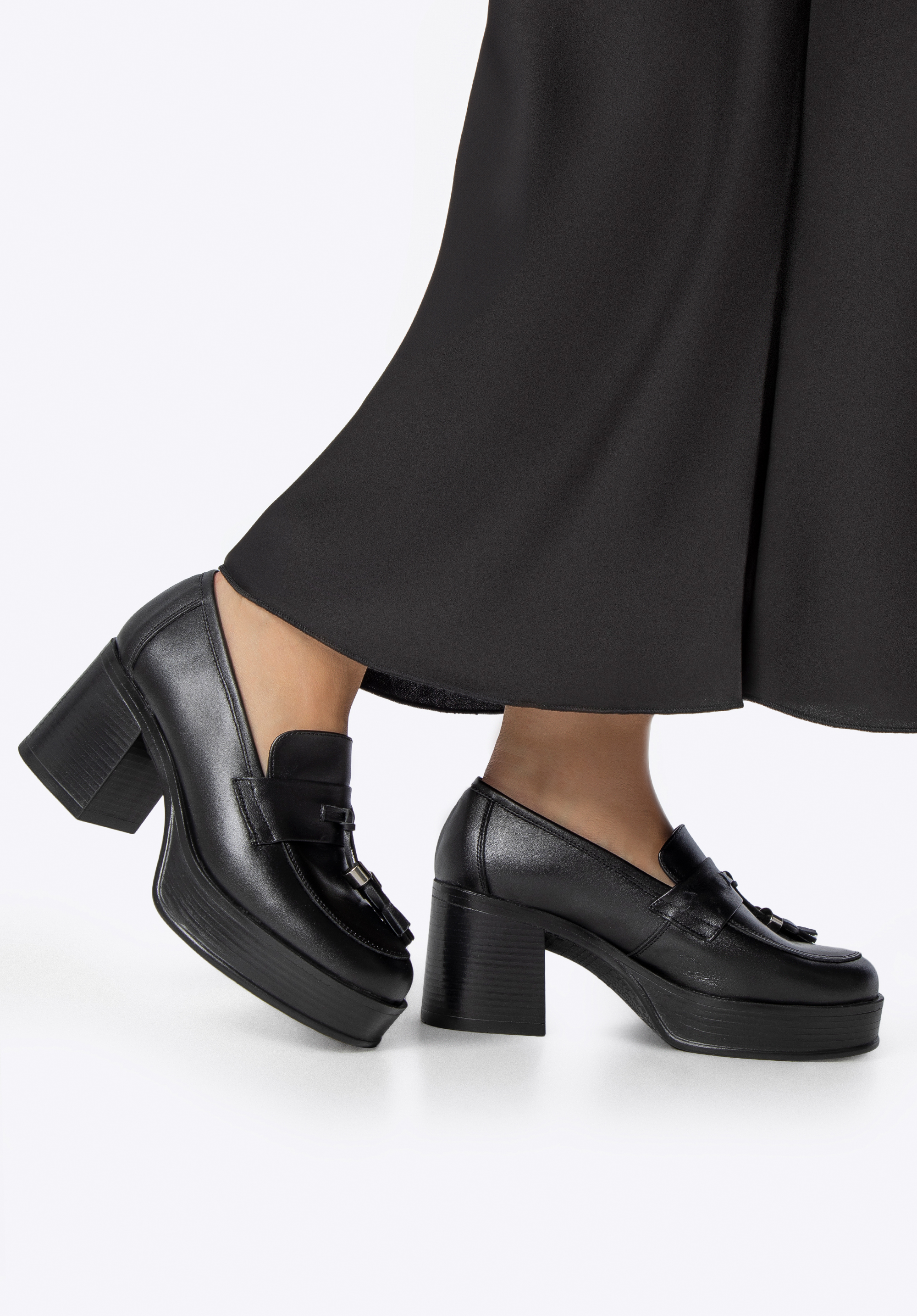 Жіночі туфлі з натуральної шкіри на каблуці чорні
