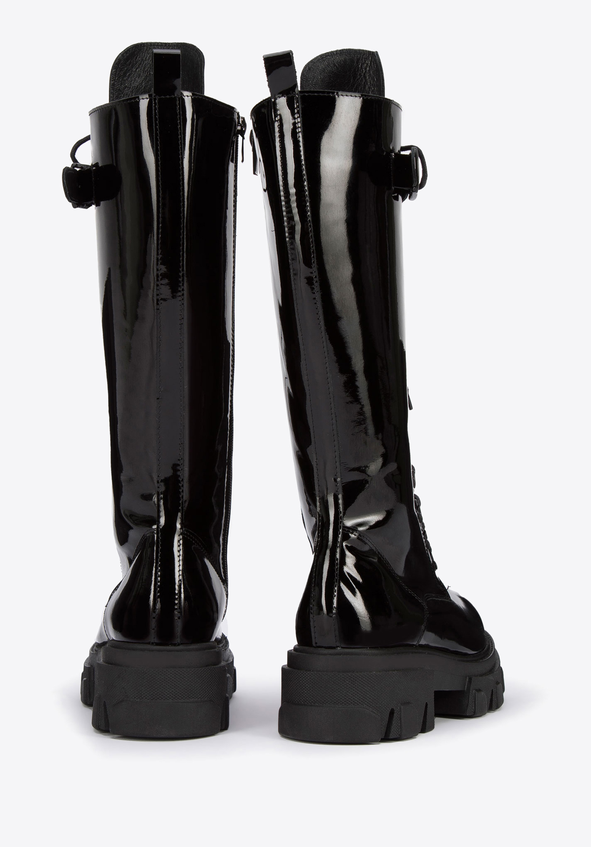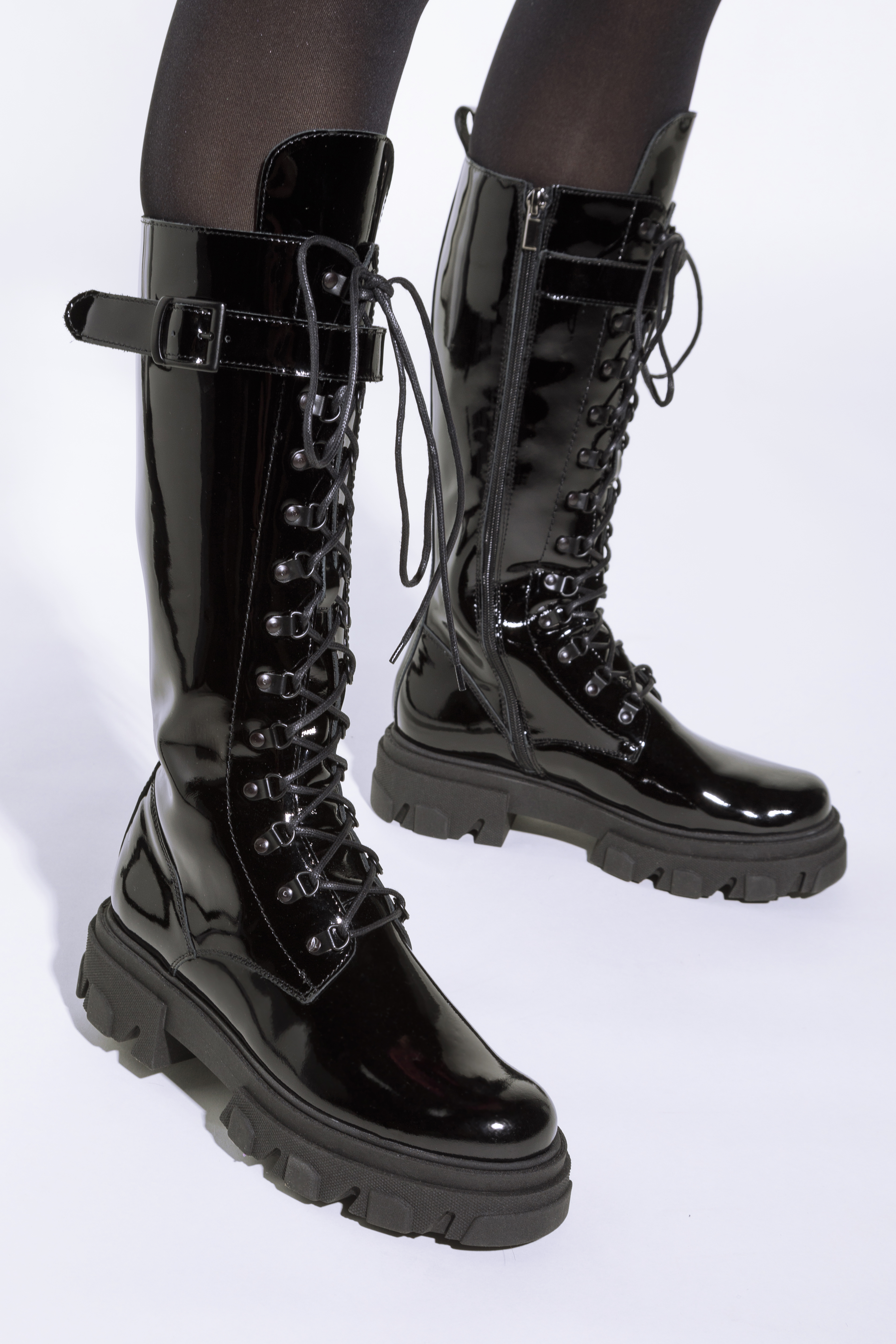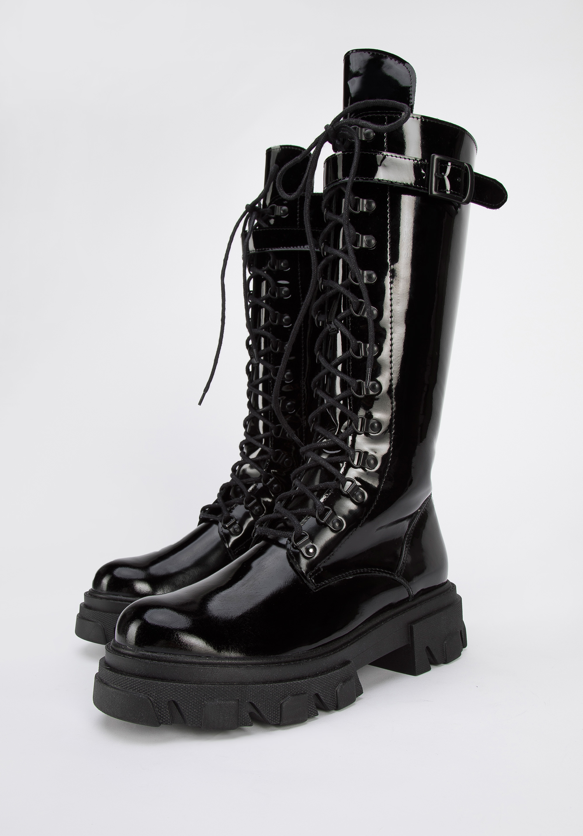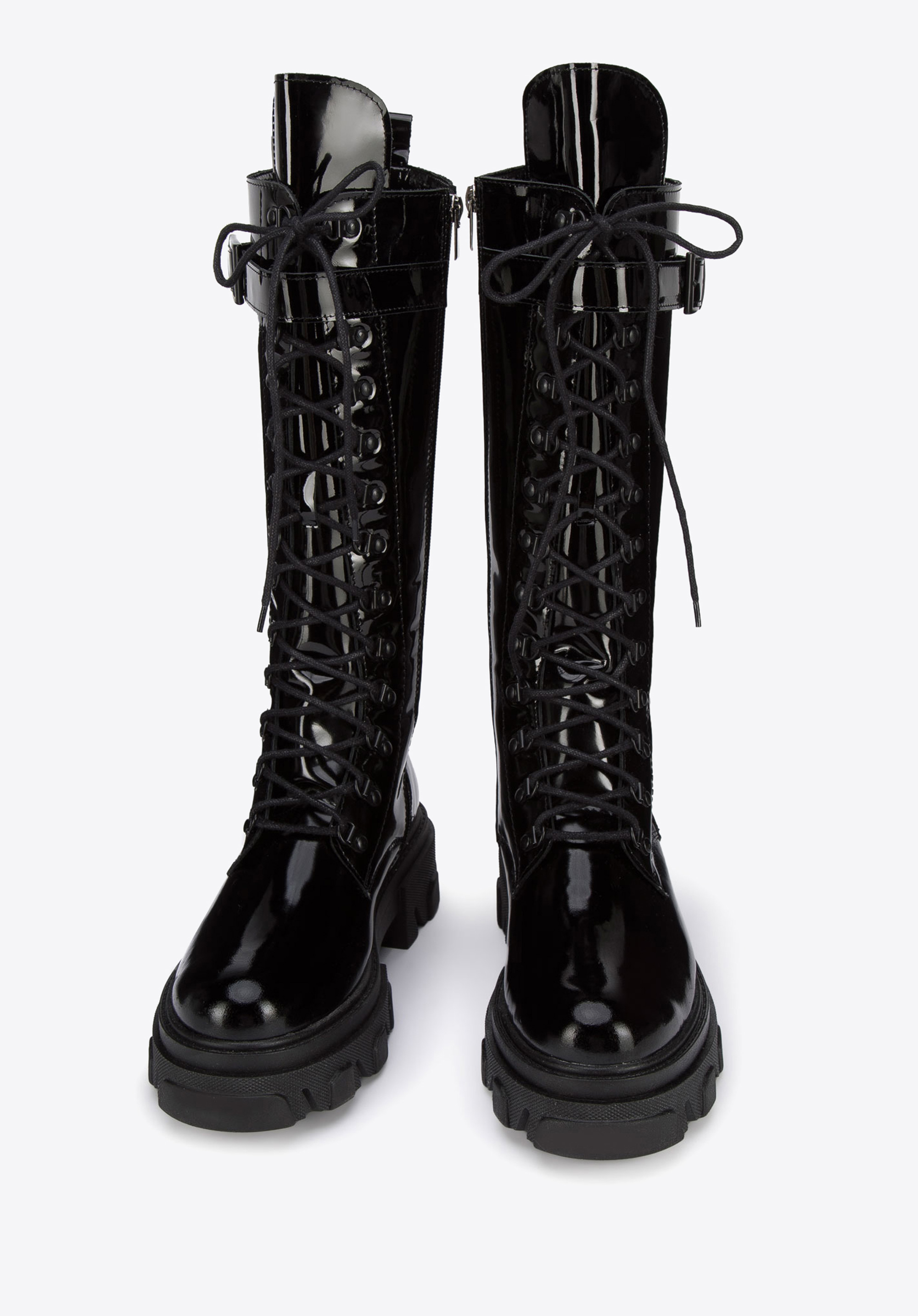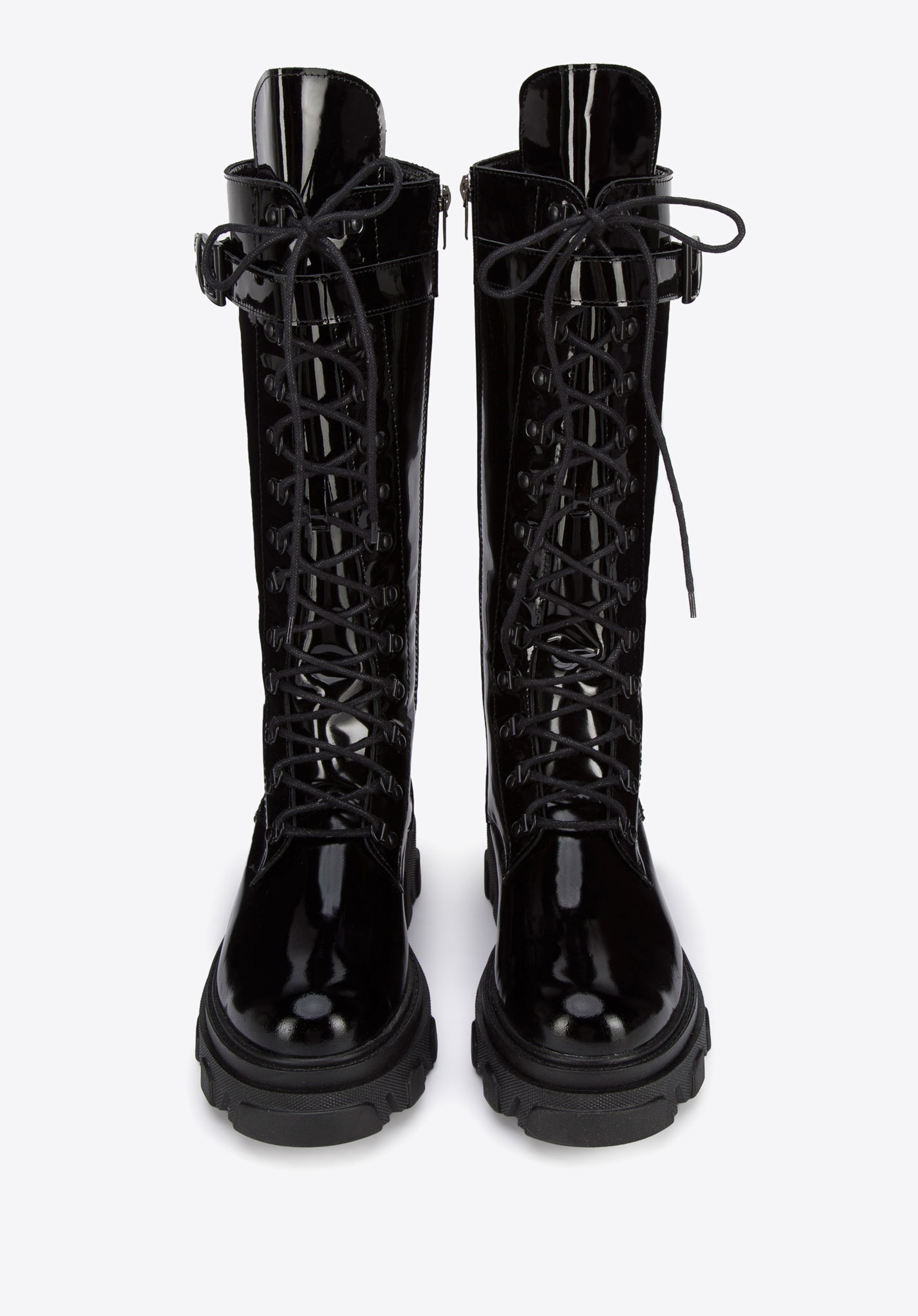 У цьому стильному взутті ви почуватиметеся особливою кожного дня. Вони мають високий шкіряний верх, а декоративна шнурівка додає їм характеру. Завдяки м''якій підкладці і підошві в них можна комфортно ходити практично весь день. Вони чудово виглядатимуть зі шкіряною міні-спідницею та сорочкою оверсайз, а поєднані з вузькими брюками та светром додадуть всьому нового стилю. Жіночі високі шкіряні чоботи на платформі - відмінний вибір для жінок, які люблять модні аксесуари.