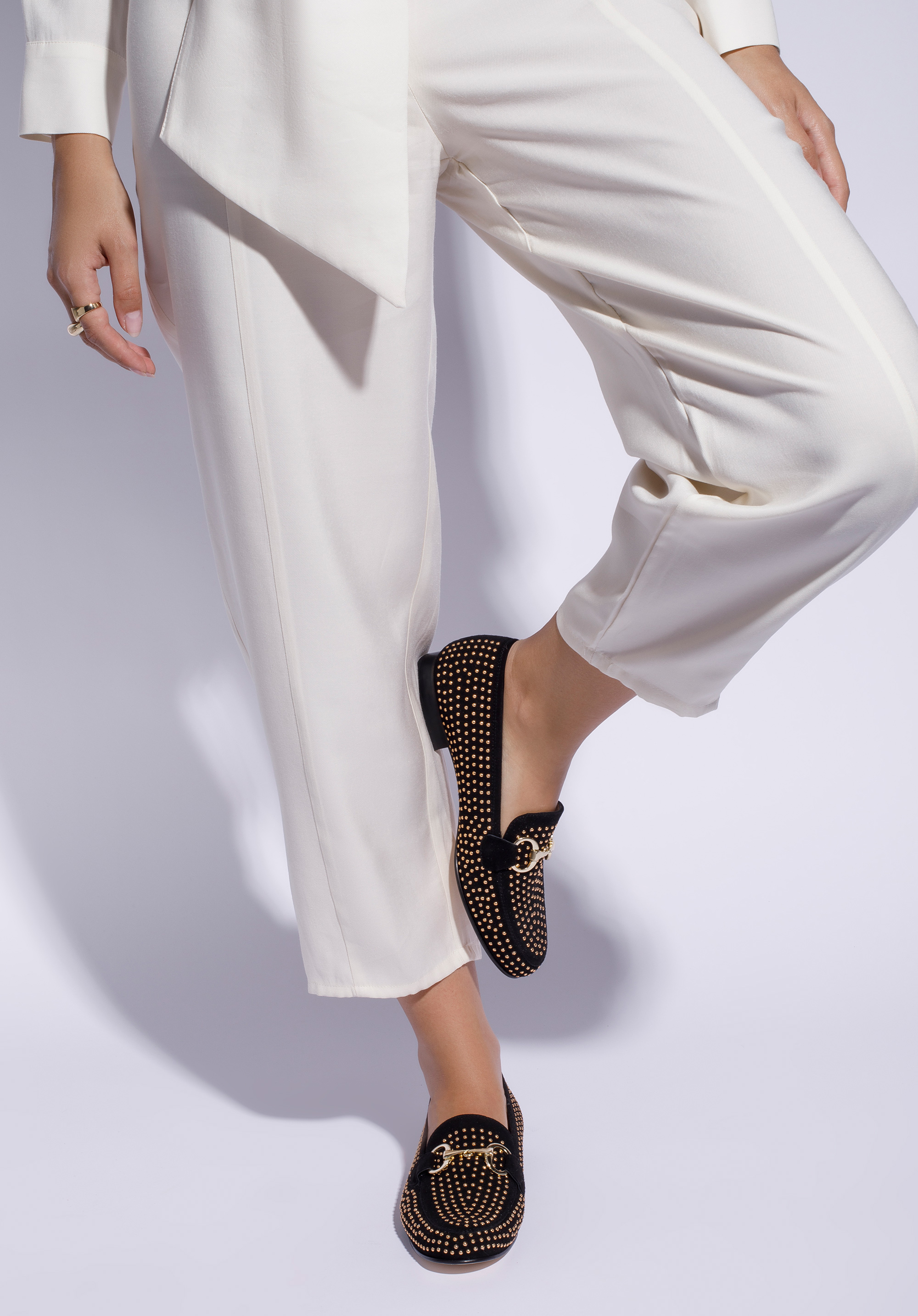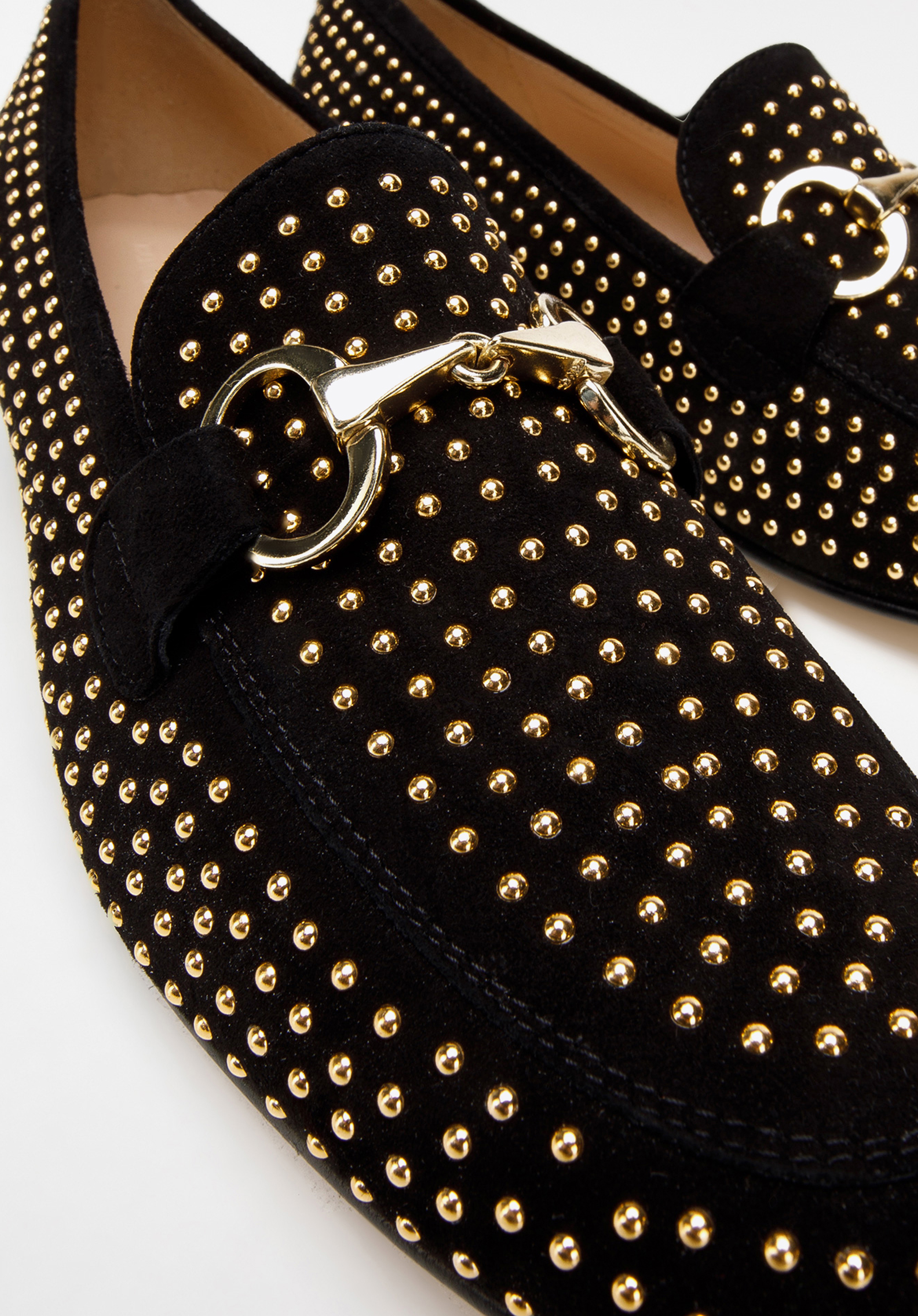 Ці привабливі жіночі туфлі порадують кожну шанувальницю моди. Вони виготовлені в Італії з натуральної замші найвищої якості. У них самий класичний фасон мокасин - з пряжкою, позначеним каблуком і обробленим носком. Унікальності їм додають оригінальні заклепки по всій поверхні, що створює враження візерунка з точками. Носити замшеві мокасини можна, наприклад, з вузькими брюками з відкритою щиколоткою або елегантними сукнями. Жіночі замшеві мокасини на заклепках – це вічний аксесуар, який поєднує класичний стиль з оригінальними прикрасами.