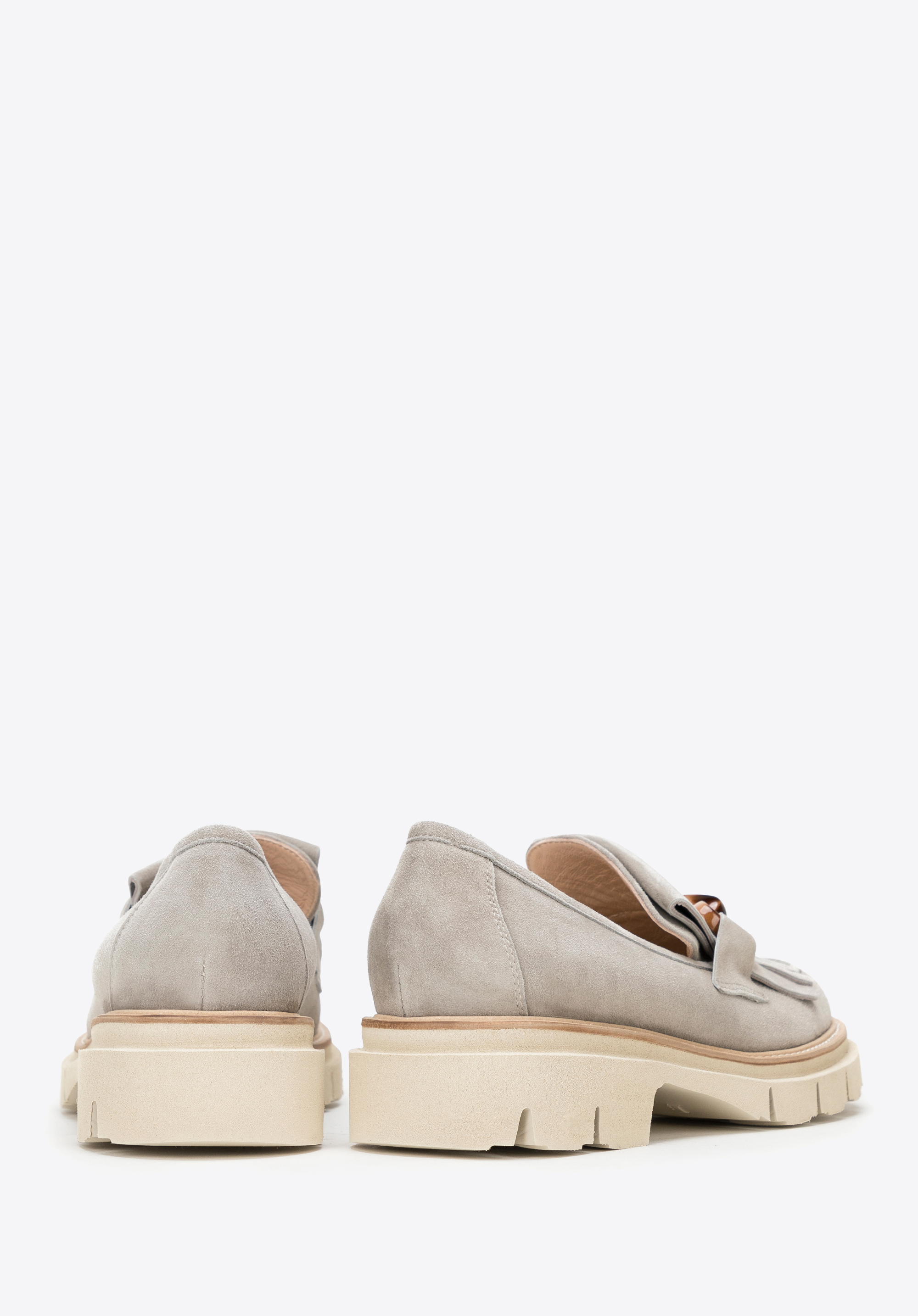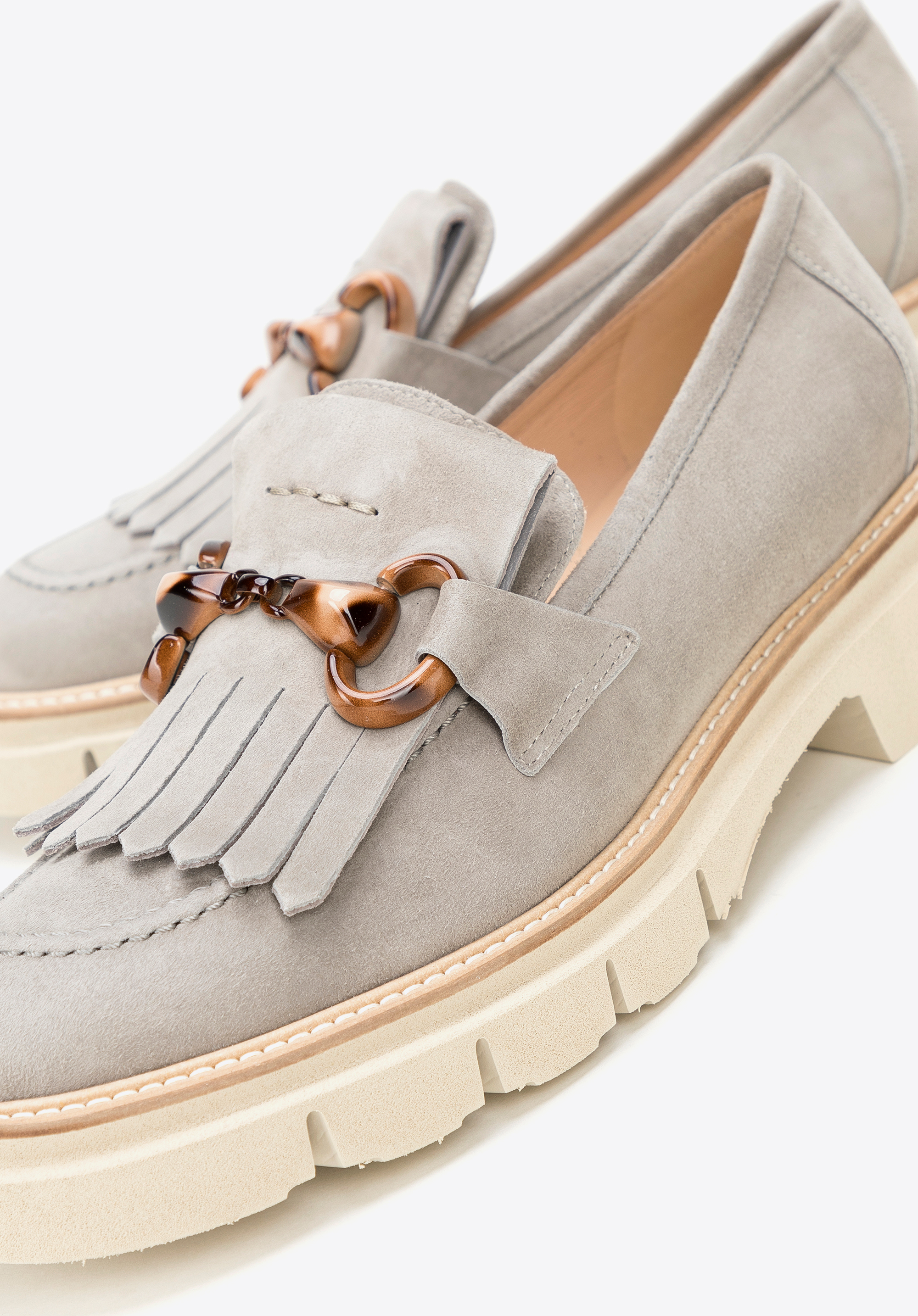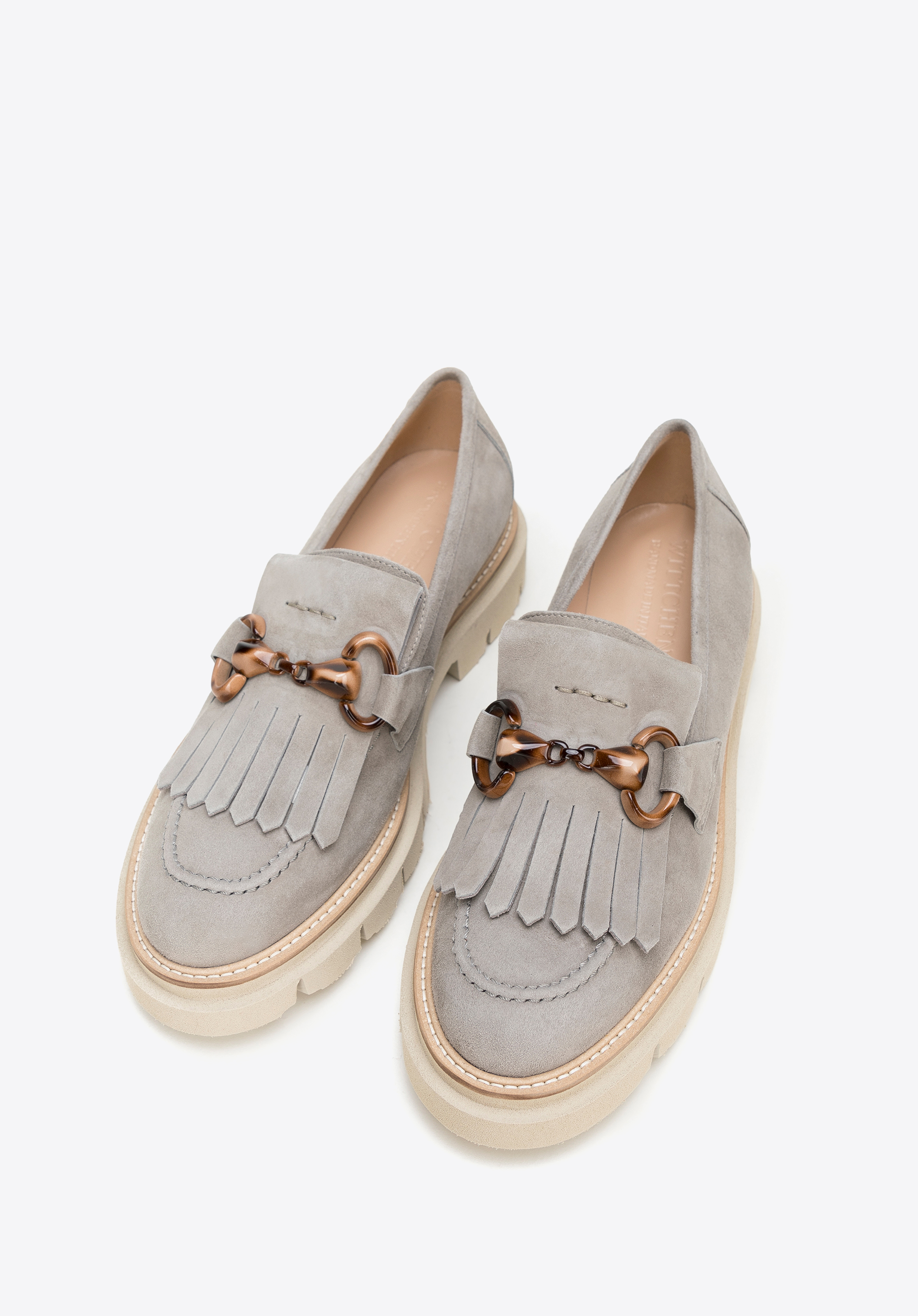 Жіночі замшеві мокасини з бахромою та пряжкою Колір: сірий