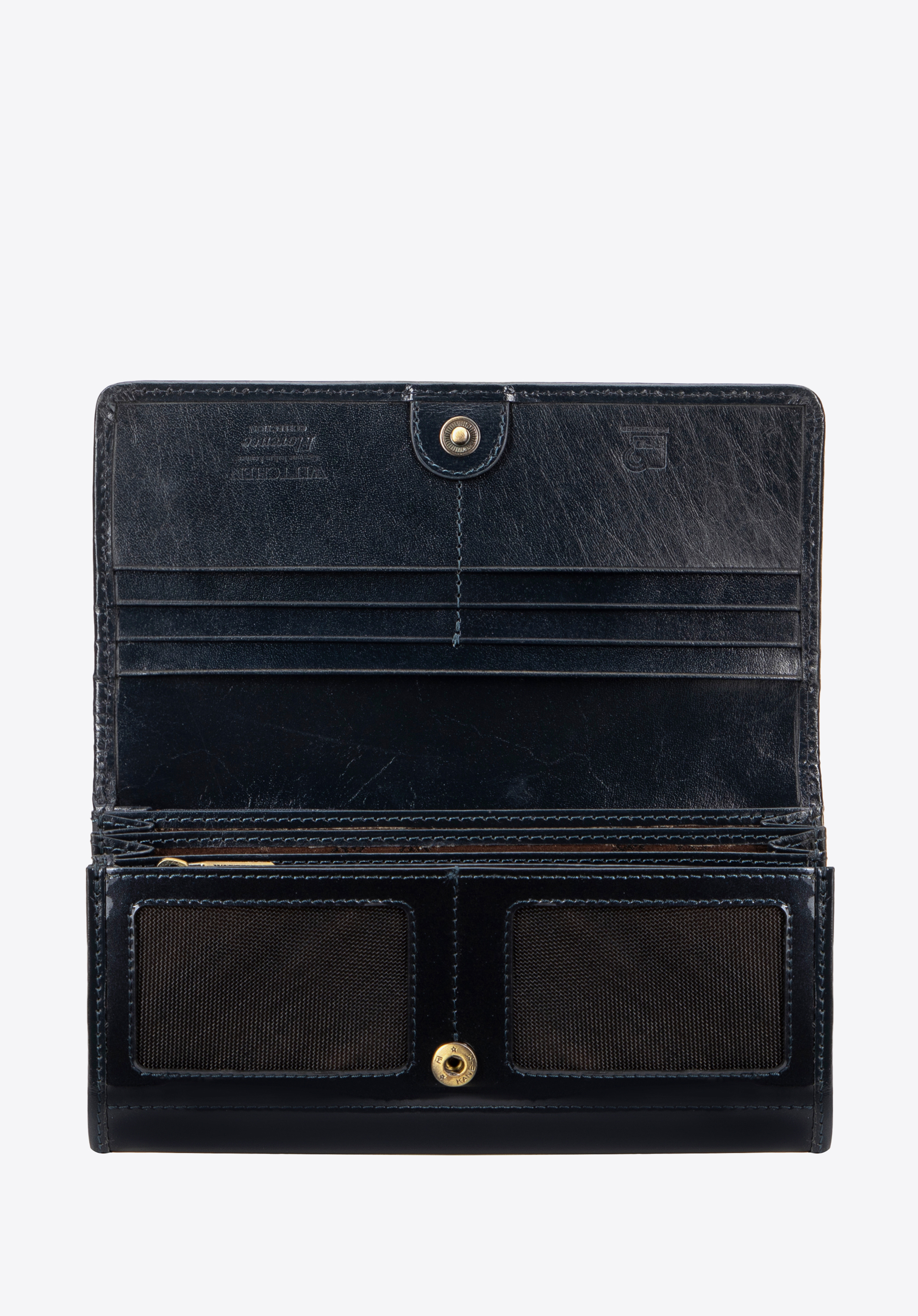 Елегантний і блискучий жіночий гаманець від WITTCHEN - ідеальний вибір для сучасної жінки, яка цінує стиль і функціональність. Виготовлений із високоякісної лакованої натуральної шкіри , цей гаманець виділяється своїм тонким блиском , що надає йому витонченого характеру. Крім того, він має інноваційну підкладку для блокування RFID , яка захищає ваші картки від несанкціонованого сканування для підвищення безпеки під час щоденного використання.