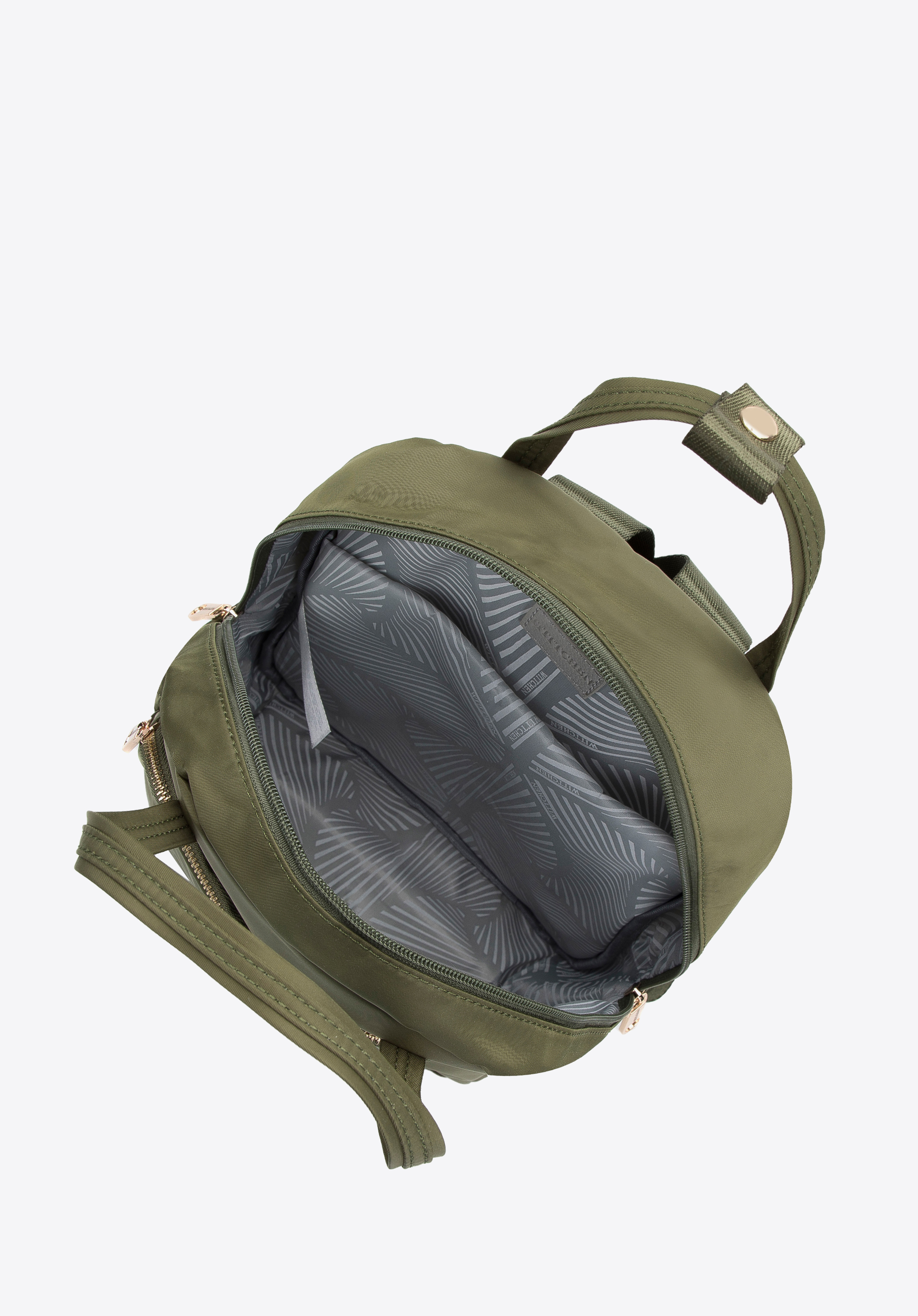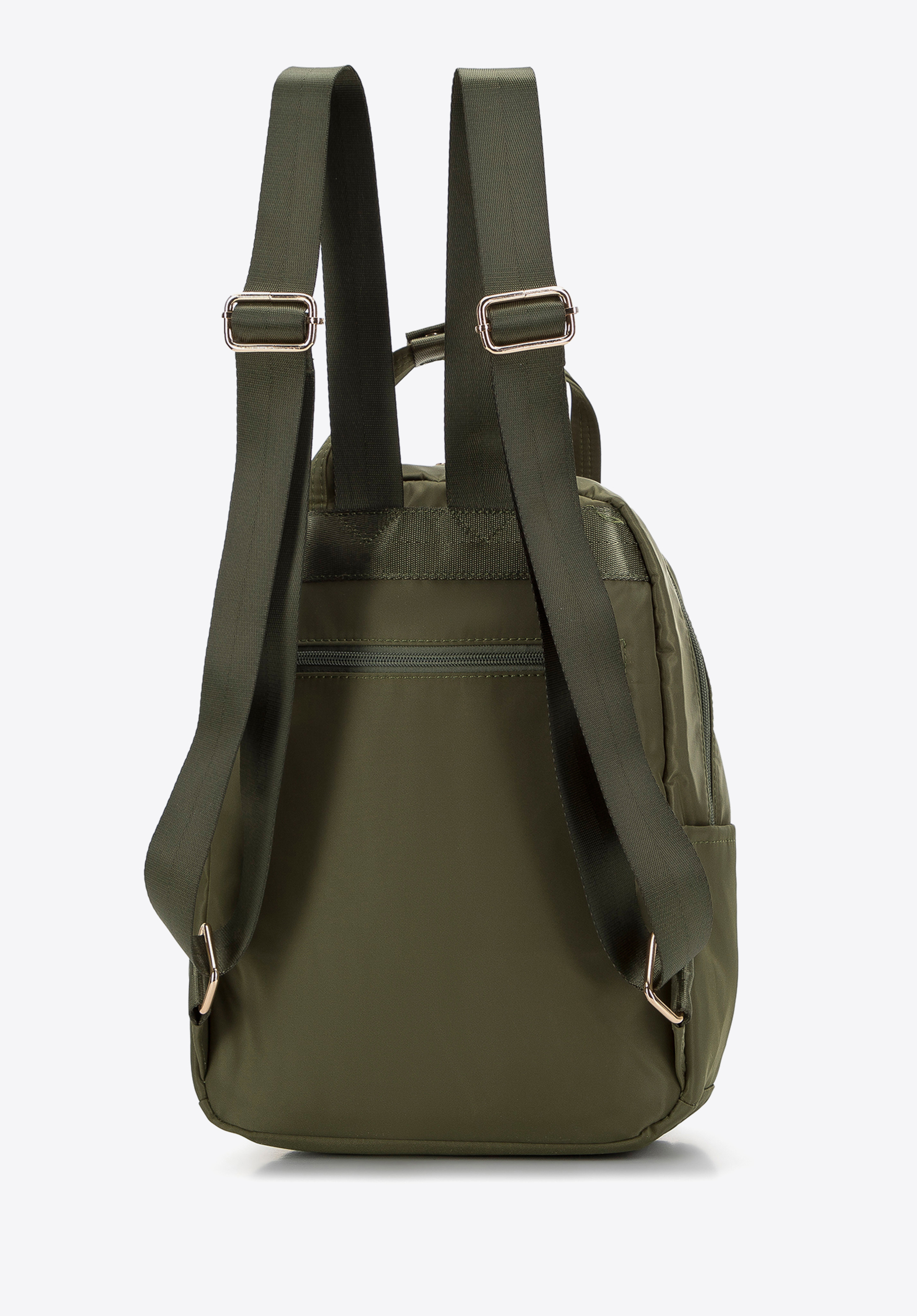 Цей жіночий рюкзак - оригінальний аксесуар, який можна носити багато сезонів. Він виготовлений з блискучого нейлону, який досить міцний і легкий. Він має класичний прямокутний крій і довгі зручні ручки, які надають йому стиль. Рюкзак невеликий і досить місткий: в нього можна помістити документи формату А4, маленьку пляшечку води, снеки, гаманець, блокнот - ідеальний варіант для пікніка, університету або прогулянки. У задній кишені можна сховати дрібні предмети та безпечно їх зберігати. Жіночий нейлоновий рюкзак з довгими ручками стане чудовим доповненням як спортивного, так і жіночого стилю.