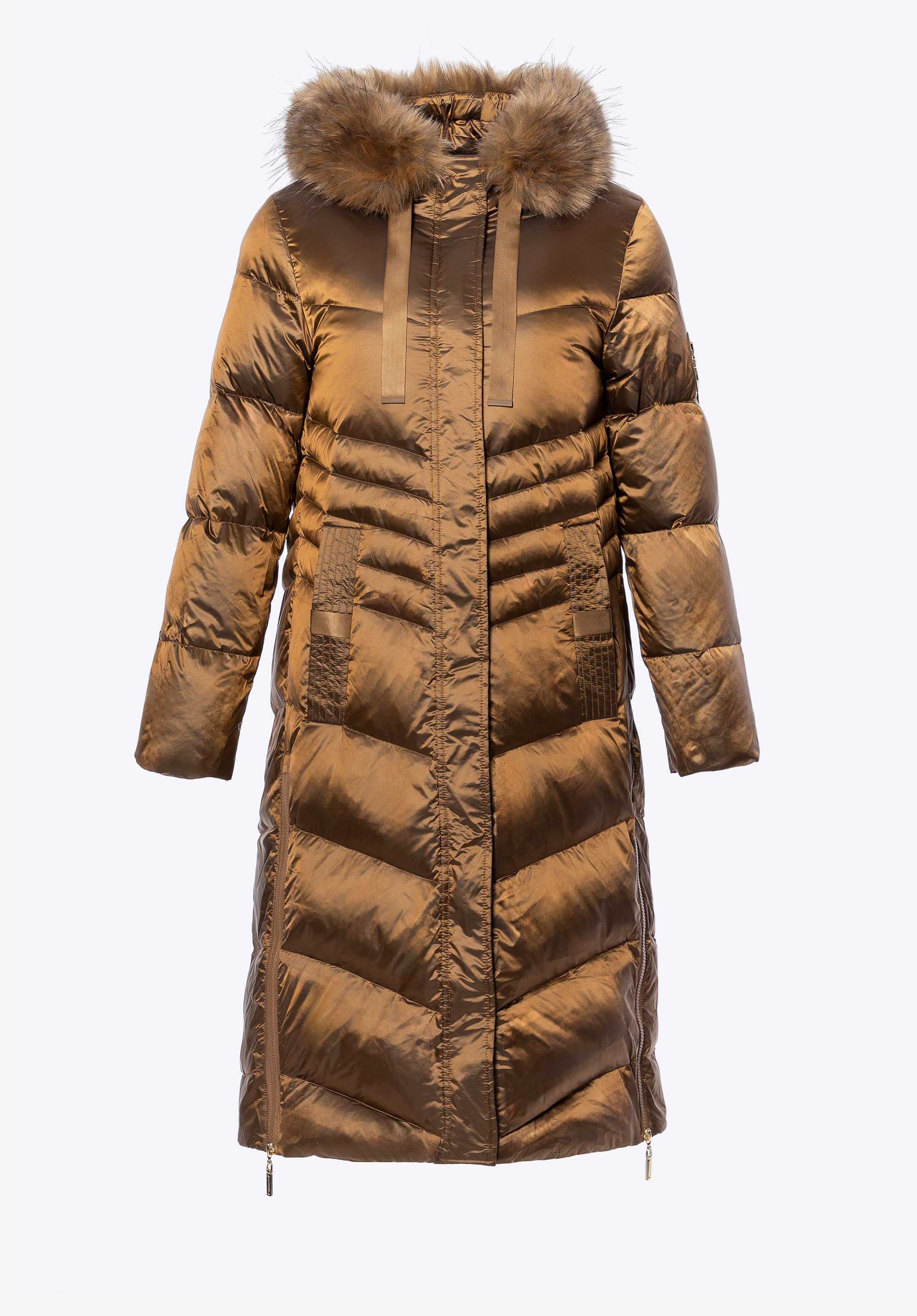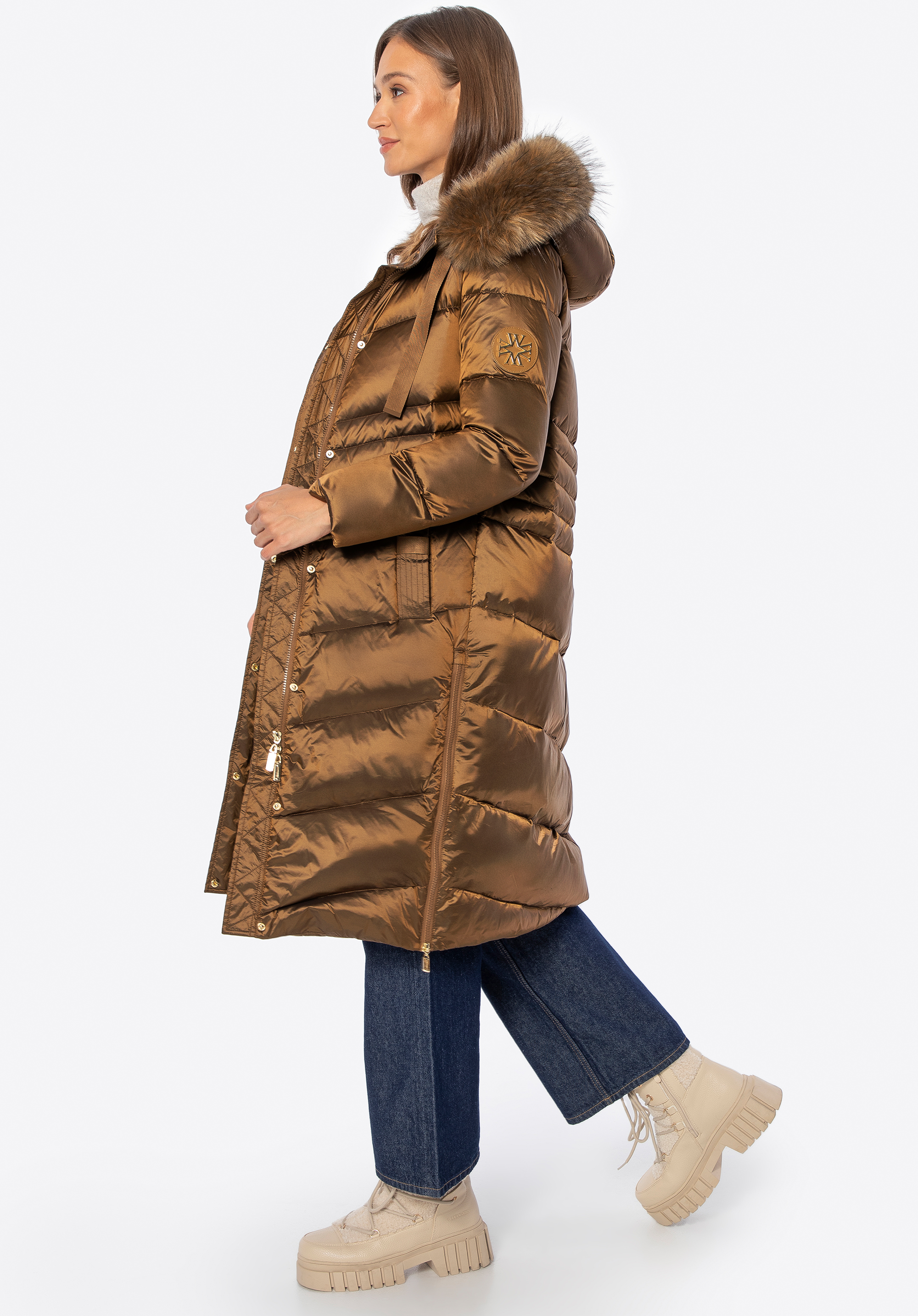 Це жіноче пальто є синонімом елегантності та функціональності в холодні дні. Створене для жінок, які не хочуть відмовлятися від комфорту на користь стилю, воно пропонує ідеальне поєднання природного тепла, стійкості до атмосферних умов та позачасового дизайну. Зовнішній матеріал з нейлону ефективно захищає від вітру, а натуральне наповнення з пуху та пір''я забезпечує виняткову теплоізоляцію, зберігаючи легкість. Завдяки цьому пальто надзвичайно зручне – ідеальне як для повсякденного носіння, так і для більш елегантних образів.