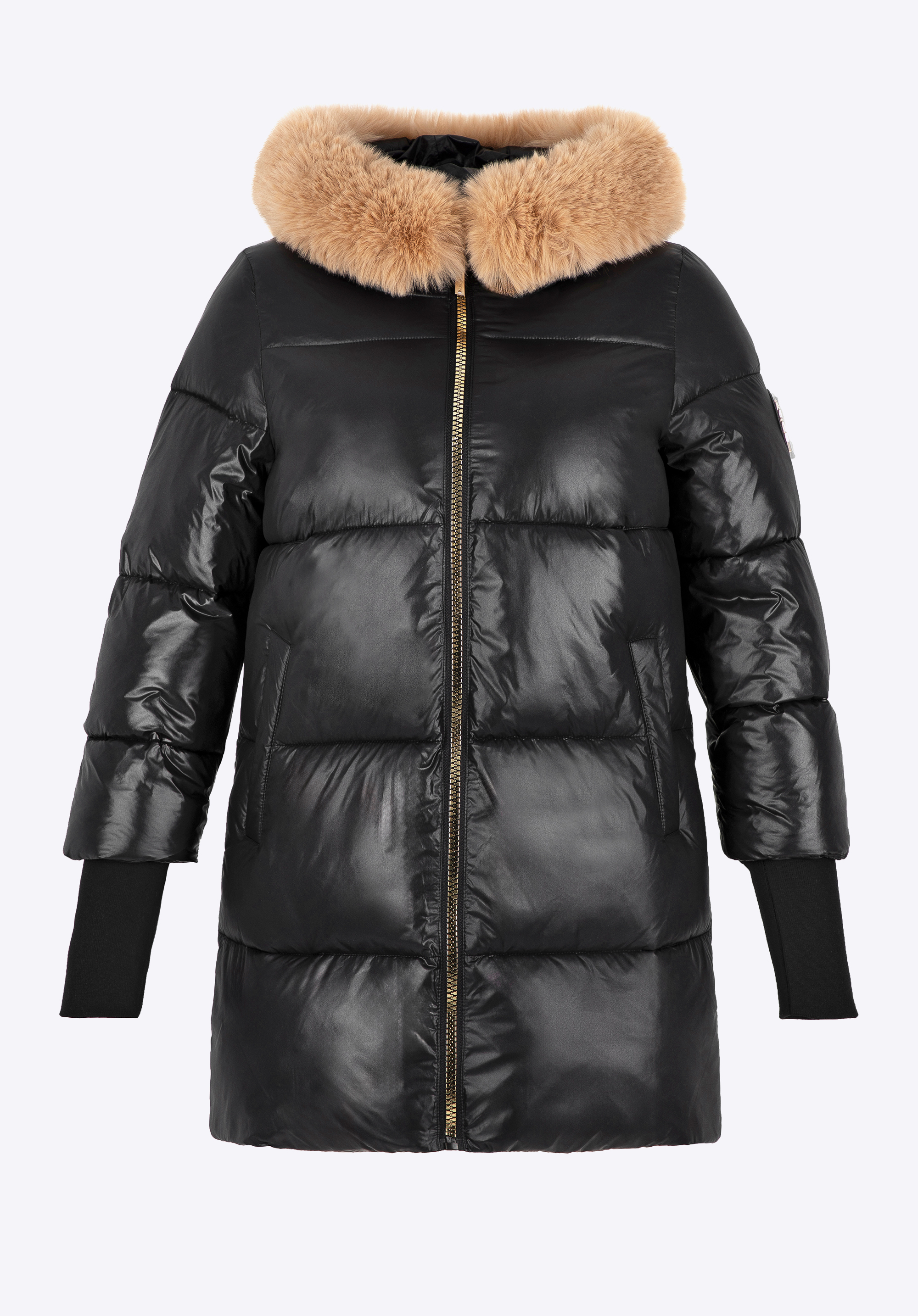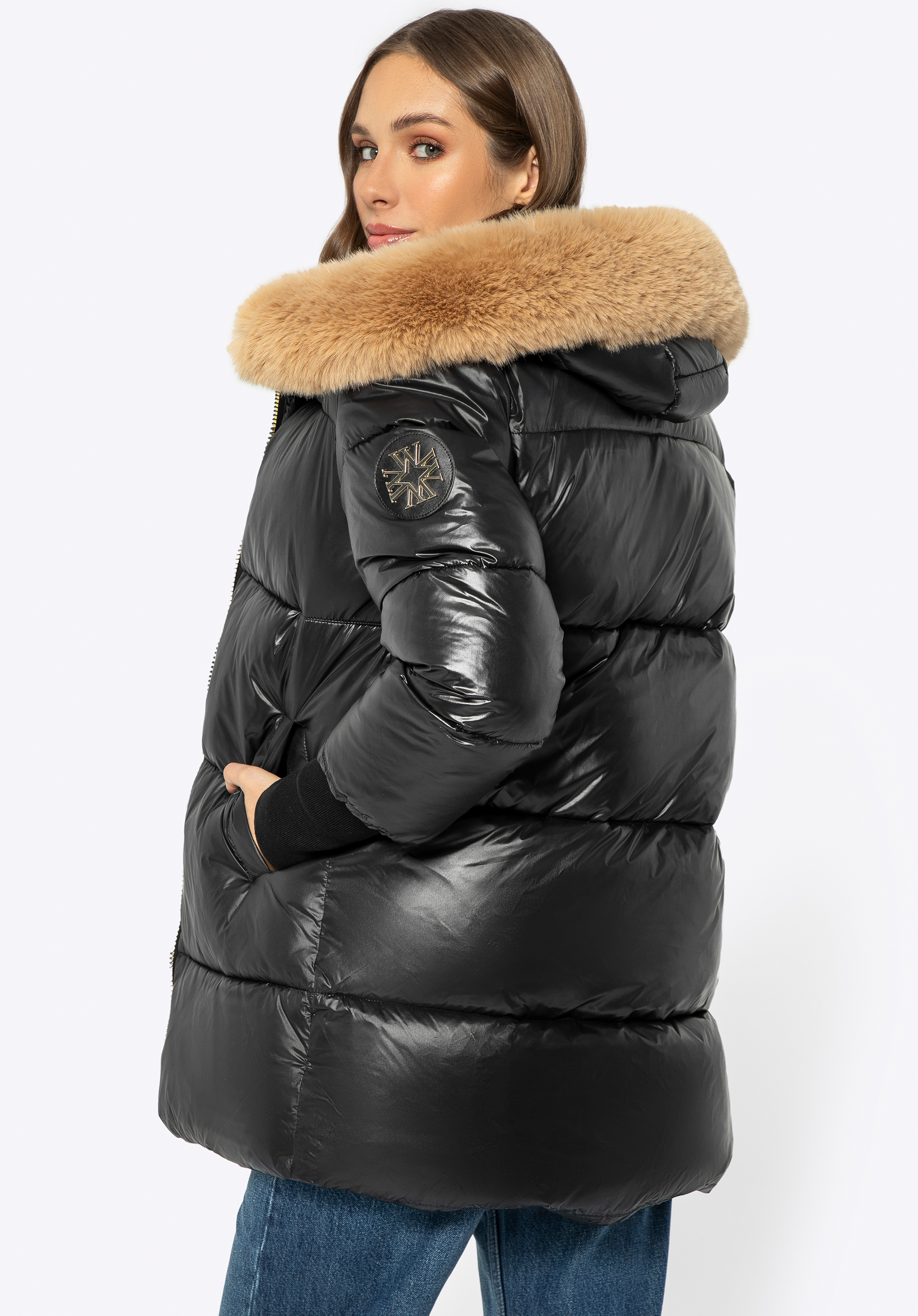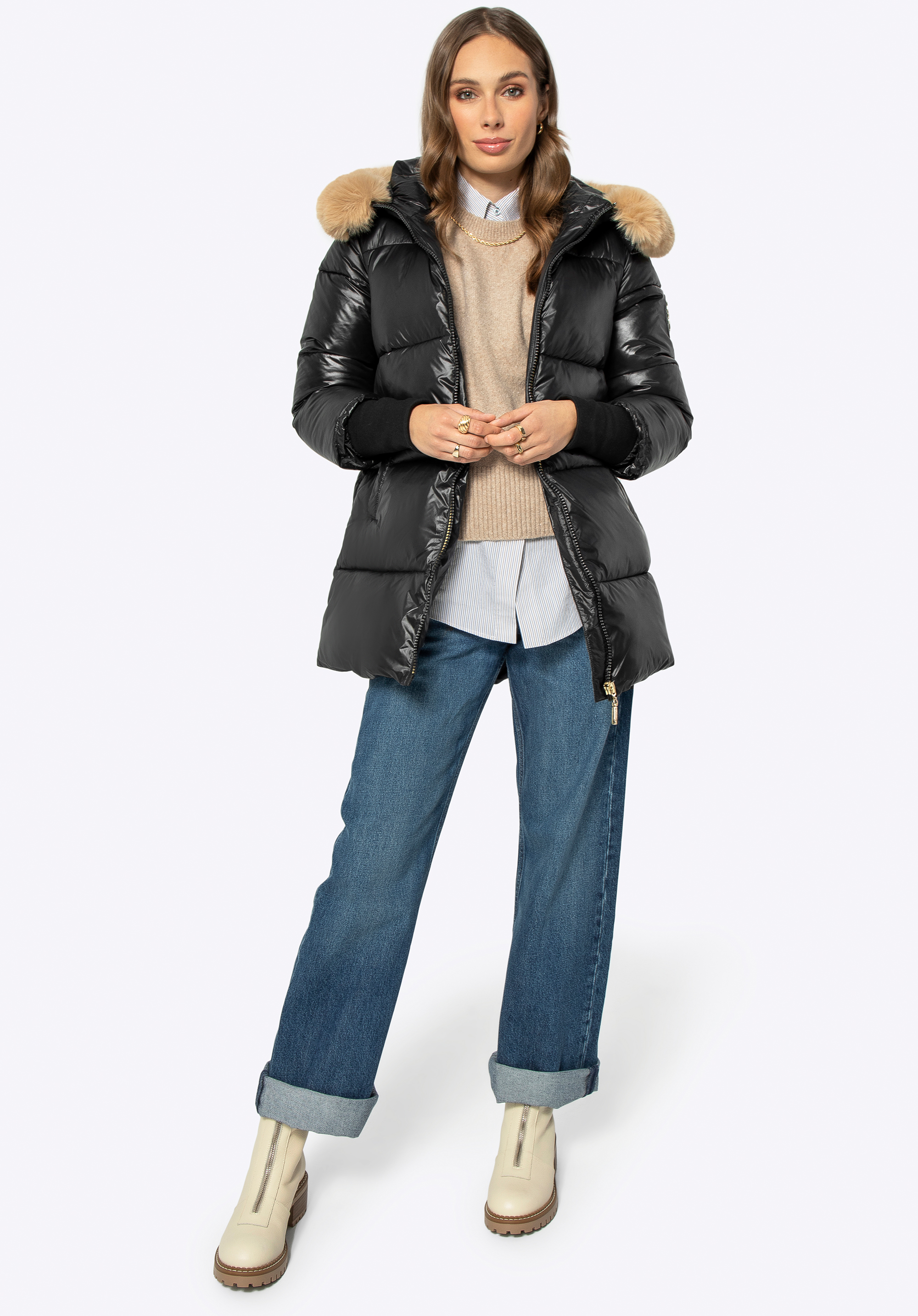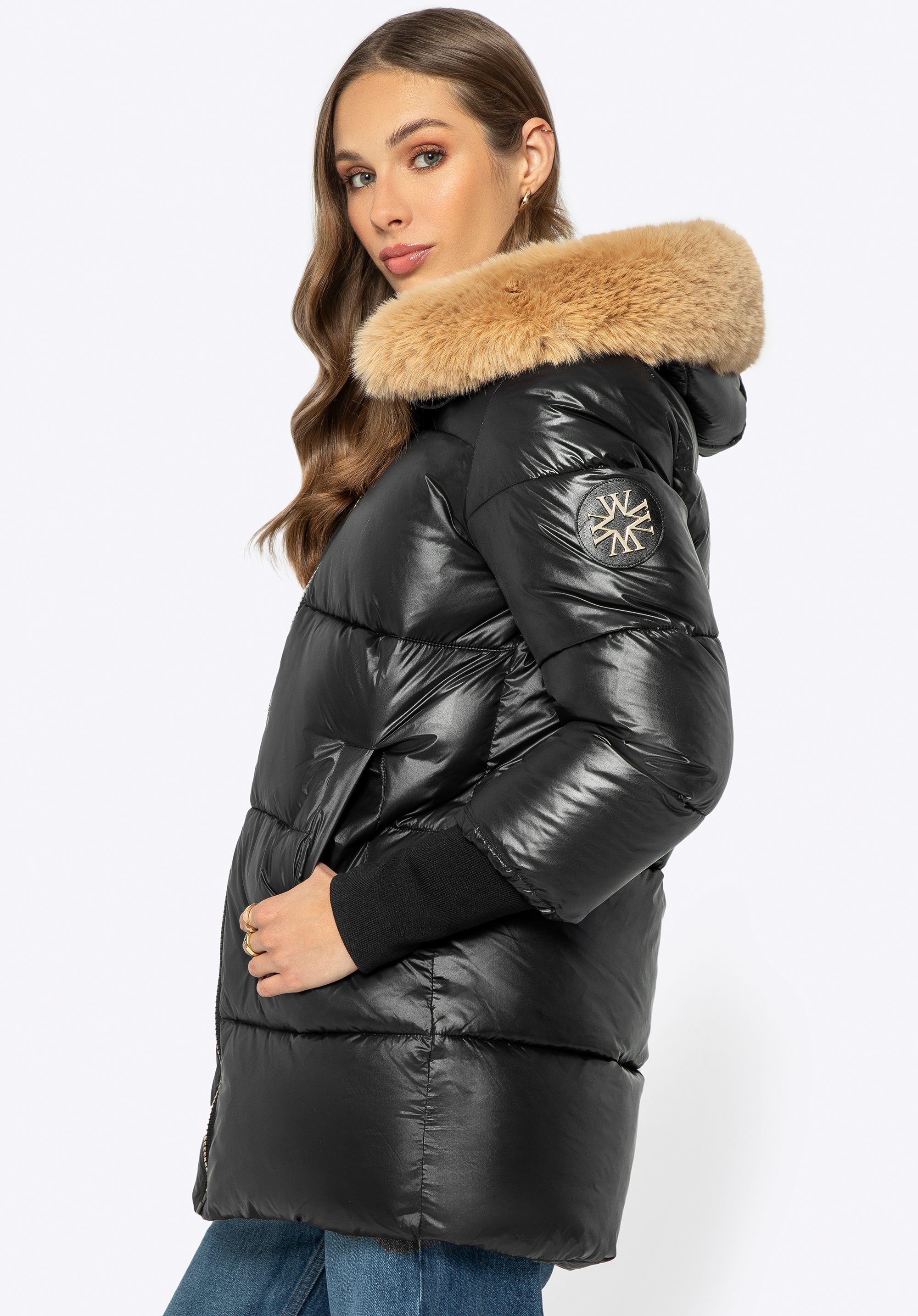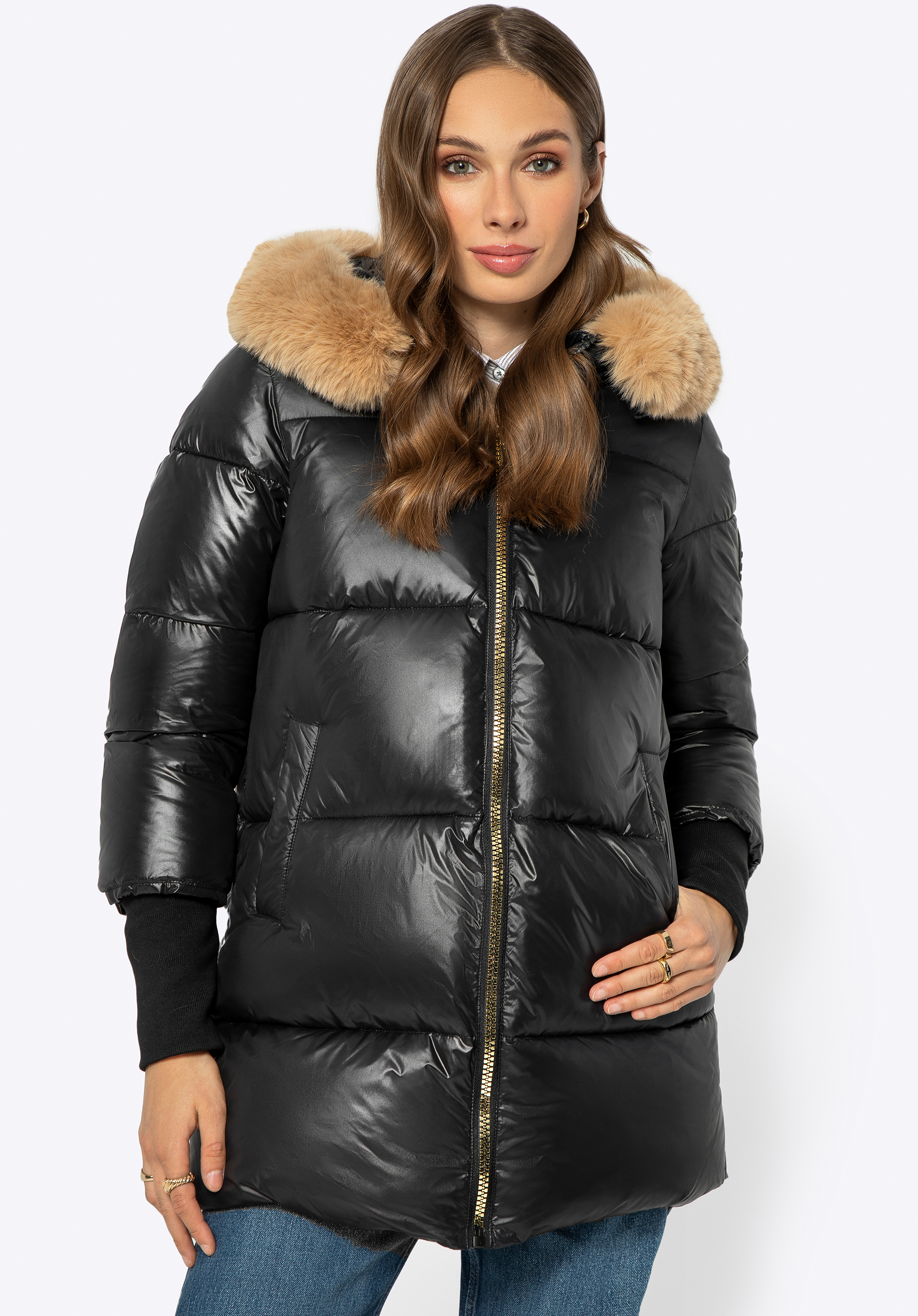 Жіночий пуховик з хутряним оздобленням капюшона Колір: чорний