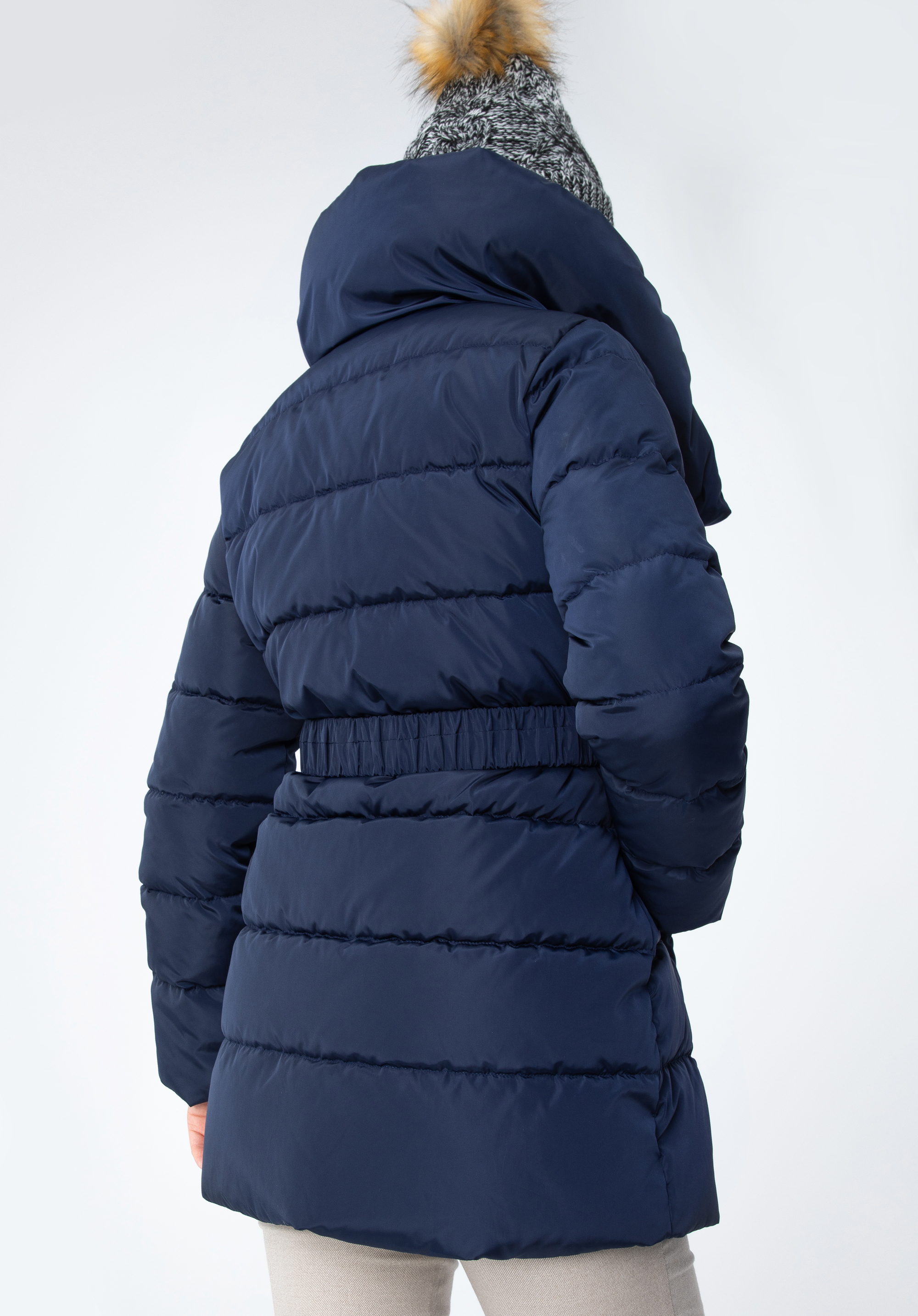 У цій теплій куртці ви зможете комфортно провести холодні місяці. Вона наповнена качиним пухом і пір''ям, тому ідеальний вибір для морозних днів. Приталений крій з поясом підкреслить вашу фігуру. Високий комір приємно прилягає до шиї. Жіночий пуховик з поясом і високим коміром - відмінний вибір як для роботи, так і після роботи. Ви можете носити її як з улюбленим платтям і елегантними чобітьми на підборах, так і з джинсами, светром і чобітьми на товстій підошві.