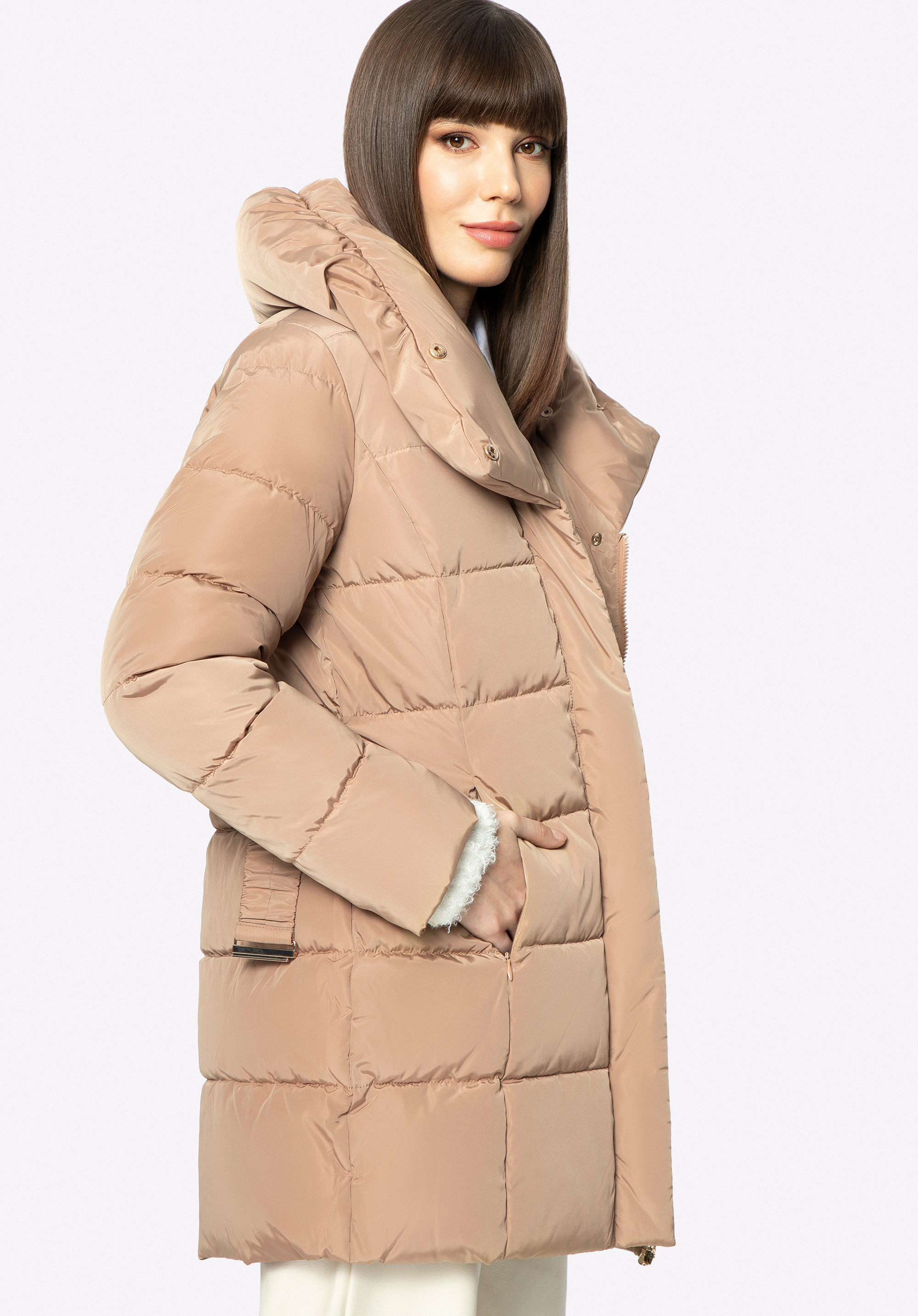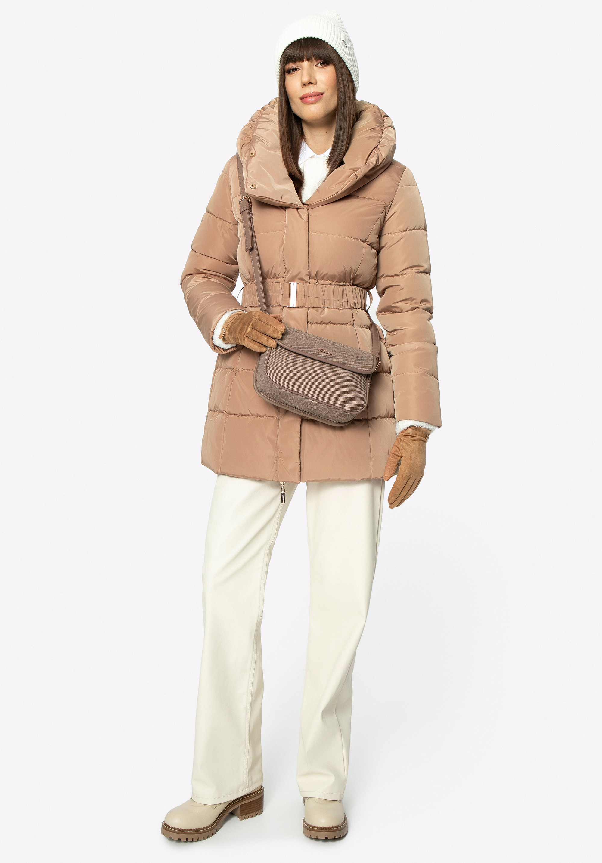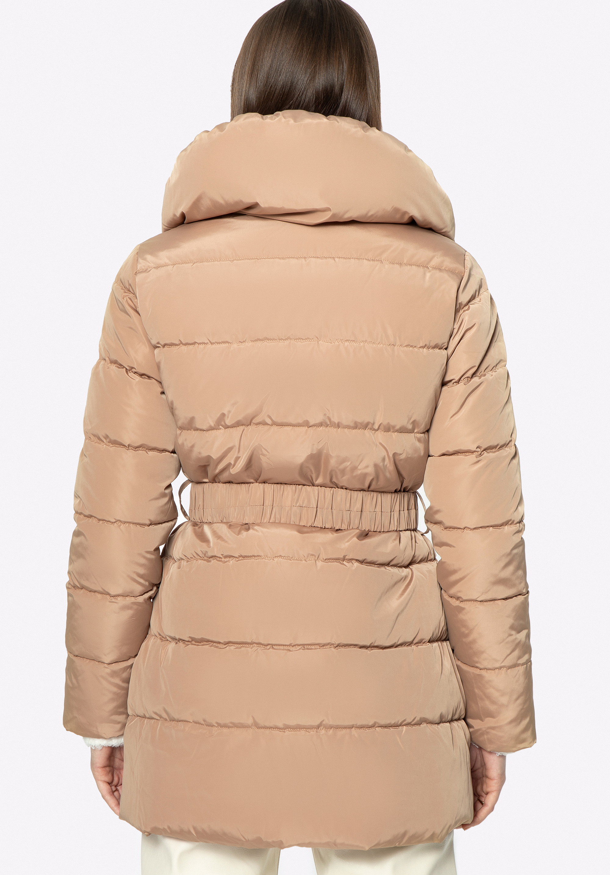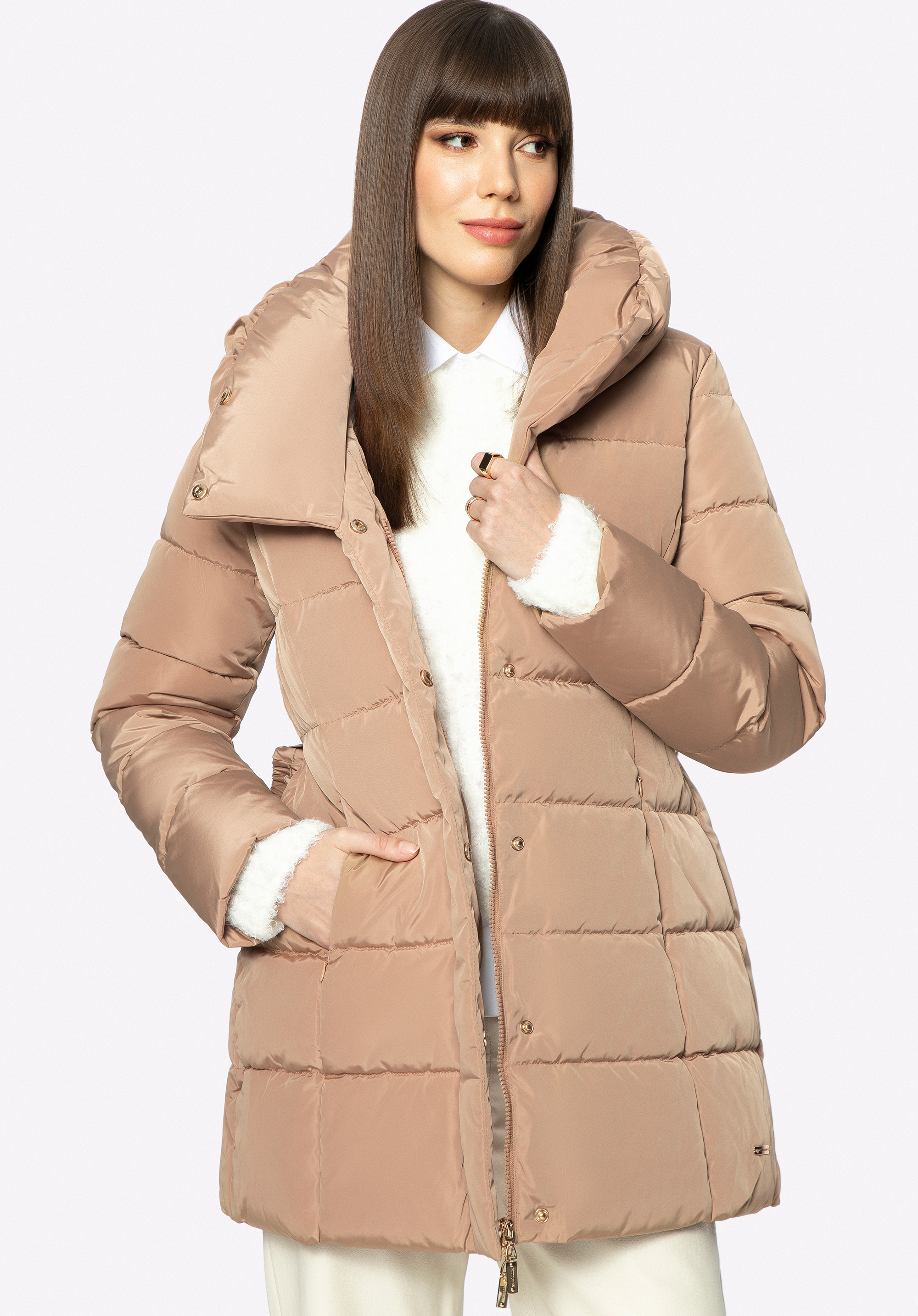 У цій теплій куртці ви зможете комфортно провести холодні місяці. Вона наповнена качиним пухом і пір''ям, тому ідеальний вибір для морозних днів. Приталений крій з поясом підкреслить вашу фігуру. Високий комір приємно прилягає до шиї. Жіночий пуховик з поясом і високим коміром - відмінний вибір як для роботи, так і після роботи. Ви можете носити її як з улюбленим платтям і елегантними чобітьми на підборах, так і з джинсами, светром і чобітьми на товстій підошві.
