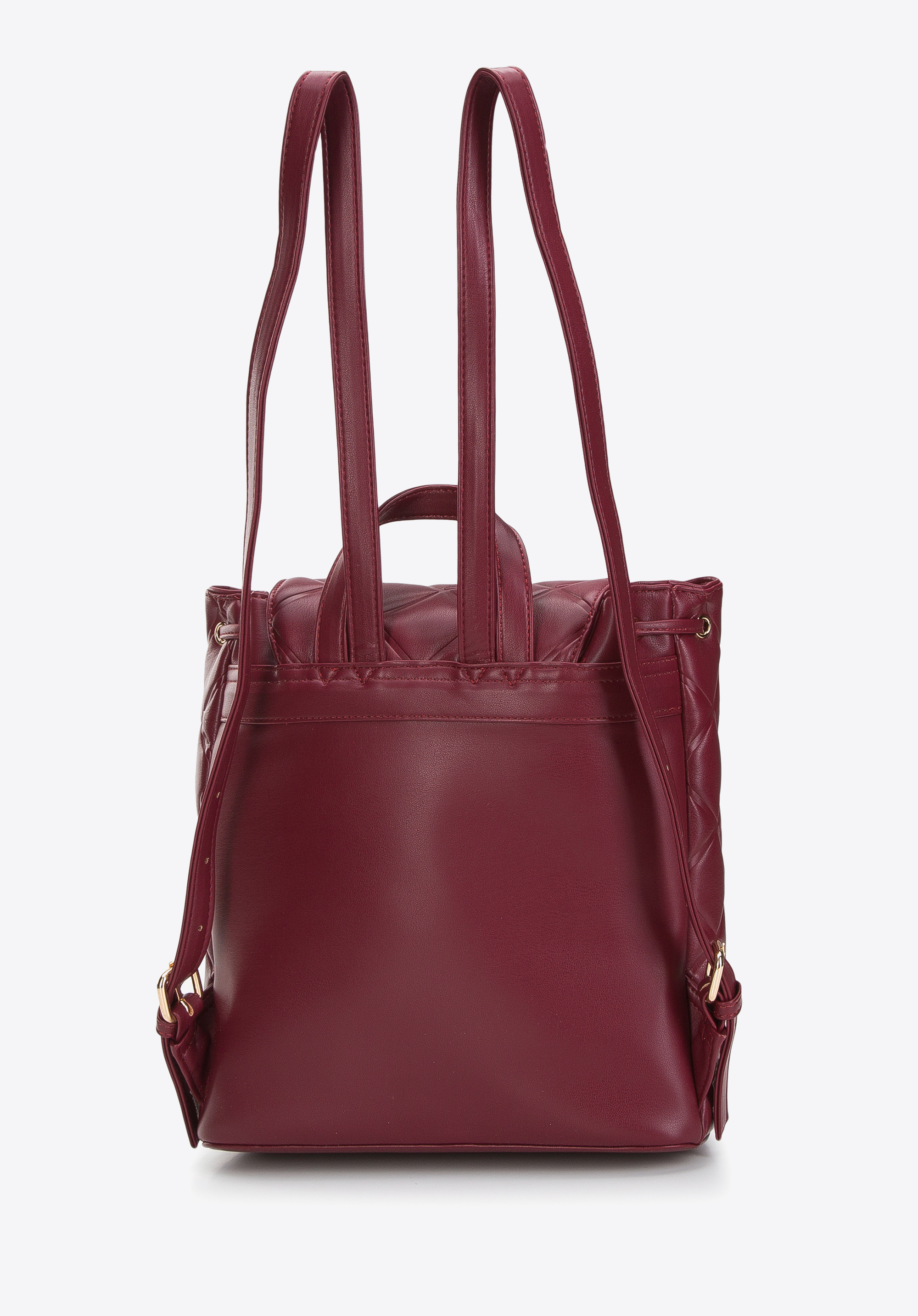 Цей модний жіночий рюкзак - практичний і стильний аксесуар для кожної жінки. Виготовлений з м''якої екошкіри, тому його буде приємно носити кожен день. Дизайн прикрашений унікальним, геометричним стьобанням. Відкривається за допомогою зав’язок, за допомогою яких ви також можете трохи відкоригувати його ширину вгорі. Всередину можна помістити телефон, календар, маленьку косметичку, термокружку і запасний шарф. Це чудовий вибір для огляду визначних пам''яток на вихідних, невеликого шопінгу або кави з подругою. Носіть його зі стьобаною зимовою курткою або елегантним довгим тренчем - ви будете виглядати стильно в будь-якій ситуації. Жіночий рюкзак з геометрично стьобаної екошкіри варто мати у своєму гардеробі багато сезонів.