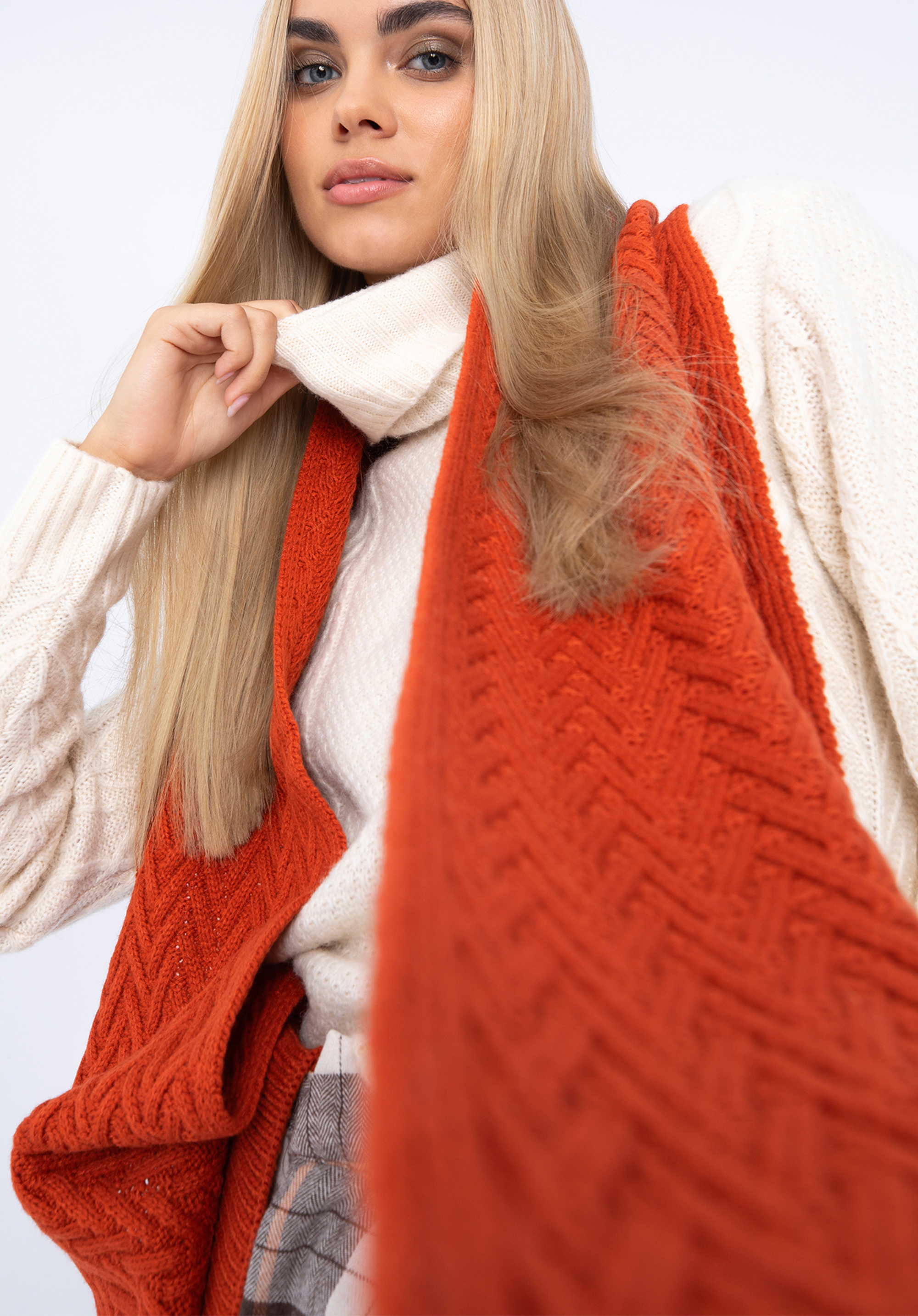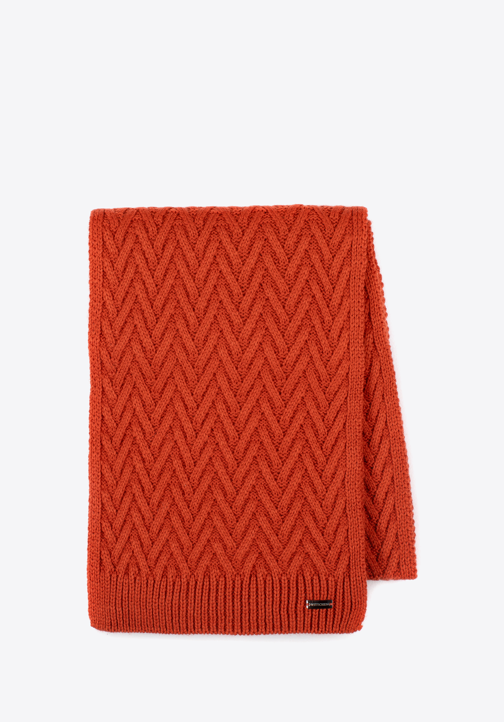 Цей стильний шарф урізноманітнить ваші осінні та зимові образи. Покритий візерунком «ялинка», який прикрашає його та додає характеру. Виготовлений з акрилу тонкого переплетення. Носіть його з гладким вовняним пальто і оголіть візерунок або змініть характер великої стьобаної куртки. Жіночий шарф з плетінням «ялинка» - незамінний аксесуар для кожної сучасної жінки.