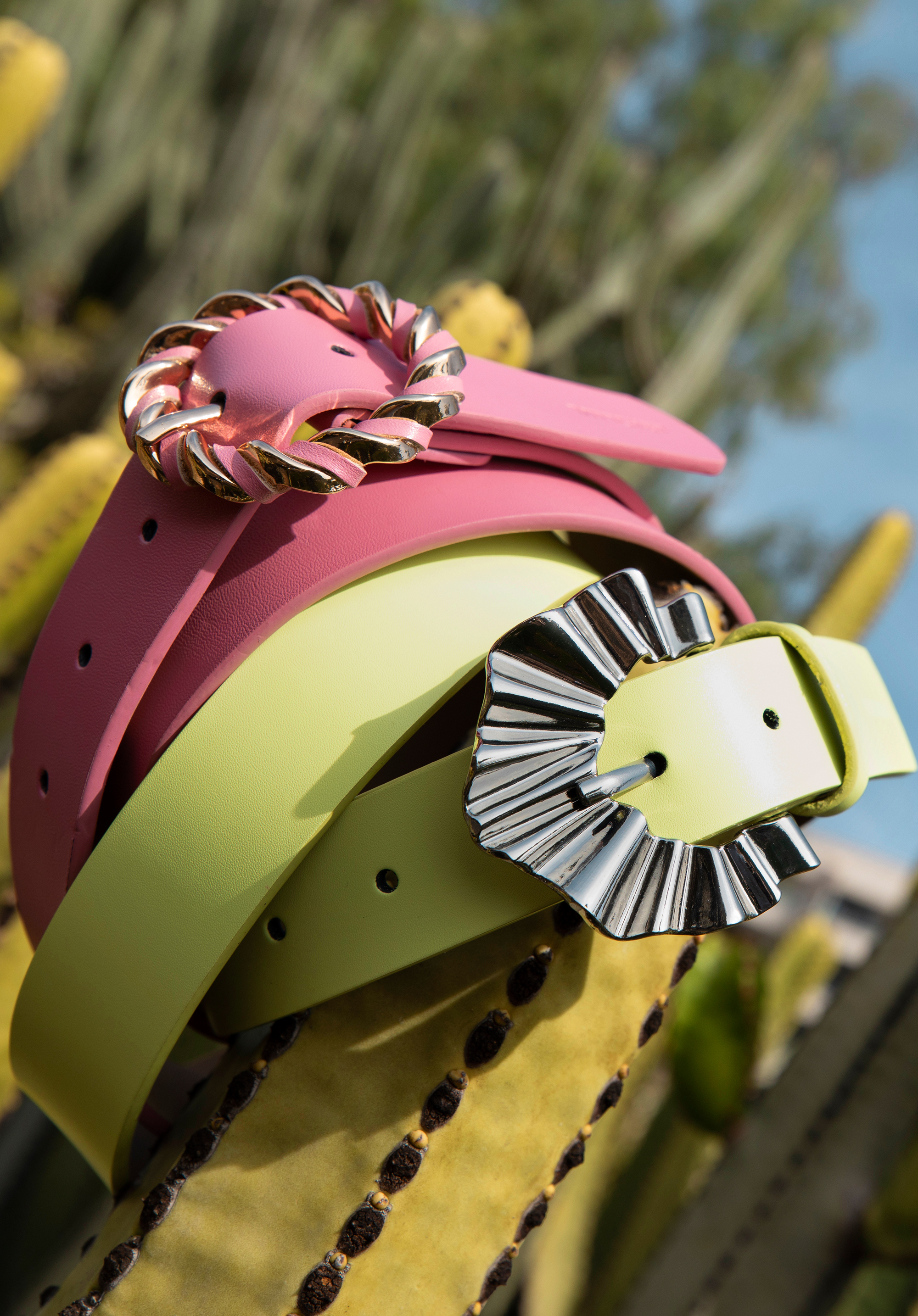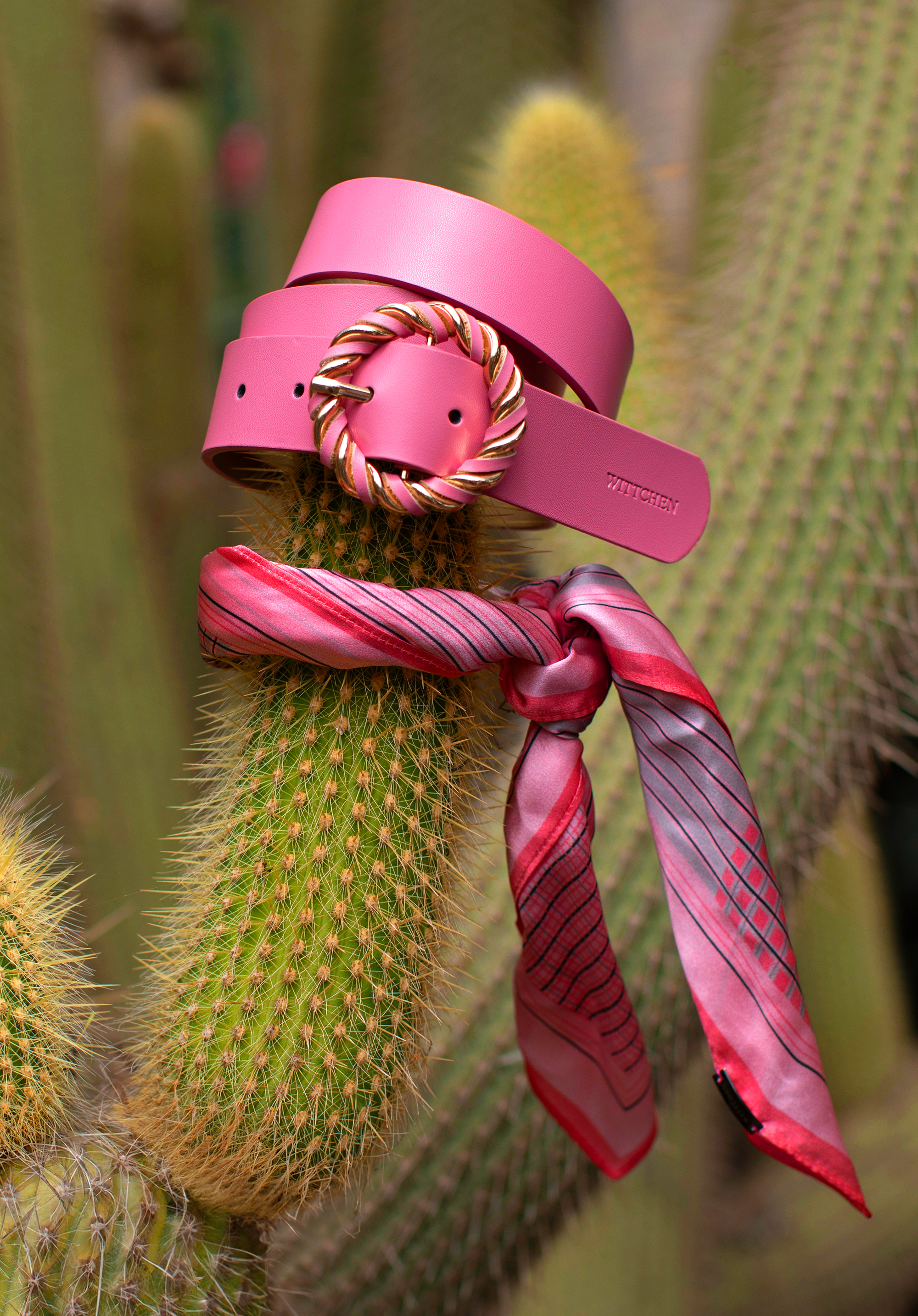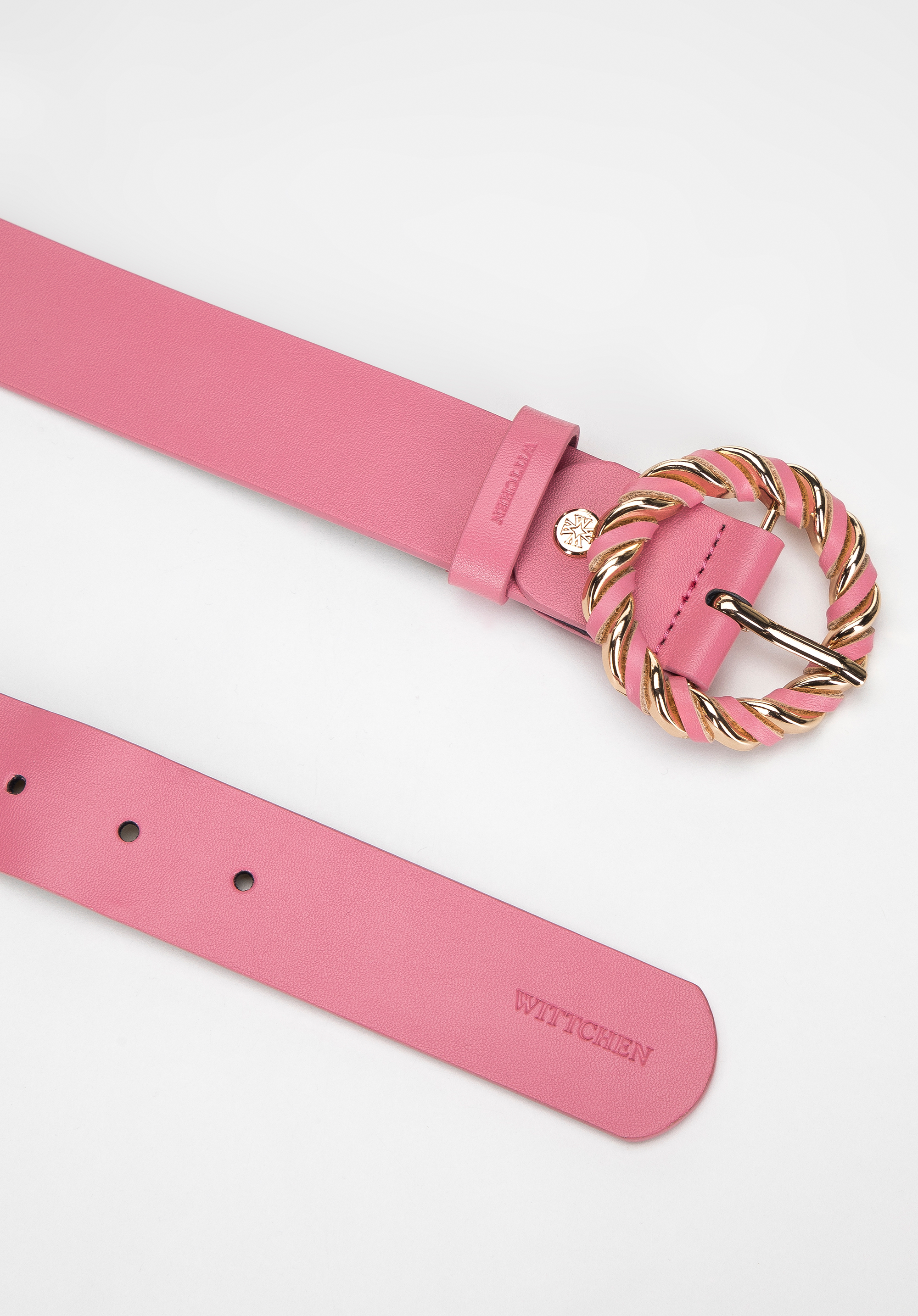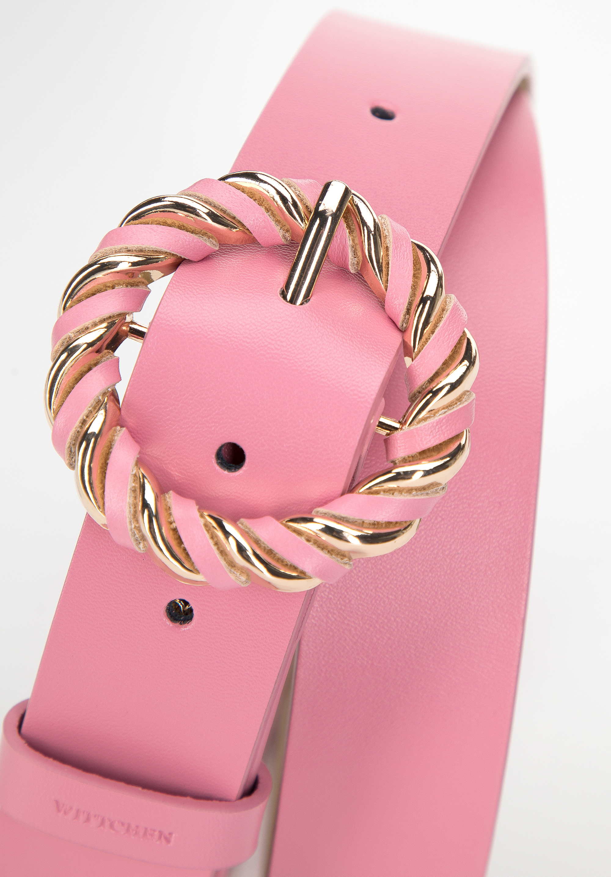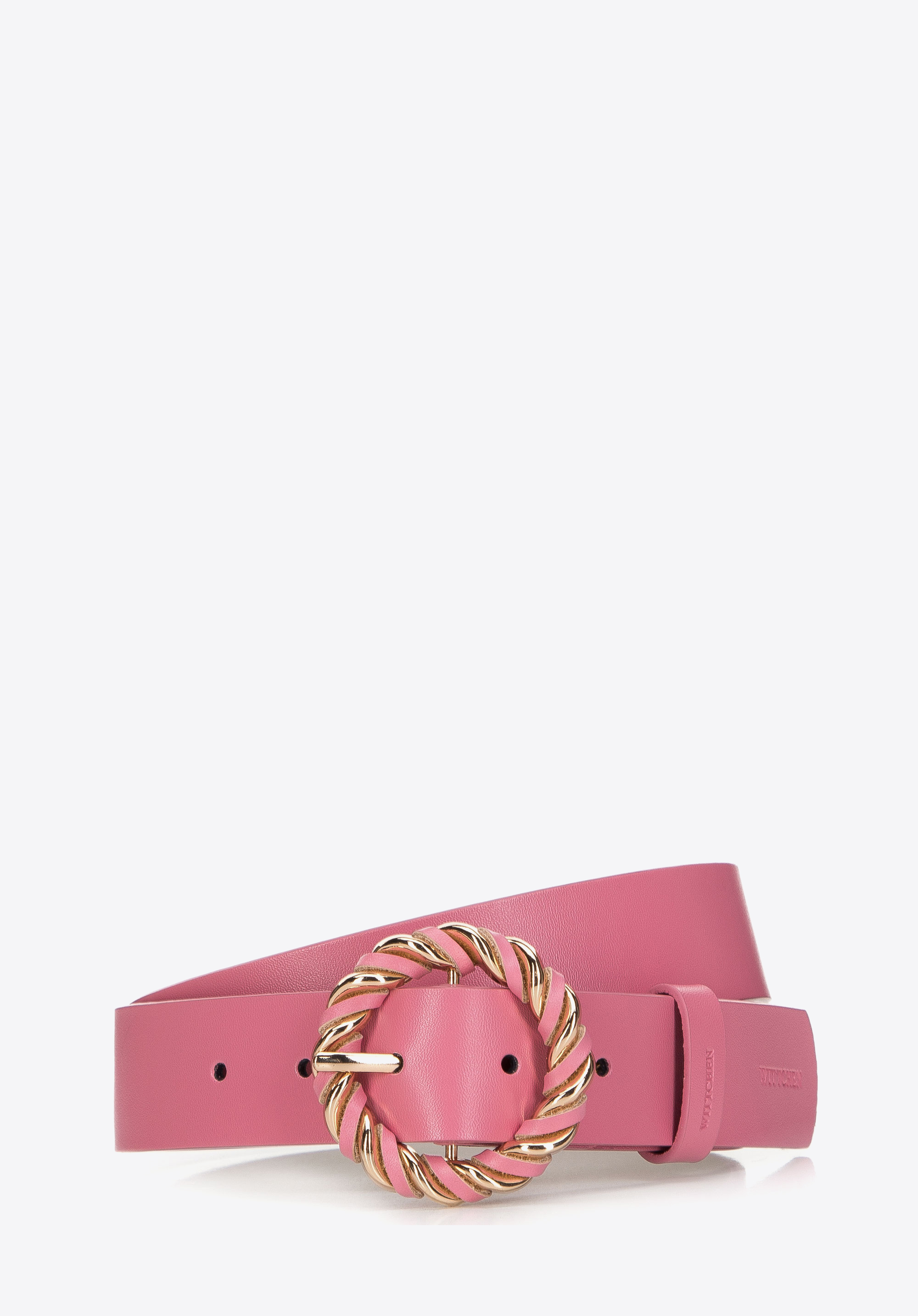 Жіночий шкіряний ремінь із круглою плетеною пряжкою Колір: рожевий