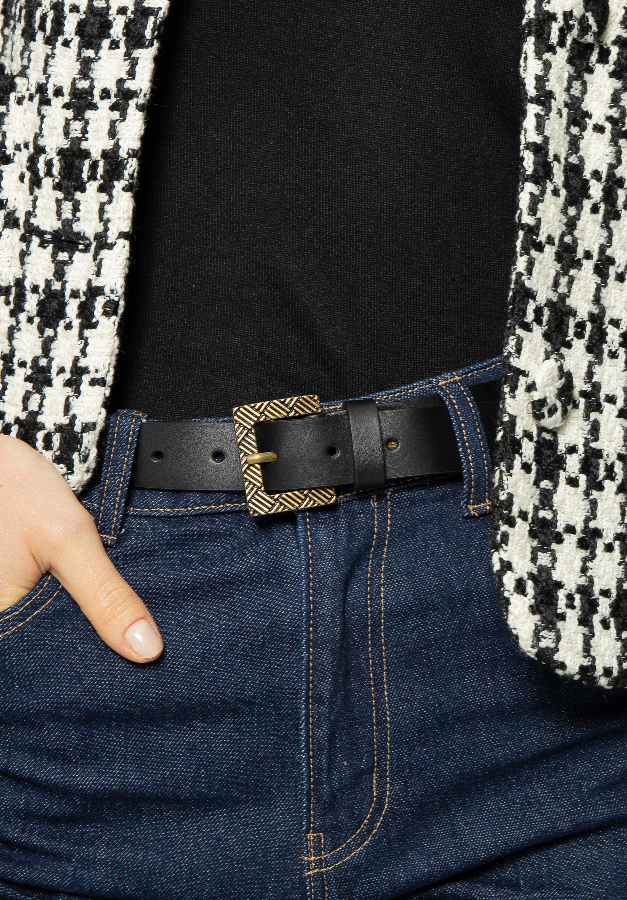 Наша порада: поєднуйте ремінь із елегантною спідницею чи класичною сукнею, щоб виглядати вишукано. Він чудово поєднується з білою блузою та чінос. Щоб підкреслити сучасний стиль, підберіть до нього сумку з геометричним візерунком, який створить цілісний і стильний ансамбль.