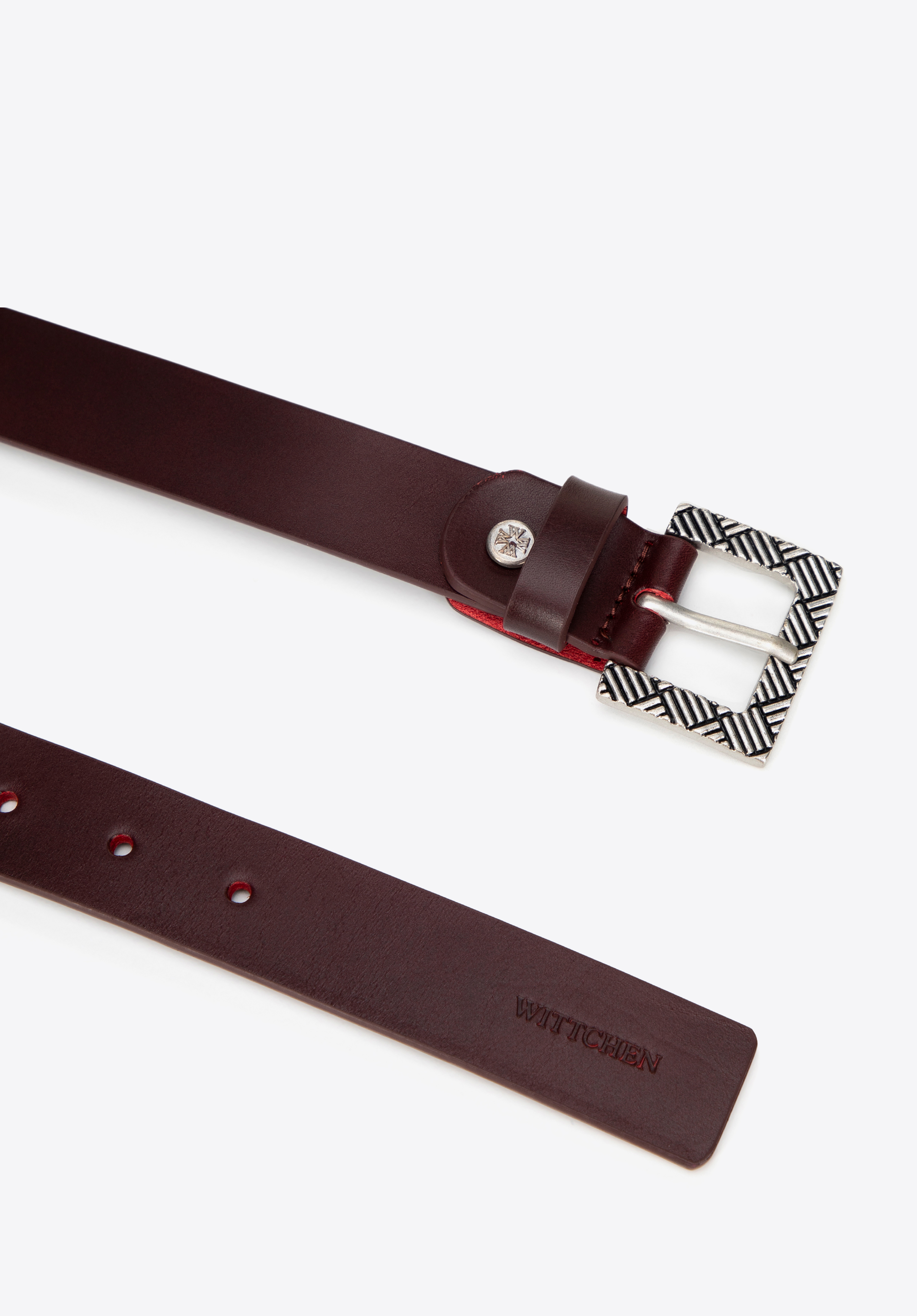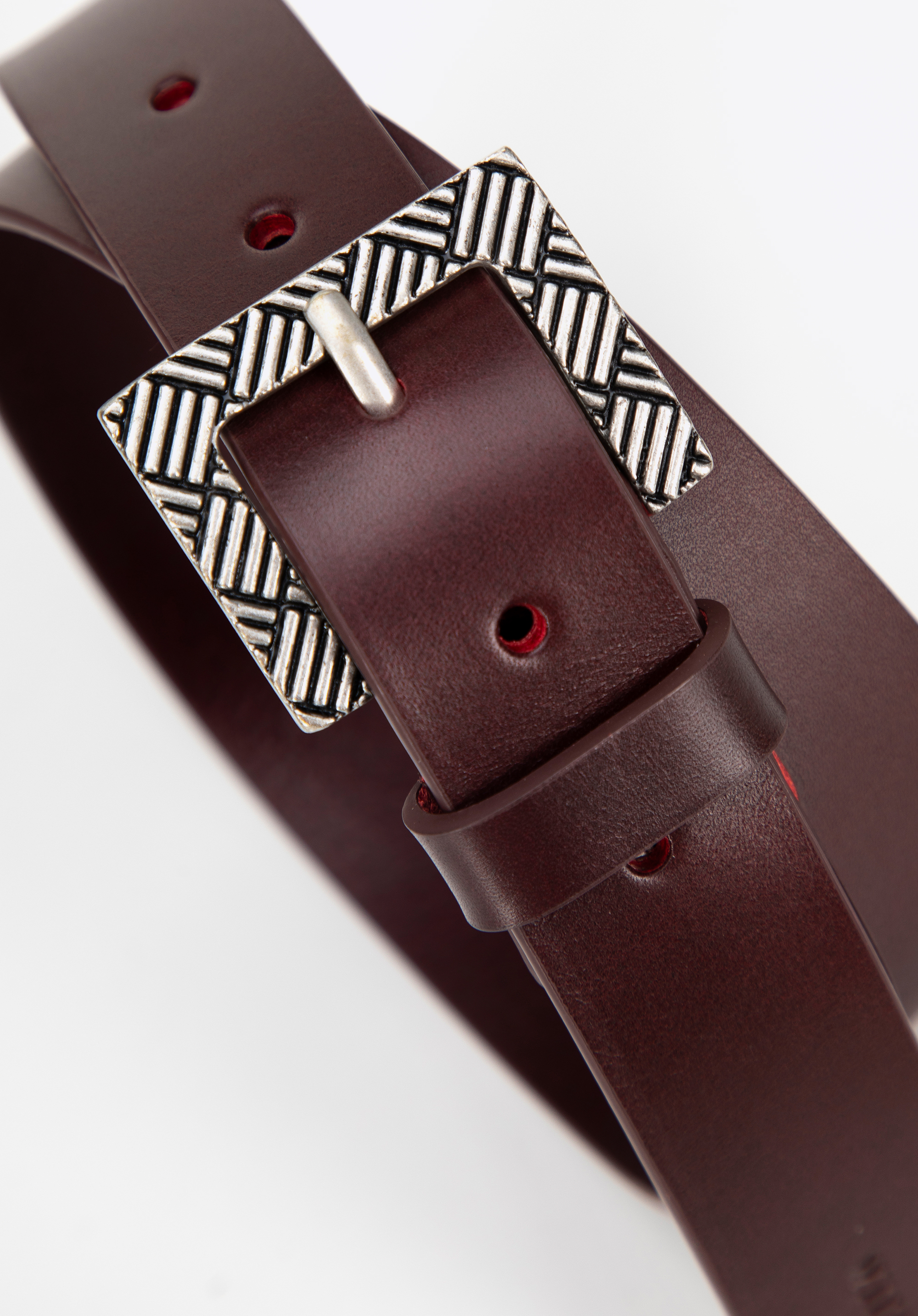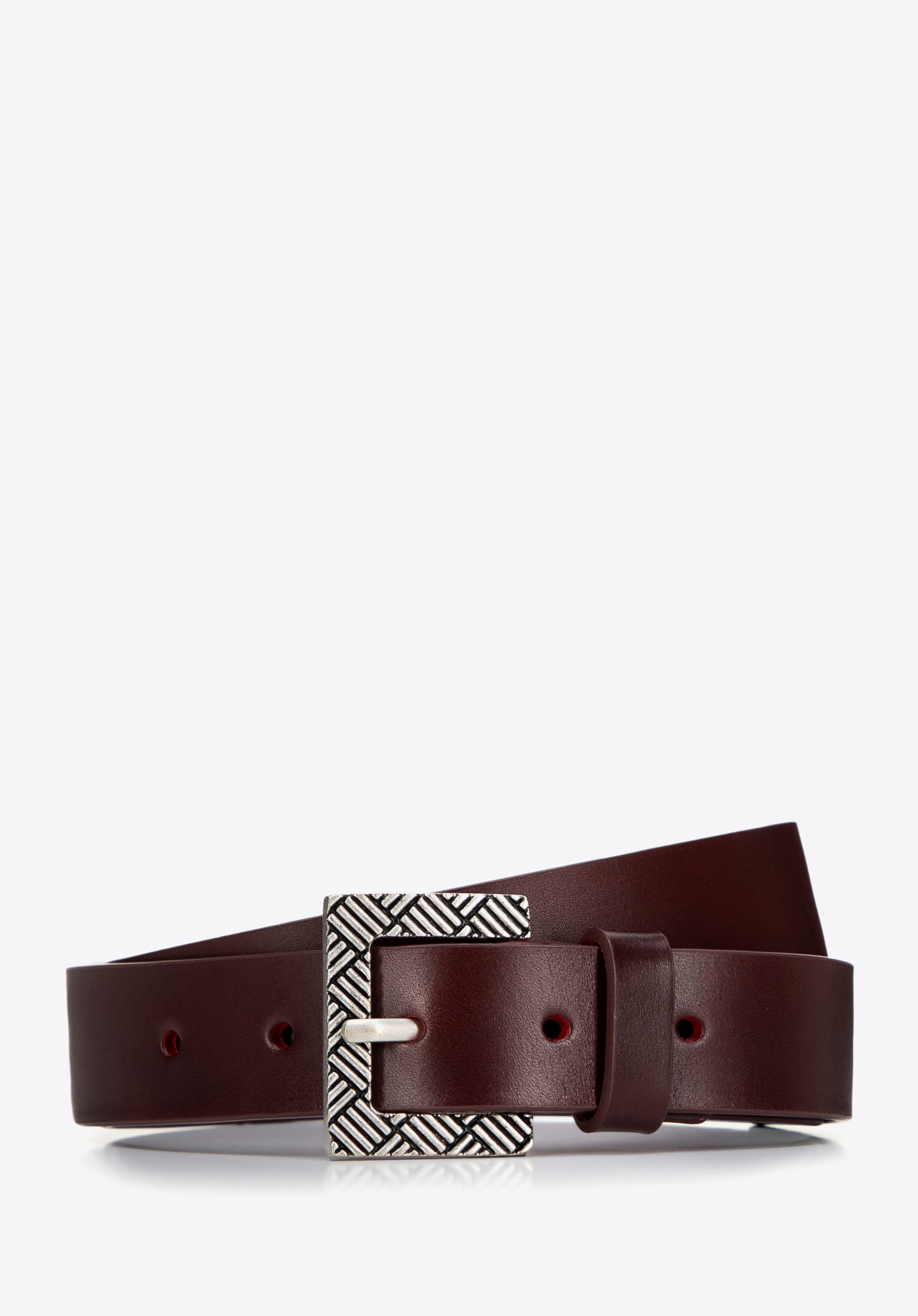 Жіночий шкіряний ремінь з пряжкою з геометричним малюнком Колір: вишневий