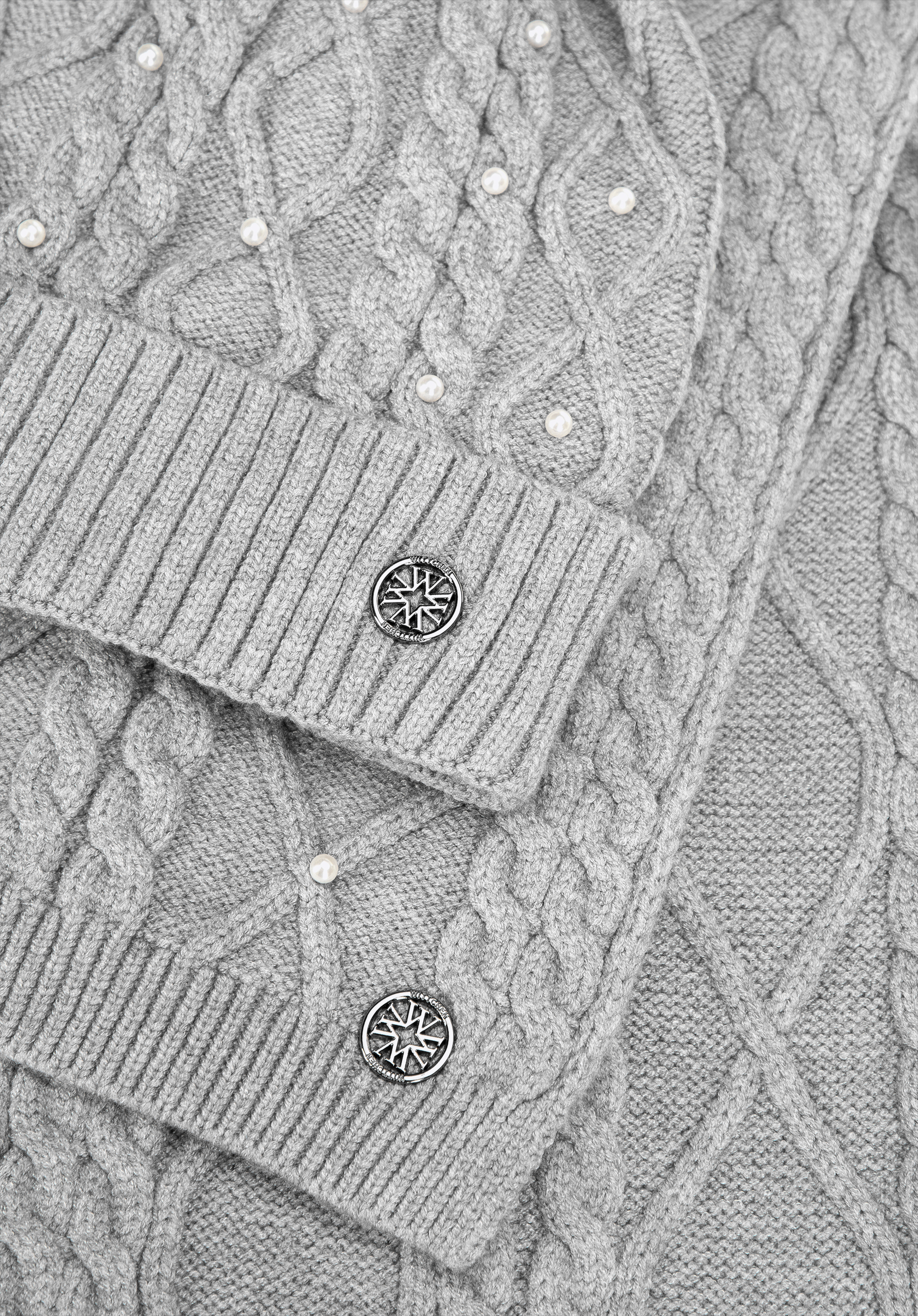 - Склад: Шапка та шарф: 50% віскоза, 30% поліестер, 20% нейлон; декоративні елементи: 100% поліестер.